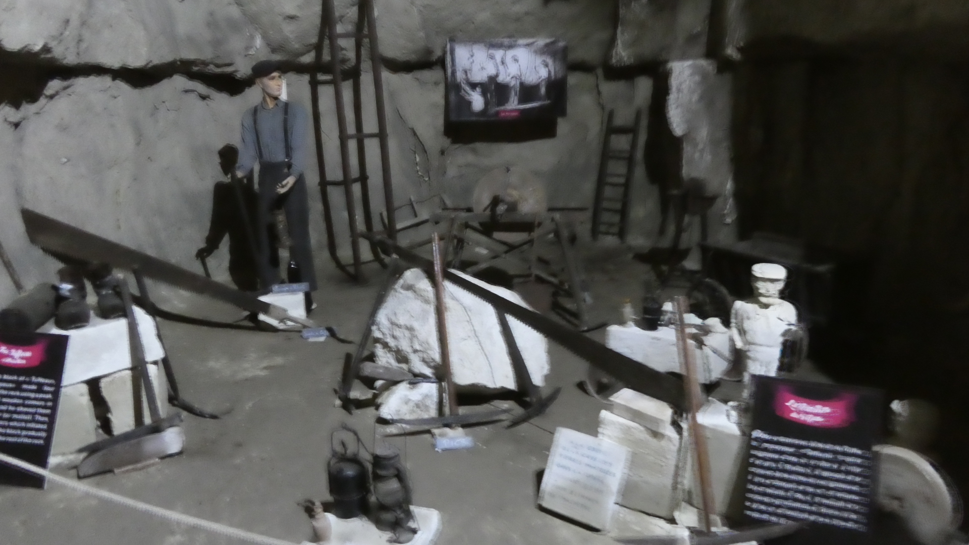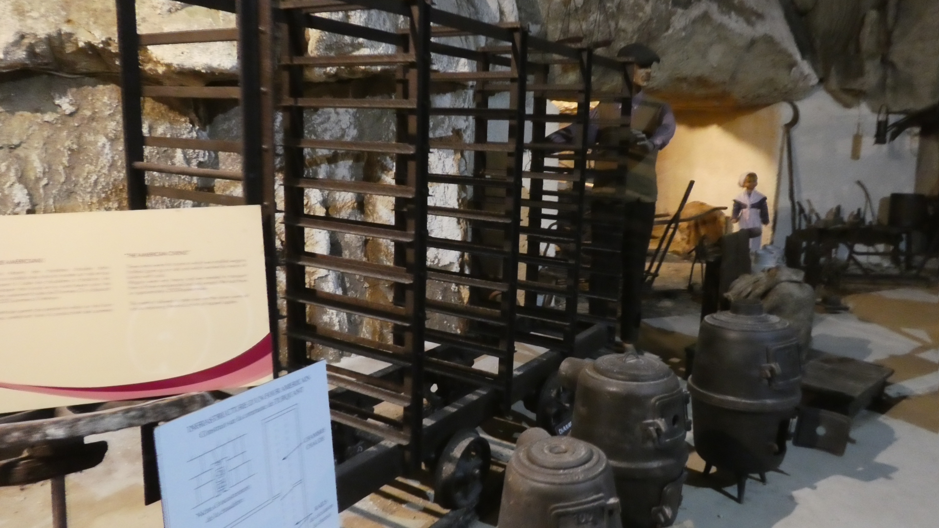 We thought the museum was great, and spent a fair amount of time there. It's time we slightly regretted, when we realized just how far Villandry was going to be. But we still thought it was worth it. I took a lot of photos of the displays in the caves, but unfortunately many (most) are too dark. I could restore them, but time is limited as I type this, so there are just some representative ones.