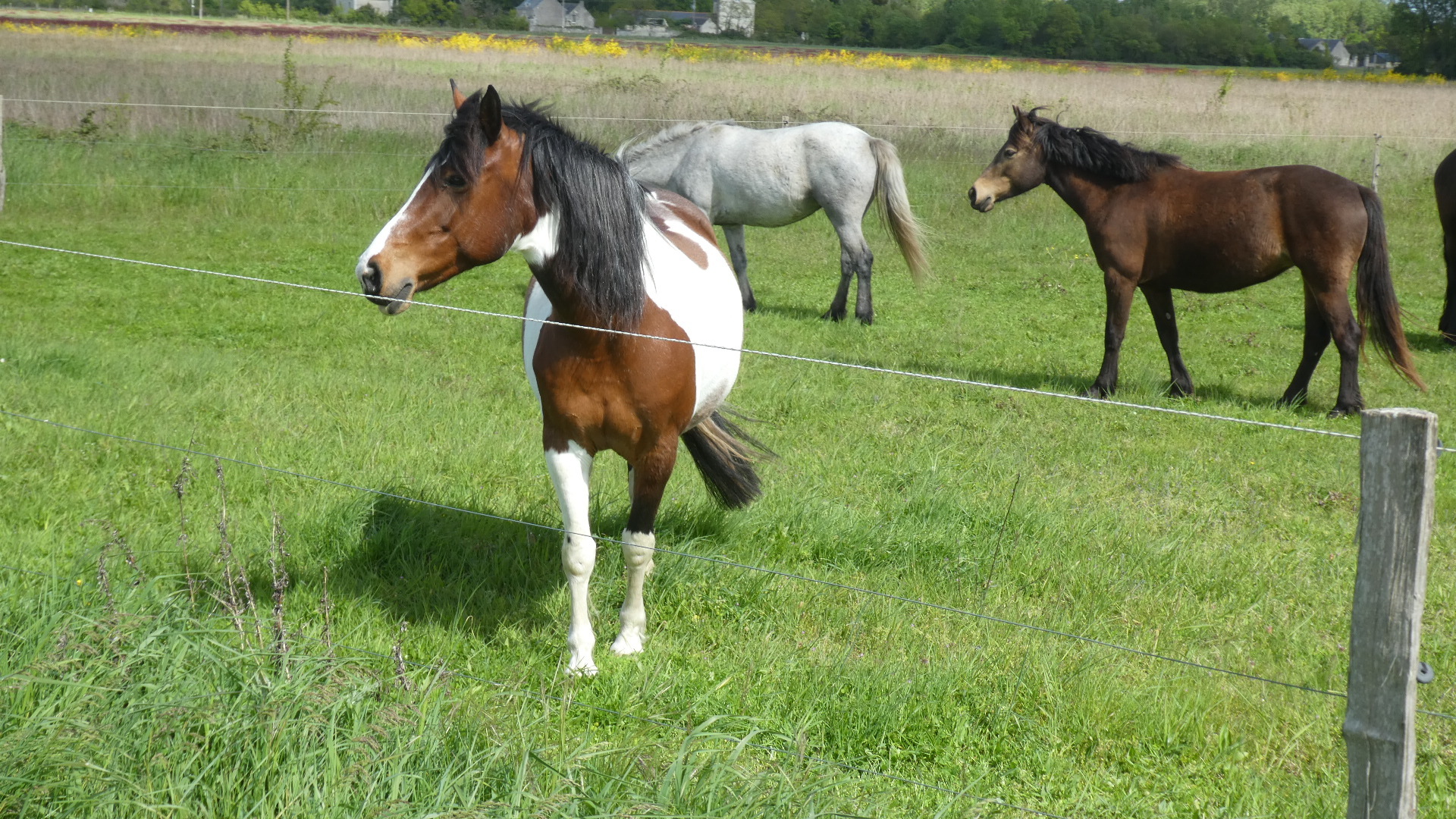 Beyond Candes Saint Martin we both realized that we still had a long way to go, and the way became a quite nice road, but with nothing much on it, and a chilling head wind. We mostly just booted it, hoping to reach the hotel before 6. There were some birds and horse along the way, though.