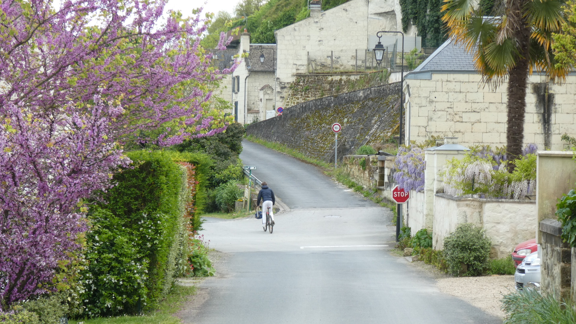 Back out on the trail, we really were into a beautiful ride, among tuffeau buildings and with troglo things to look at along the ridge.