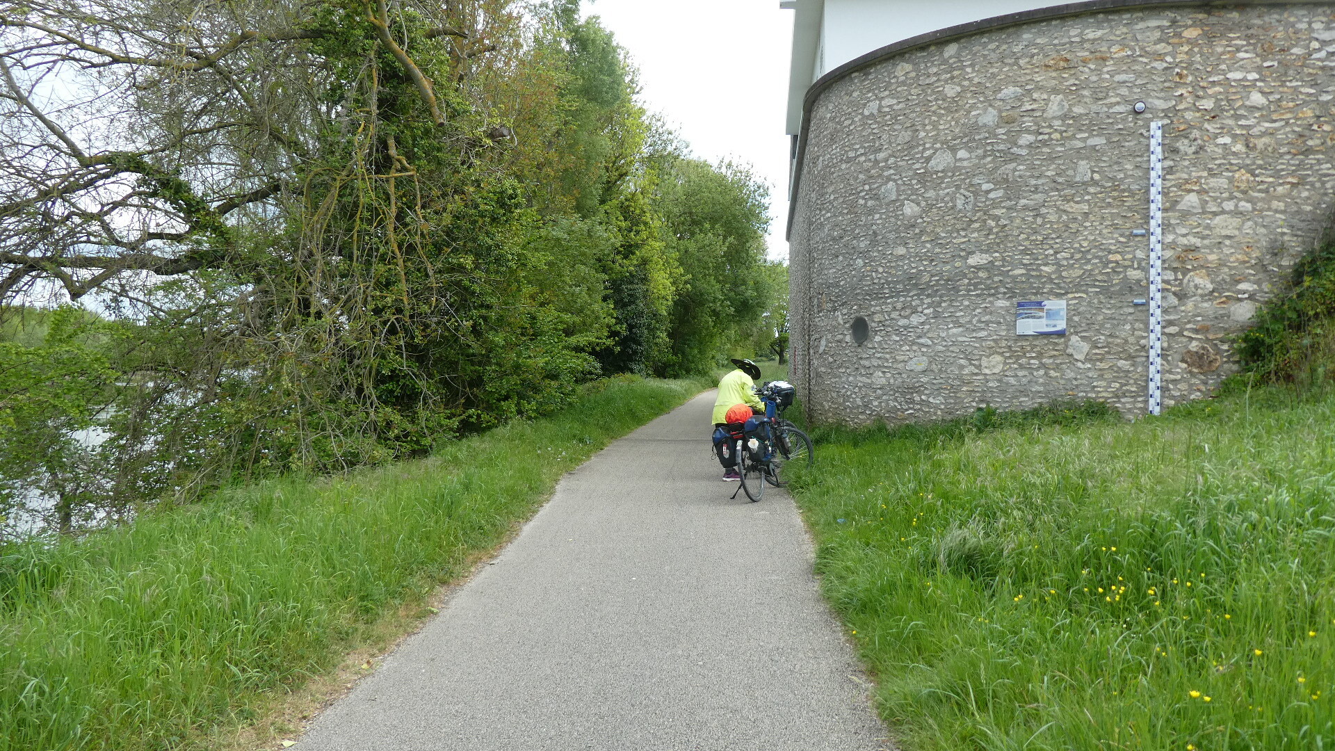 At a point half way to Tours, we came to a flour mill situated on the river. I think the original of it was situated out a small bit on an island. A sign talked about the mill, and how it had been developed to a more modern one, just onshore. So, no big deal. Except that there is an uncomfortable feeling of deja vue when we come to something that we have deja vue'd, but don't quite remember. I did remember that there were some trucks in the way last time, and that we lost the path. Backtracking, we guided some other cyclists to the right way to go. This time, there were some trucks again, plus we were distracted by a clump of cyclists, and we missed the turn again!