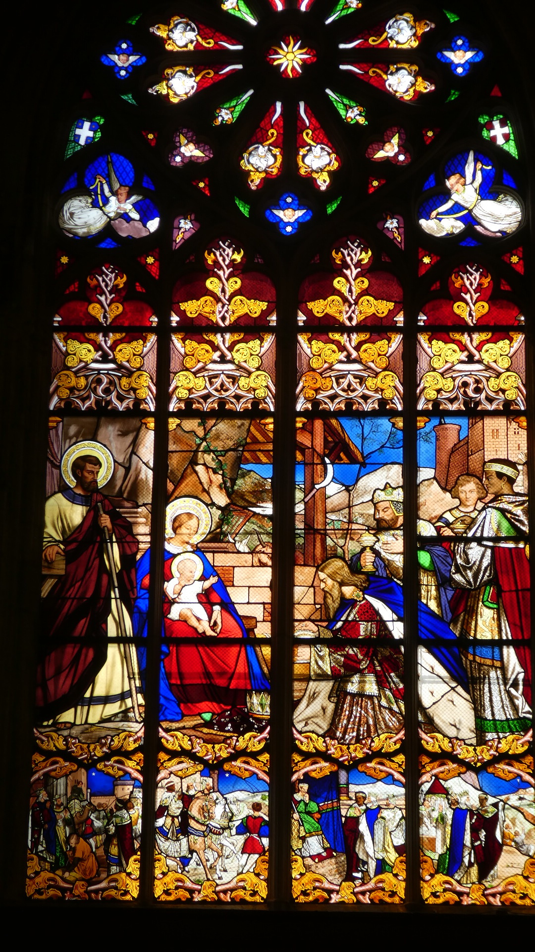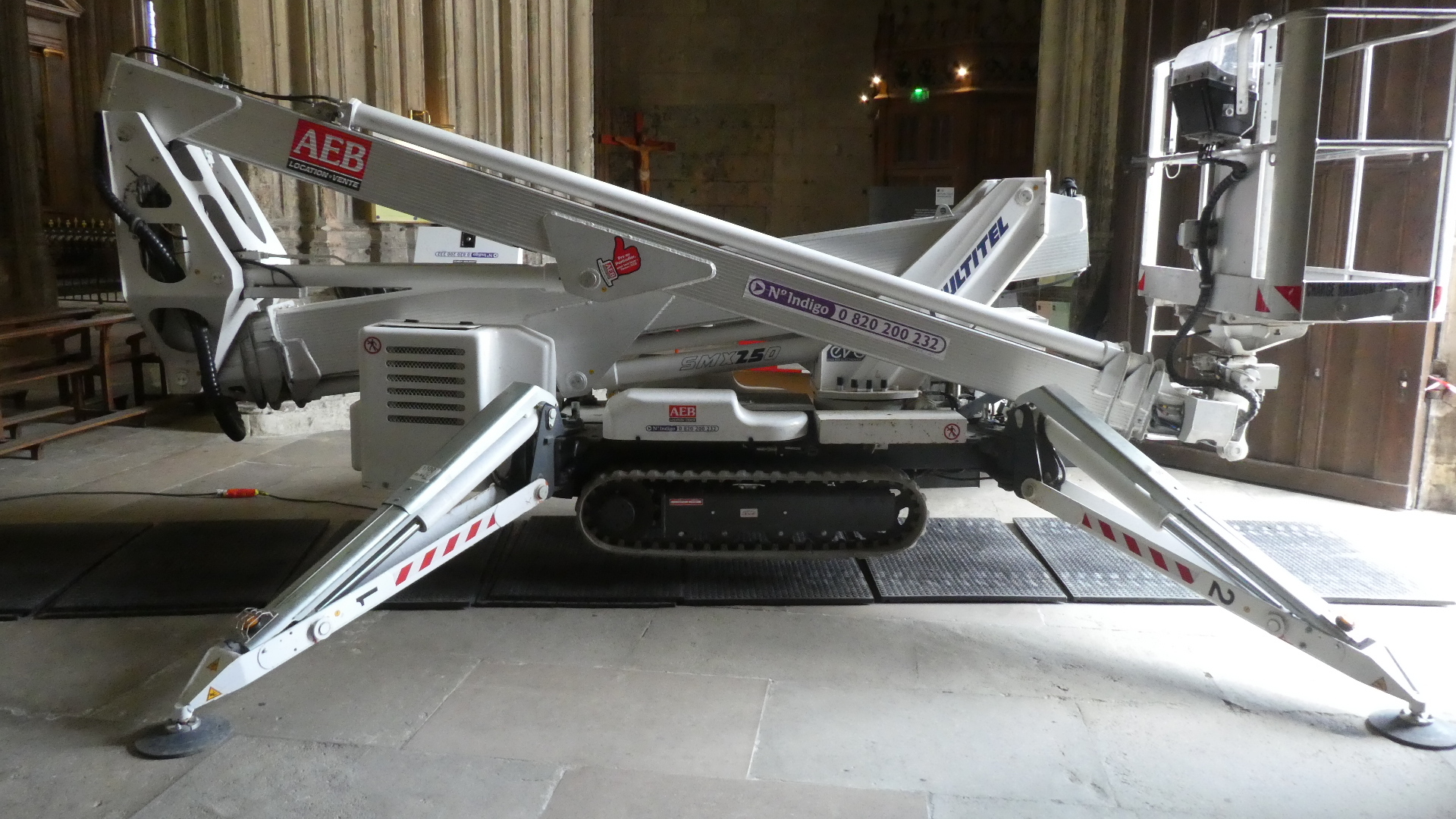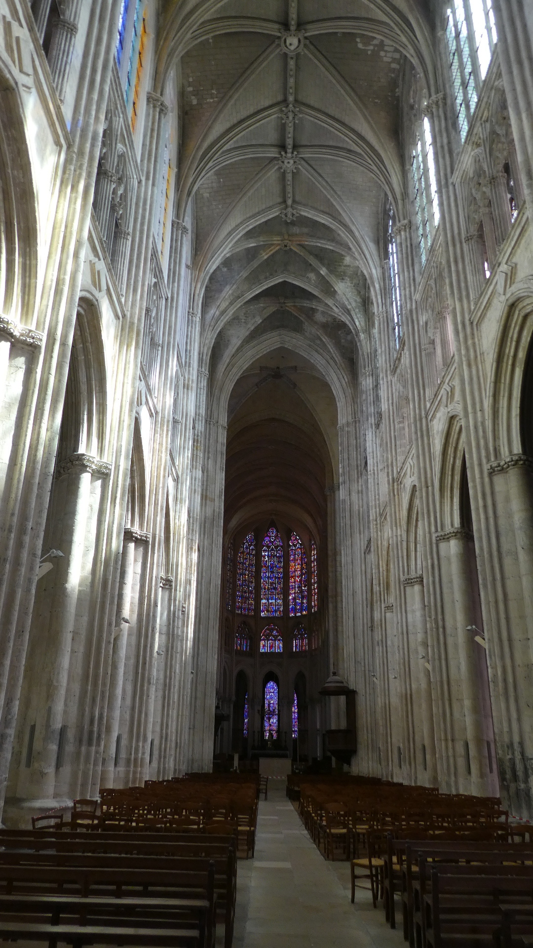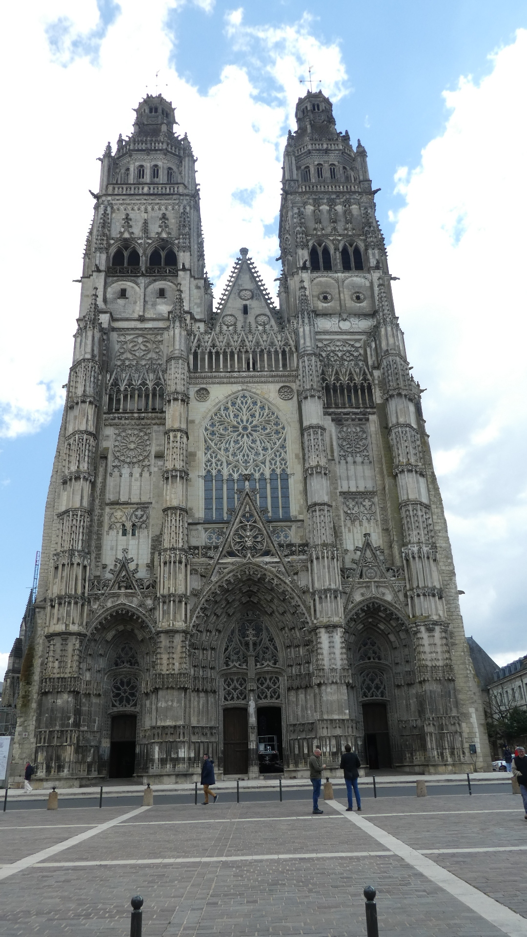 For some reason we had not been prepared to hunt down either the Cathedral or the Basilique St Martin. I guess our focus was just on passing through, to our destination of Amboise. But we could not avoid falling over one of the "other" cathedrals, the Saint-Gatien. This, as most, was under renovation, but still open. Continuing my rather lackadaisical attitude, I took a picture of the facade, went in and saw one stained glass that I liked, and seemed more intrigued by the shiny lift device, parked in the aisle.