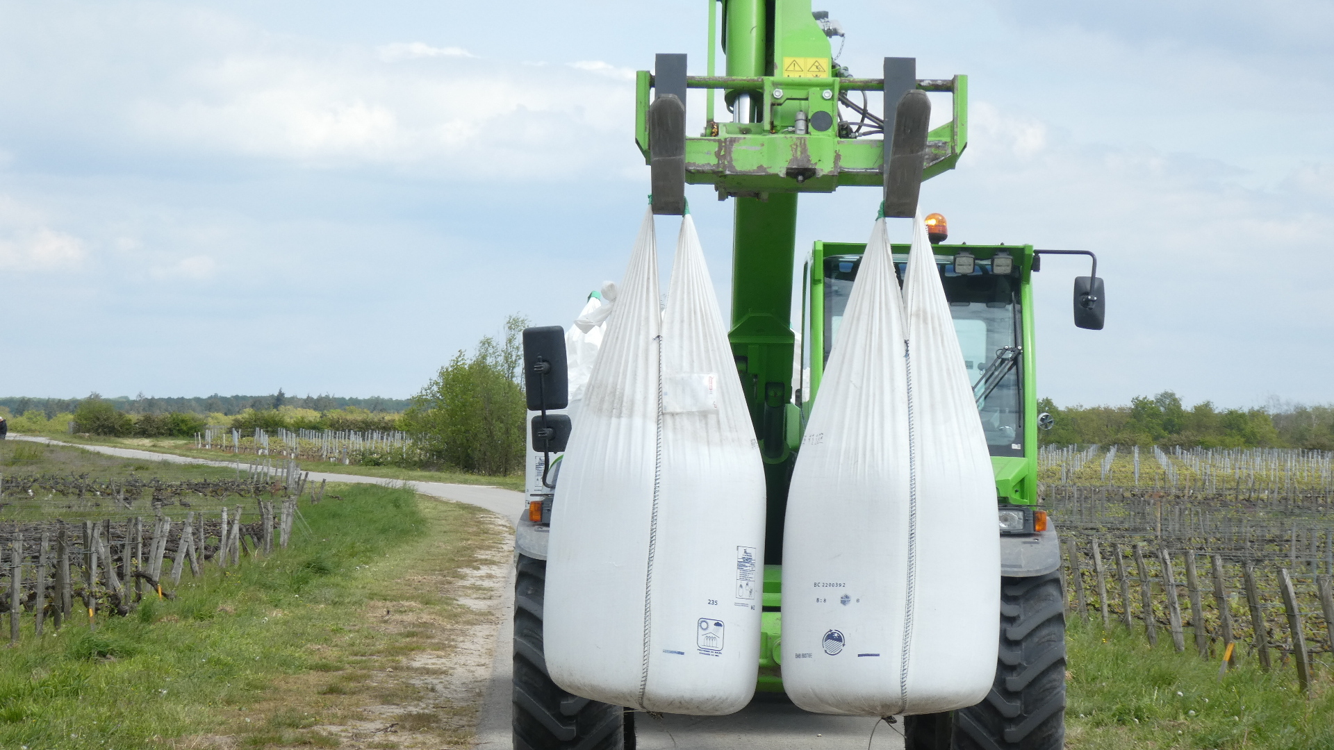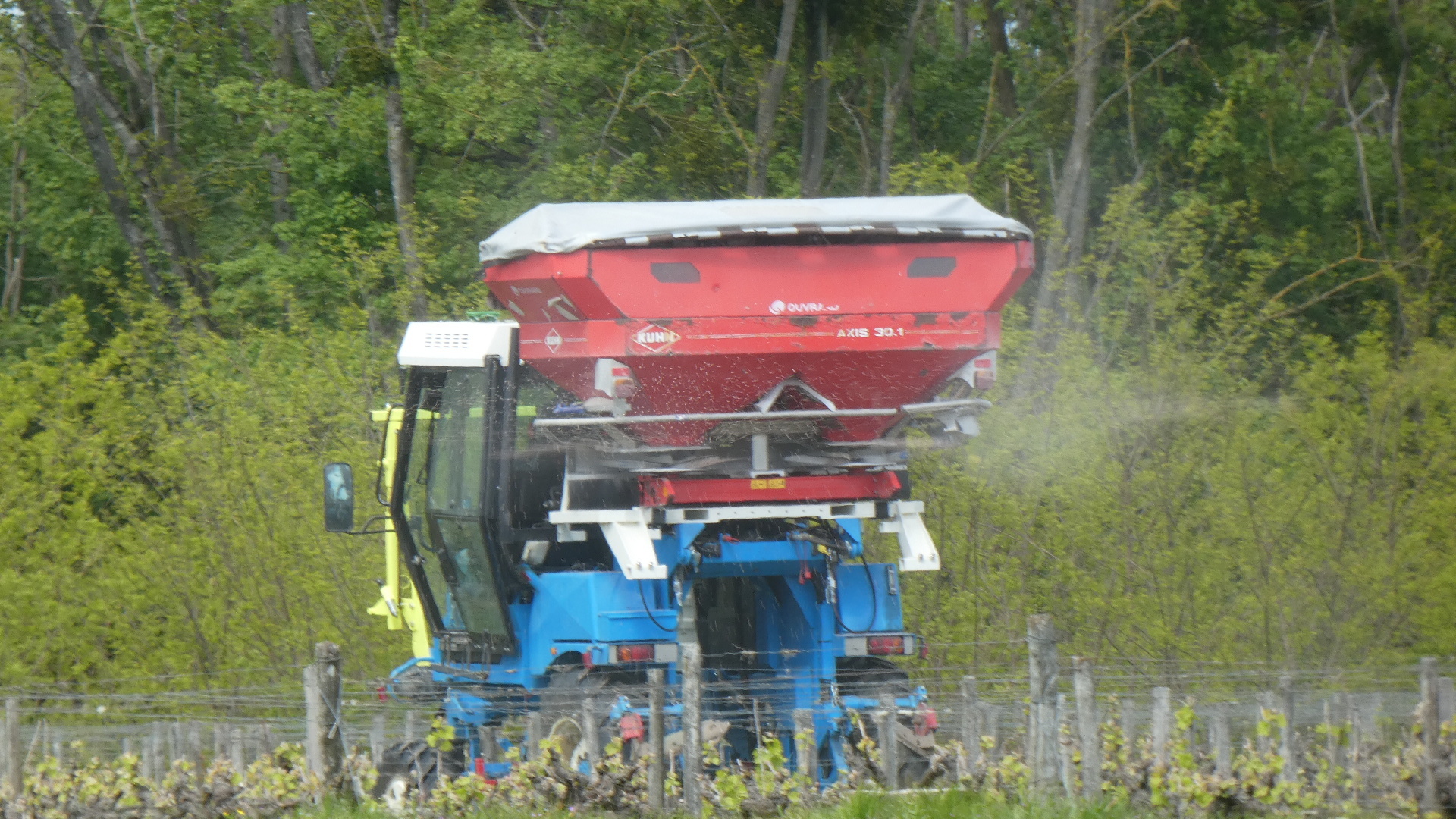 By the river we found some quite extensive plantings of vines. They were being fertilised with some heavy machinery. One unit was spraying solid pellets, while another was carrying the backup material.