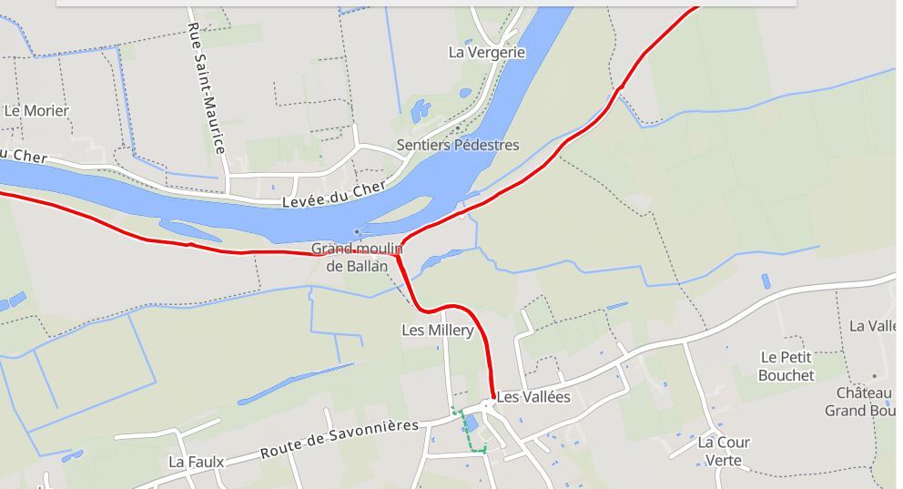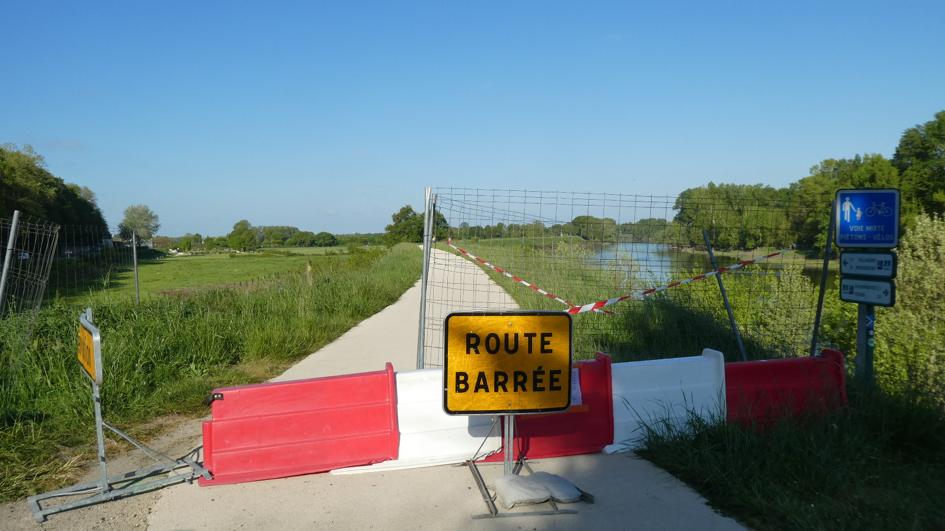 Last night just at the turn off the cycle path into Villandry, there was a route barrée for the path ahead. Rather than explore whether the obstruction was real or not, this morning we took the road around the obstruction. That brought us up on the far end, one km down the path. As usual, we looked to see what all the fuss what about, but seeing nothing, did not invest the time in backtracking to find if it was a pure myth or not.