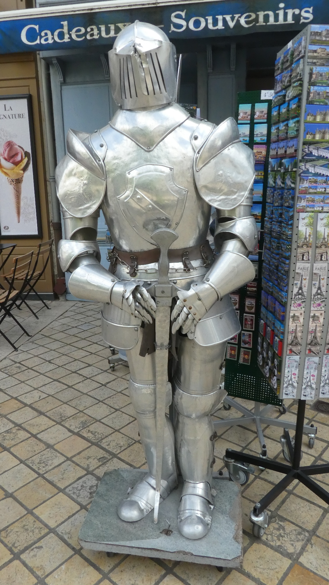 I came out, and since it was time, we took a bench facing the building to eat our sandwiches. This gave the opportunity to send Dodie in for a look as well. Normally we leave one person with the bikes and send one in. Since I have the camera, I am the one sent in. It's risky (for me) to send Dodie in as well, because in 100% of cases, she will emerge saying "Did you see the the (fill in the blank)". I will always reply in the negative, and she will continue "And did you see the (fill in blank two)"? This can easily extend to quite a list of things, and I will normally resist going back in, unless it's something critical, like a Joan of Arc statue or a St. Jacques. My defence is that if I see it it will land in the blog, eating up time when I could be sleeping!