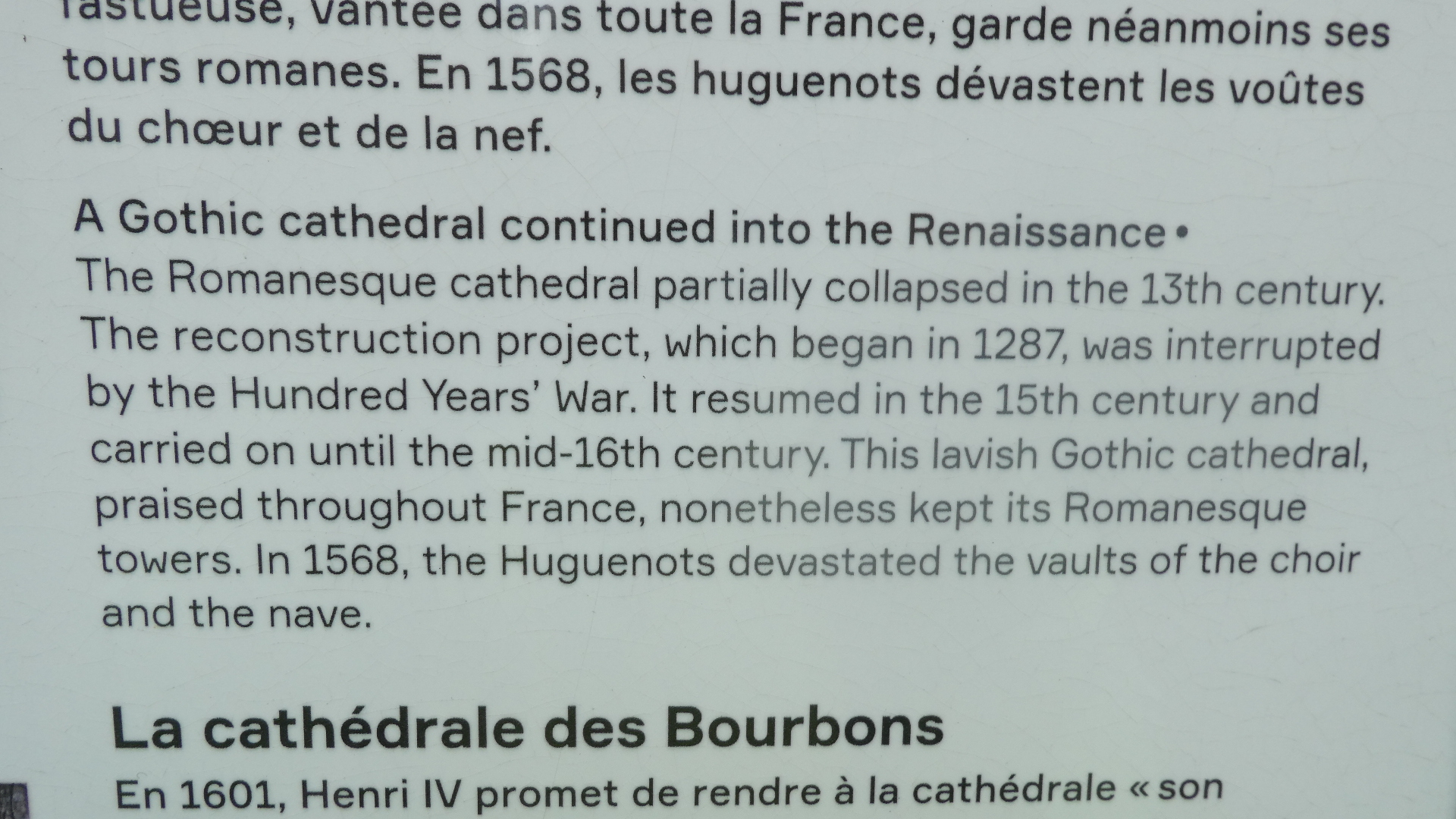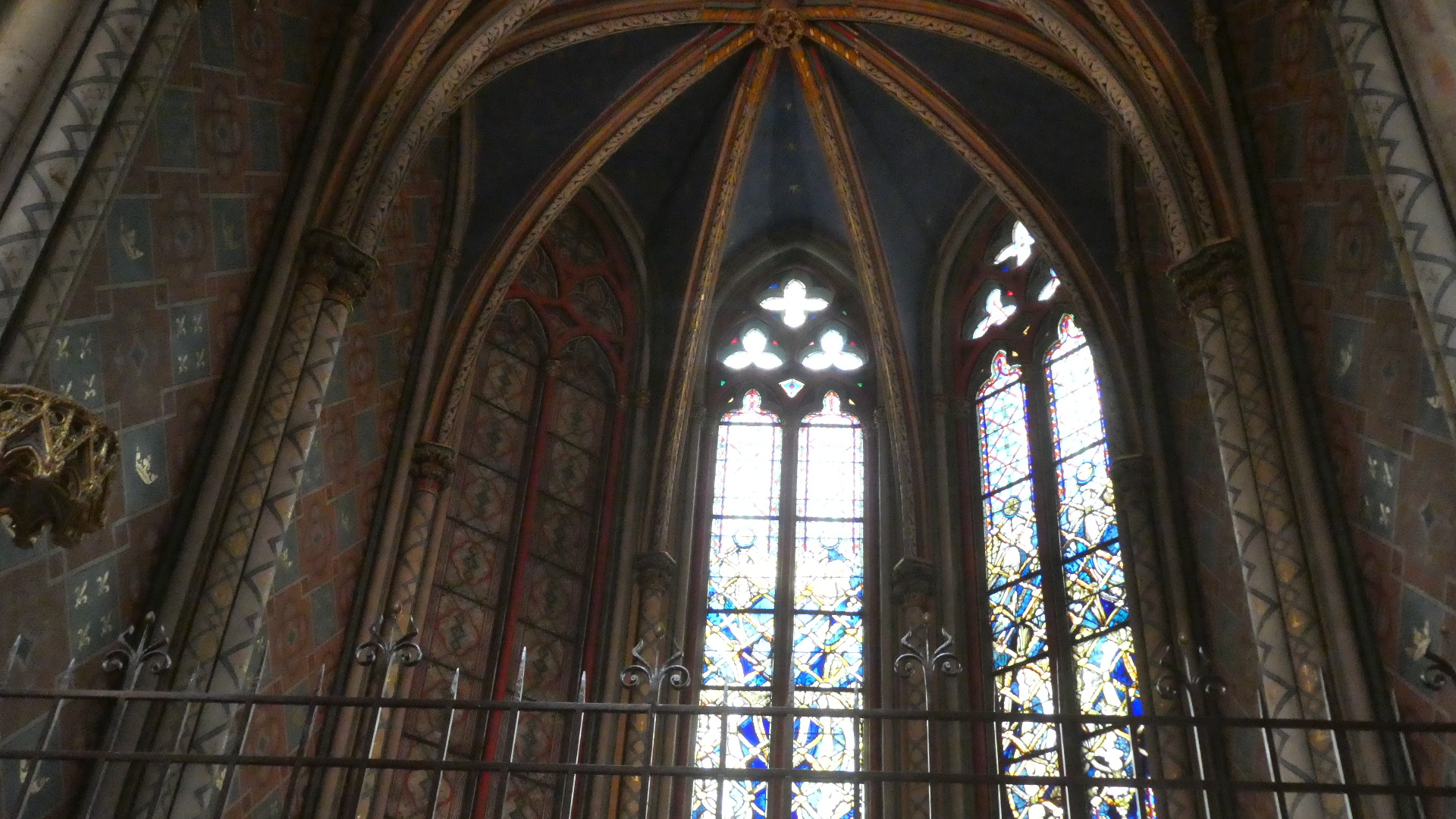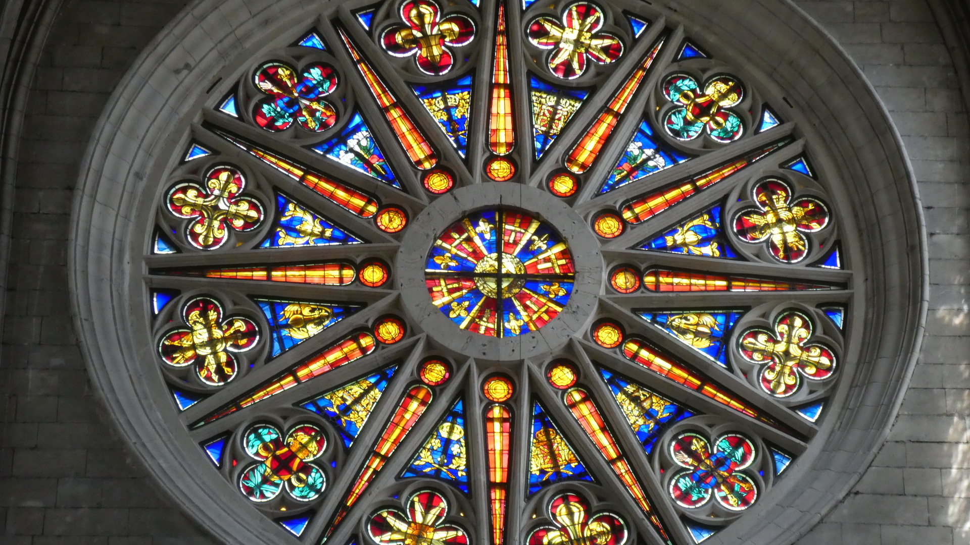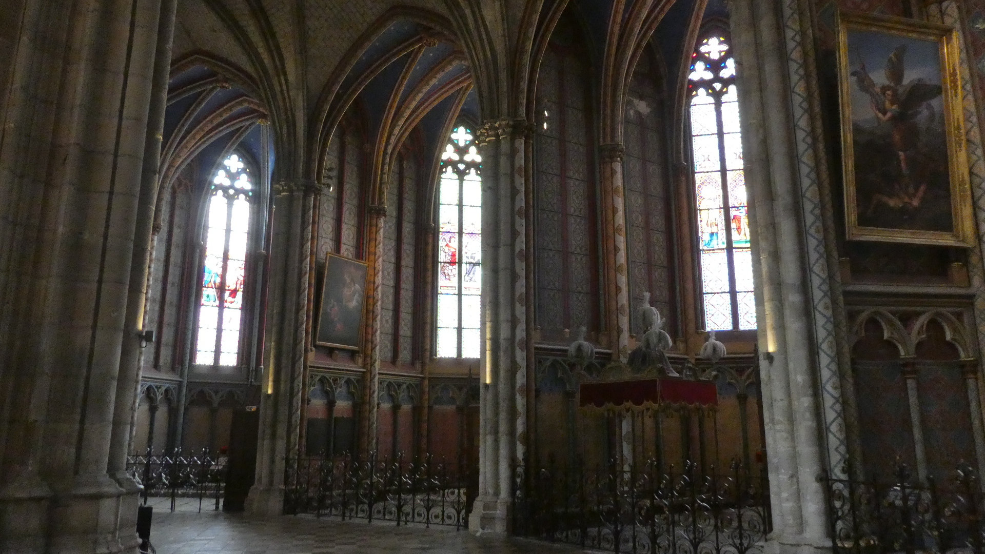 We have been inside a lot of churches and cathedrals by now, and risk becoming "churched out". But Orleans cathedral really was special. It had the tall arches, of course, but also coupled this with colourful flags, and with colourful stained glass, particularly ten huge panels telling the story of Jeanne d'Arc. To this was also added colourful decoration of the columns, and very nice carving in the choir. The whole effect was rather gay, and not at all like some of the cold, gray, and plain, if huge, spaces we have been in.