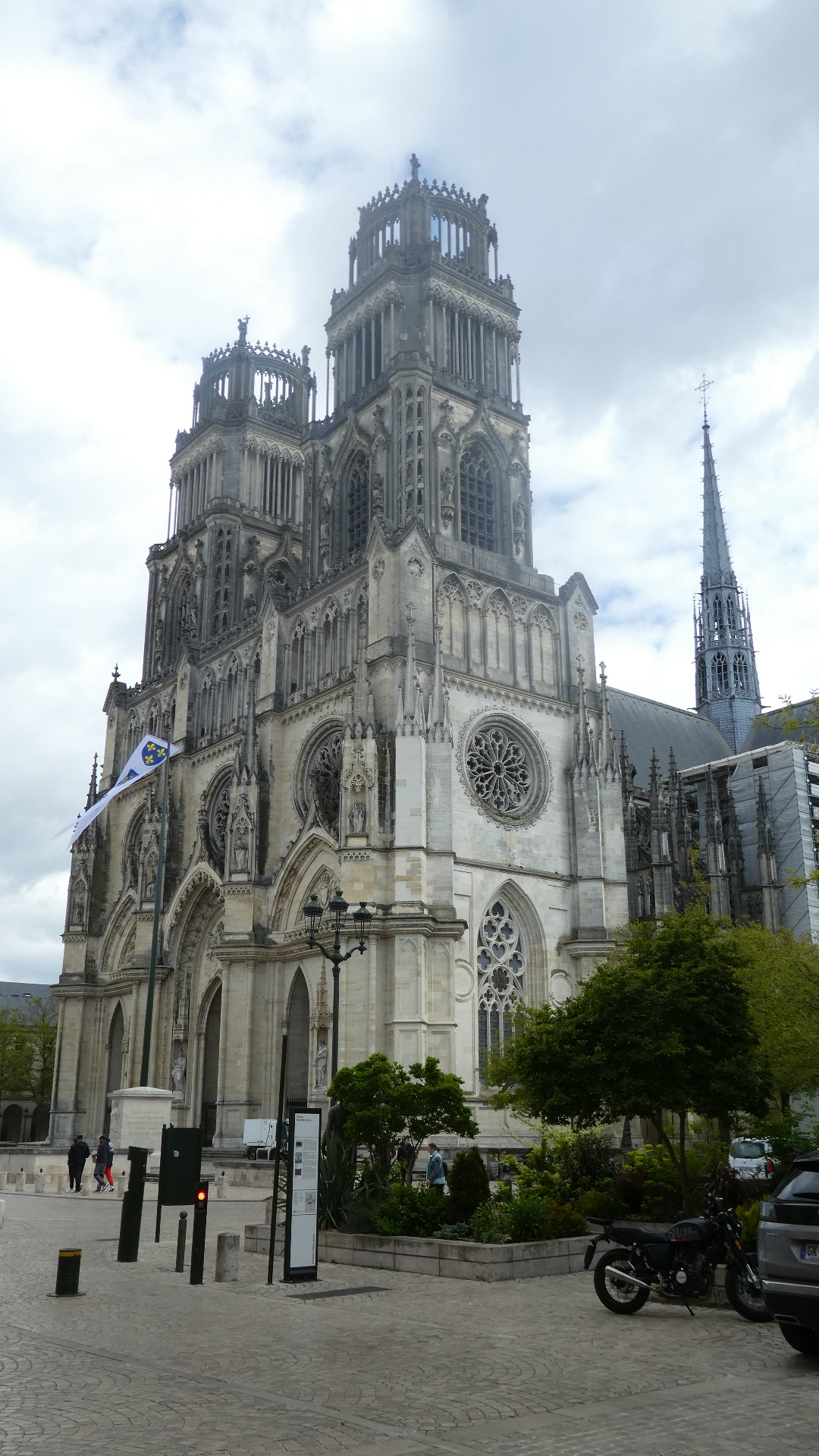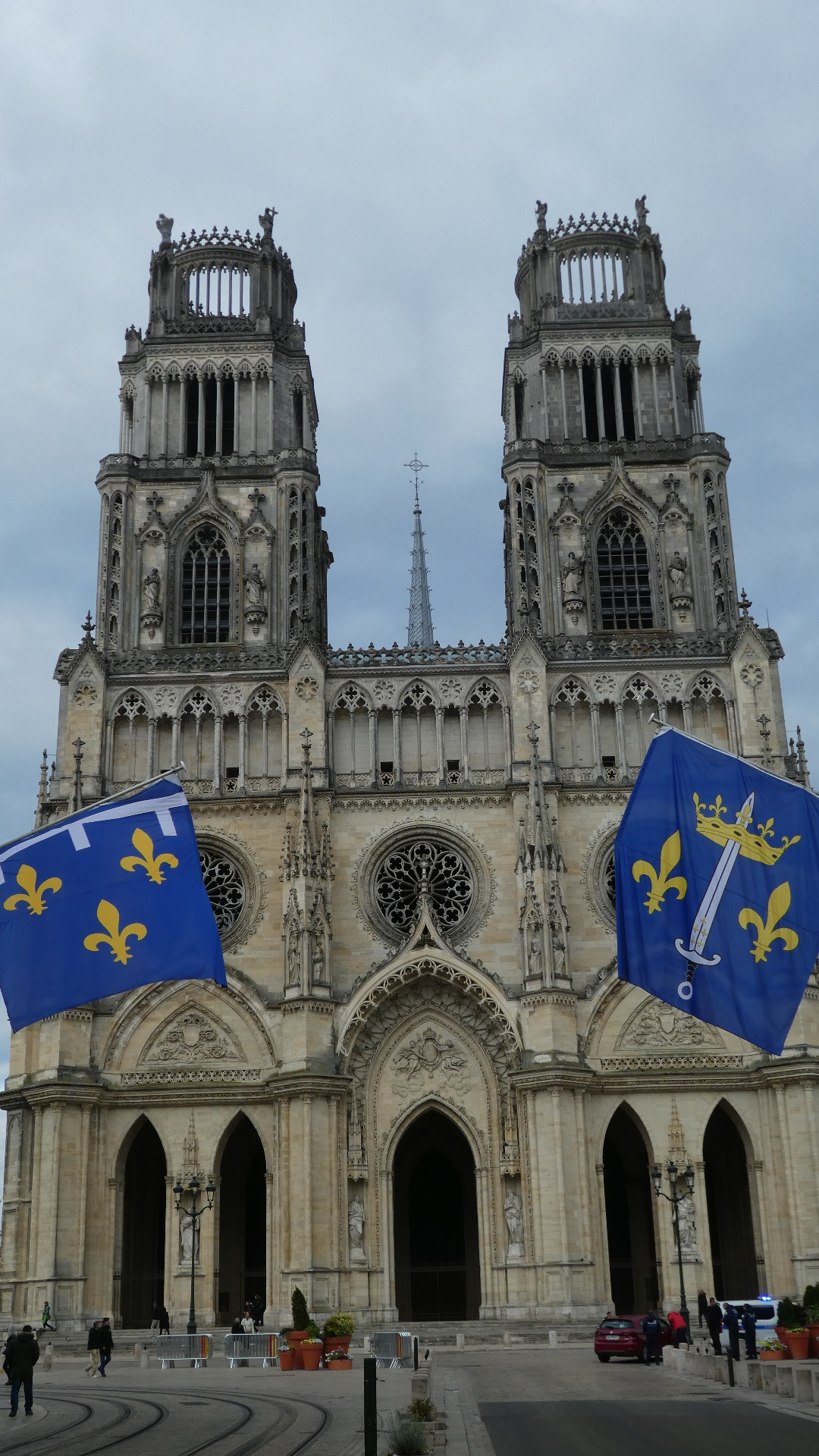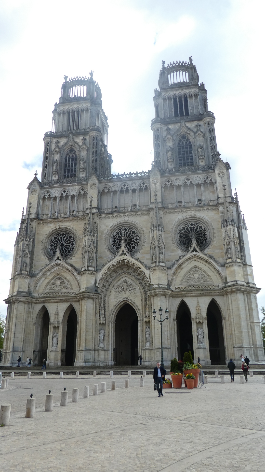 We came out into the Place Ste Croix, with its cathedral standing at the head of Jeanne d'Arc street. The cathedral seems modelled on Notre Dame in Paris, with its two fairly short towers.