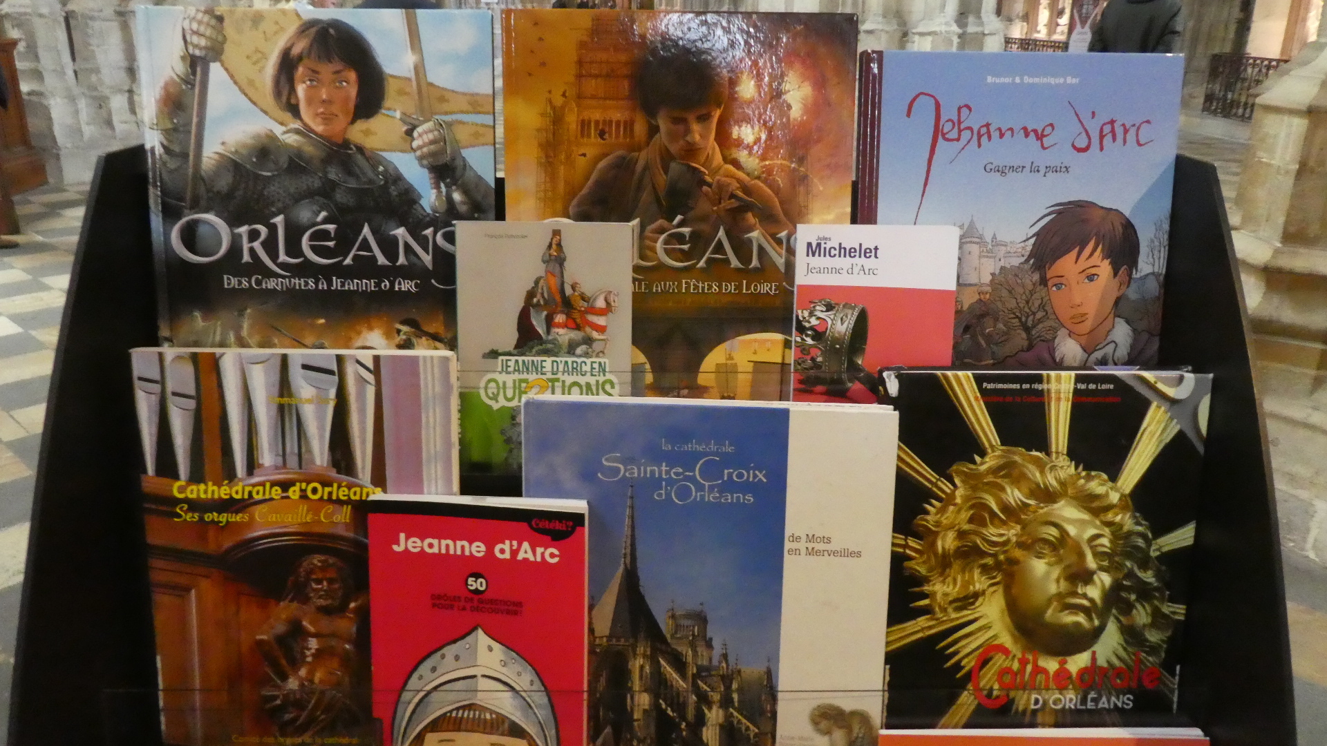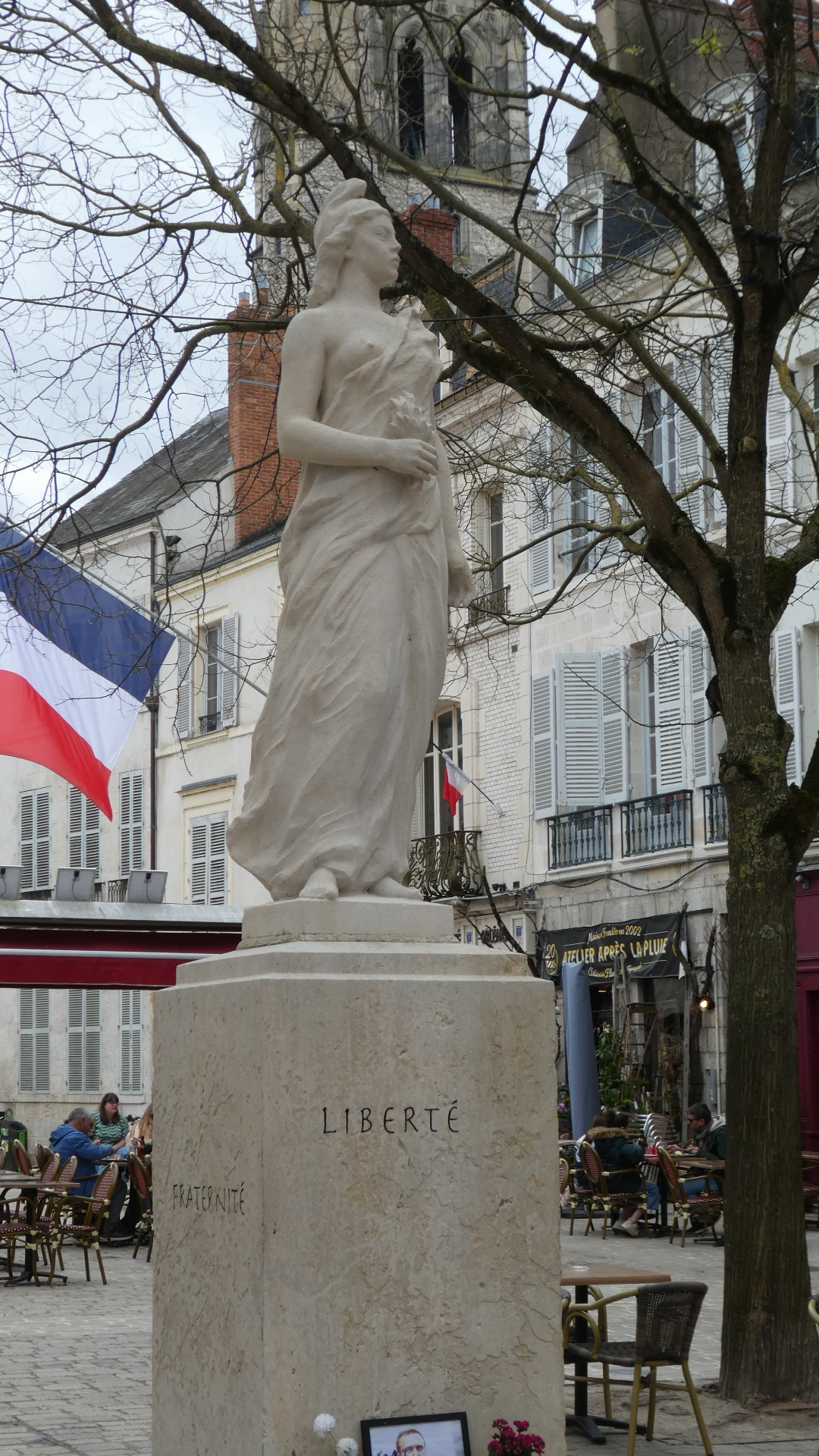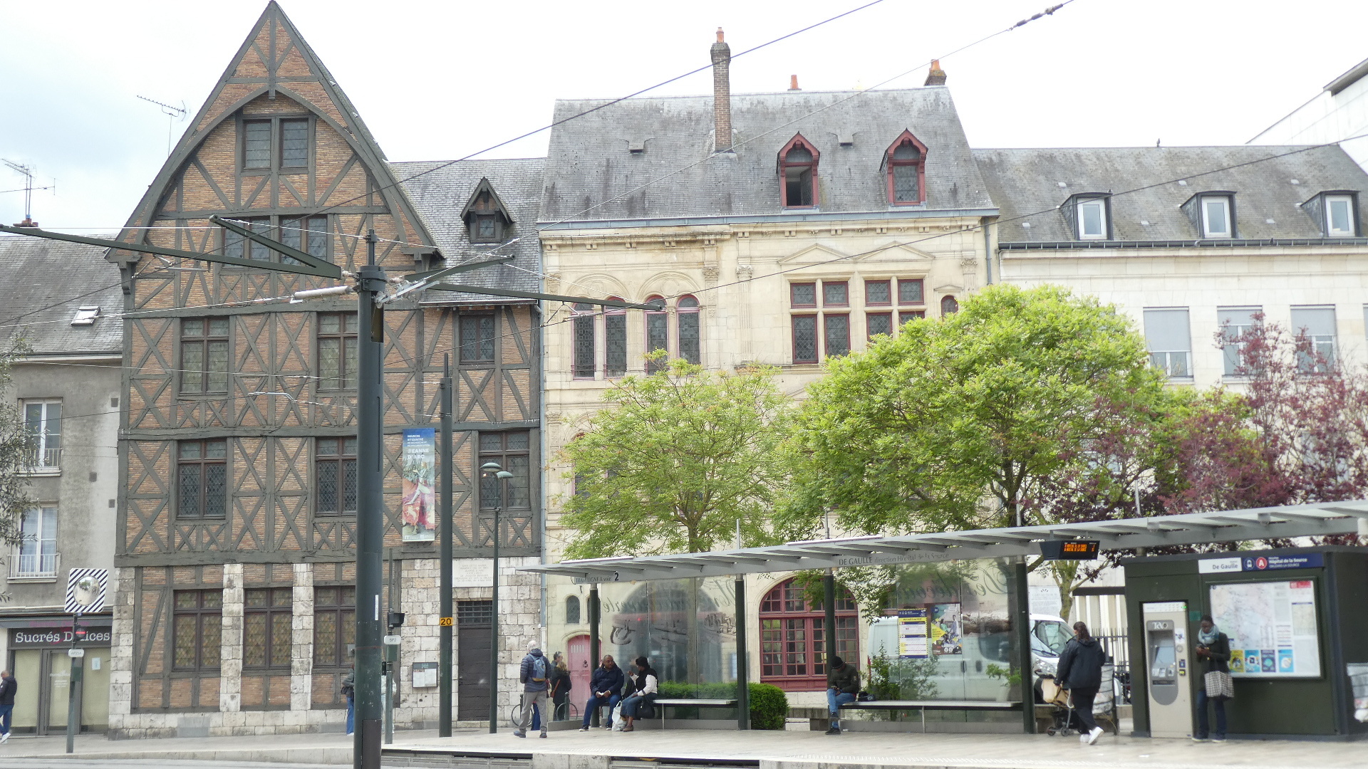 We came out into the Place Ste Croix, with its cathedral standing at the head of Jeanne d'Arc street. The cathedral seems modelled on Notre Dame in Paris, with its two fairly short towers.