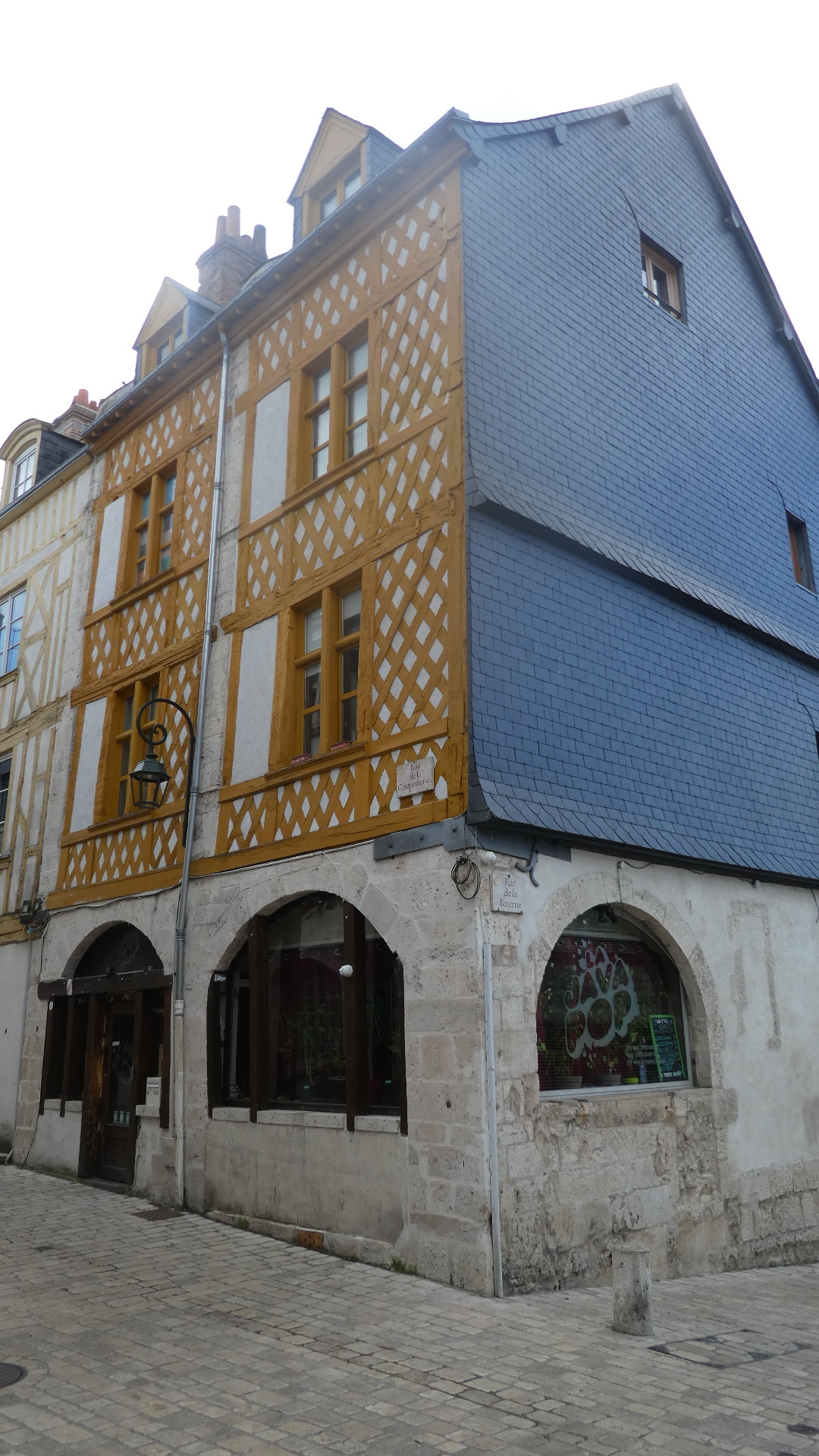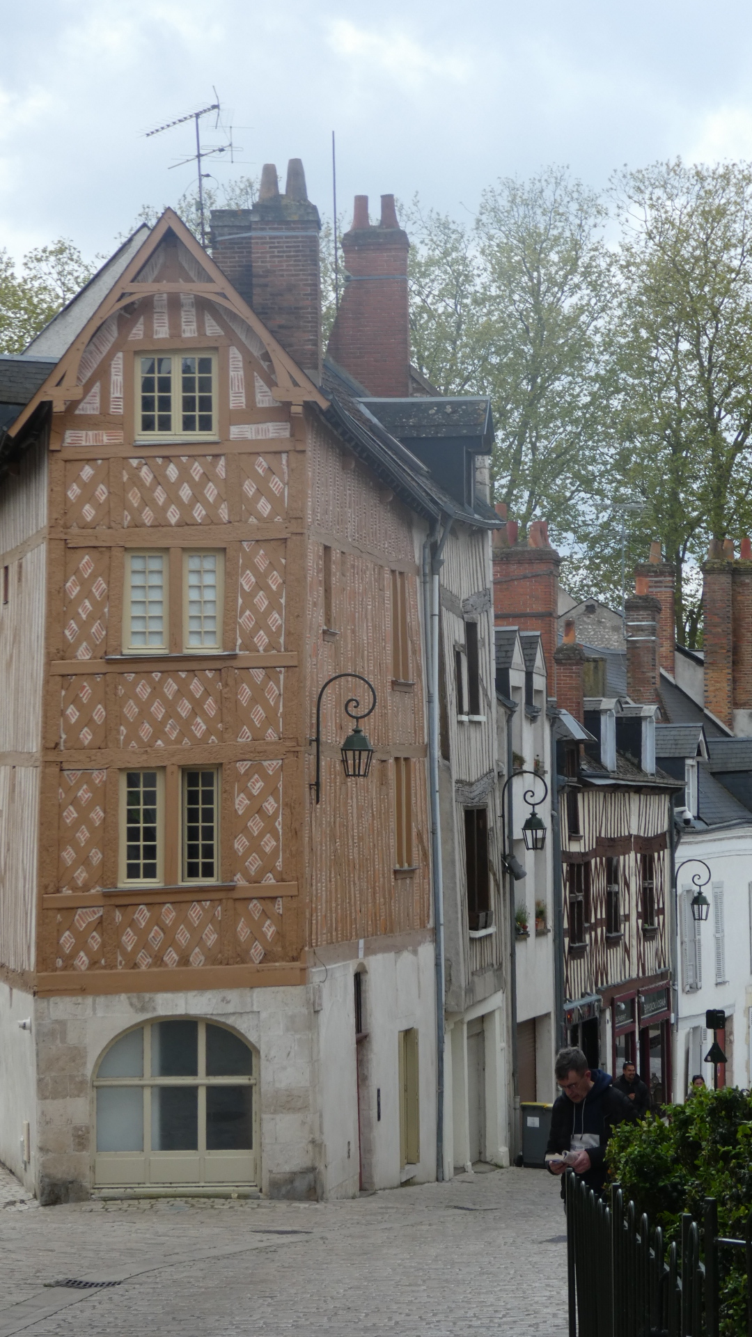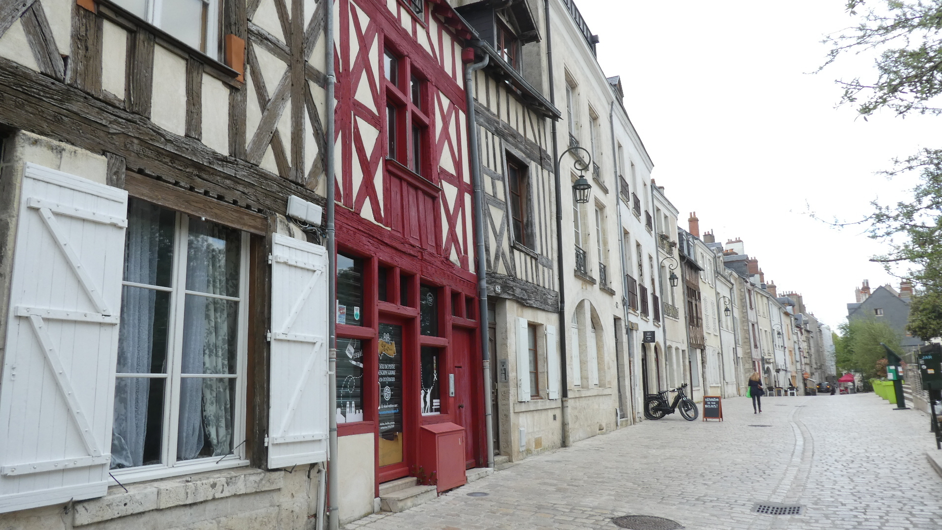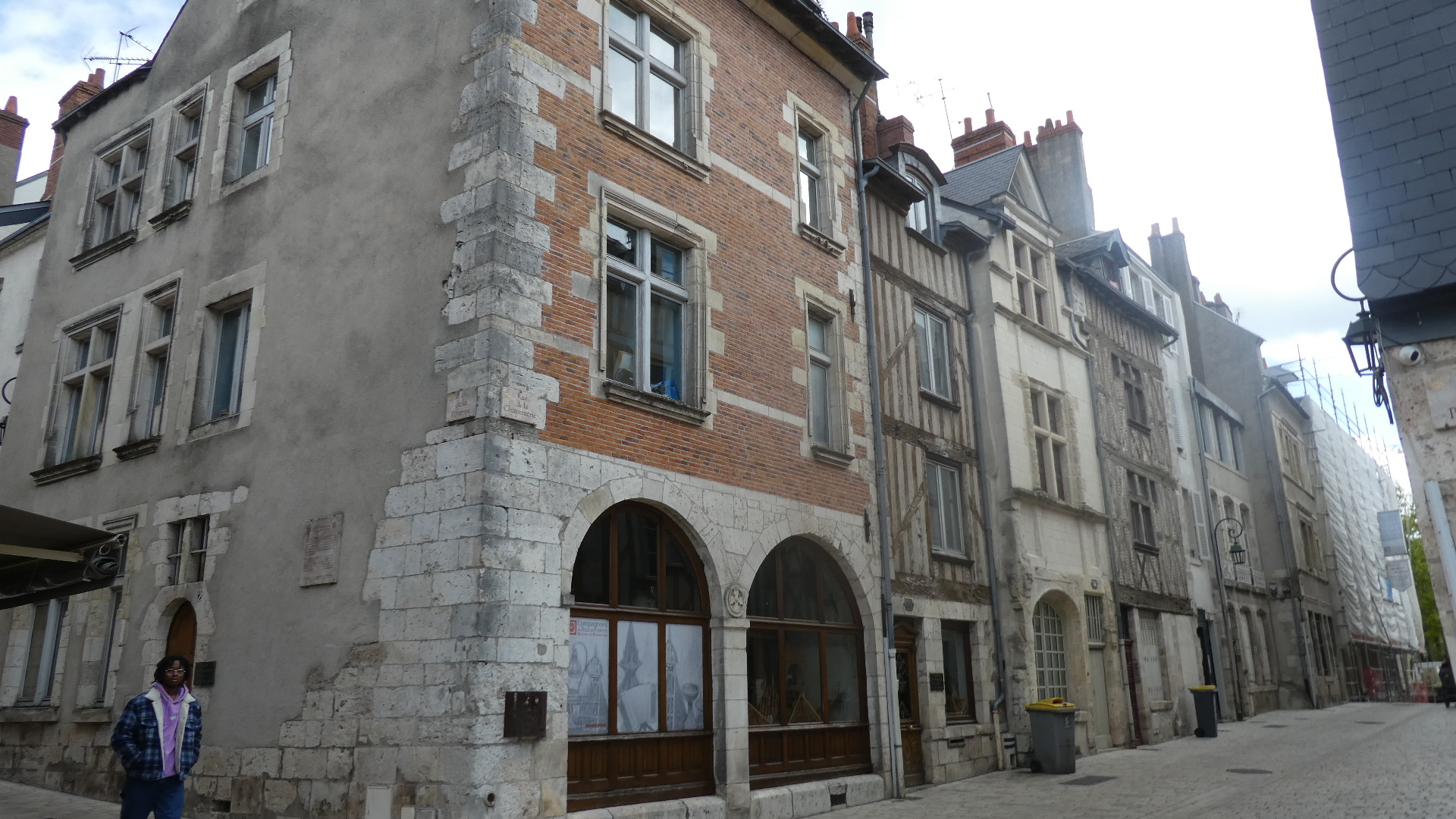 If you look at the track that starts off this post, you see that our apparently drunken rambling forms something of a box. This results from places we were trying to get to, like the bike shops, the cathedral, Place Martroi, and home to the hotel. But the box actually encloses the old town, so to some extent we missed it by walking its perimeter. We fixed that now by cutting right through it. So the photos below can be said to be from old town Orleans. One thing we also wanted to fix was the haphazard coverage of the life of Joan of Arc stained glass panels at the cathedral, not to mention having not gone to the Joan of Arc chapel there. So we went back to the cathedral, but unfortunately found it closed. OK, next time.
