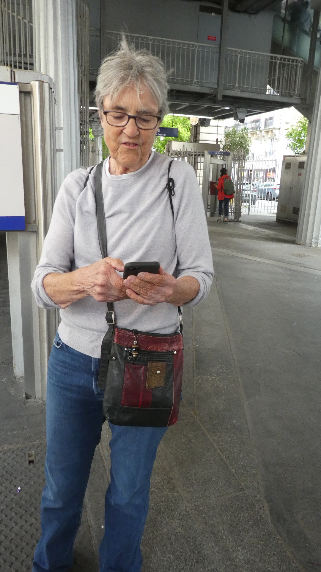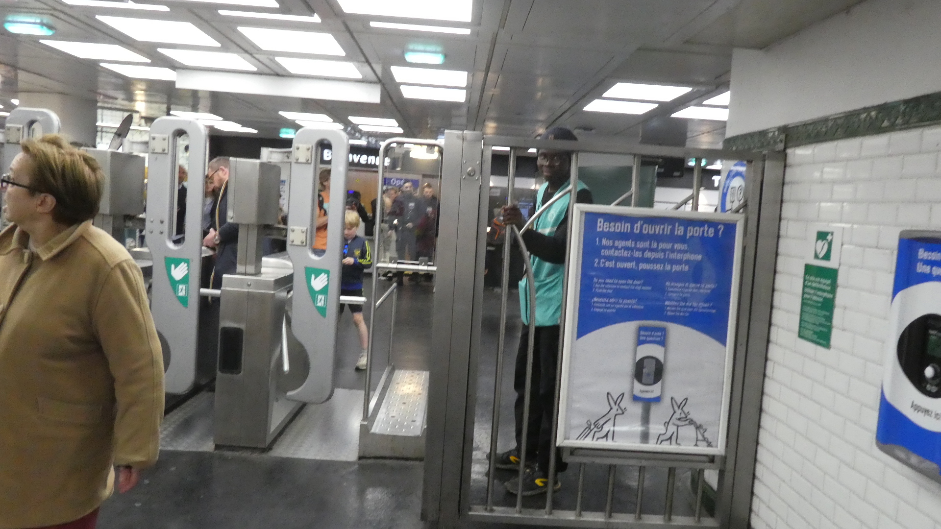 Our reconfigure took us on another line, to Opera, where we should be able to get on the RER. But at Opera, when we put our tickets, purchased in the morning, into the reader, they were rejected. A volunteer helper nearby suggested that the tickets could have been magnetically zapped by our cell phone, and she directed us to a wicket where we could get replacements.
