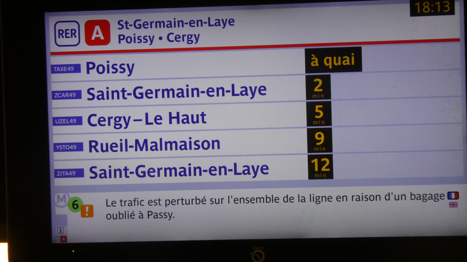 The man in the wicket put our tickets in a reader and declared that they were only good until 17:00, and it was 17:34, so go away. Dodie tried to explain that not only had we not been told of any time limit when buying the tickets, but that we were late only because of the failure of the train to Etoile. But the man was having none of it, and he began to shout "Your tickets are expired, go away!" Dodie raised her voice (slightly, as per her demure nature!) and said "Please listen, it's because of your own train emergency". But the man at first got louder, and then turned off his mike and speaker and ignored us.