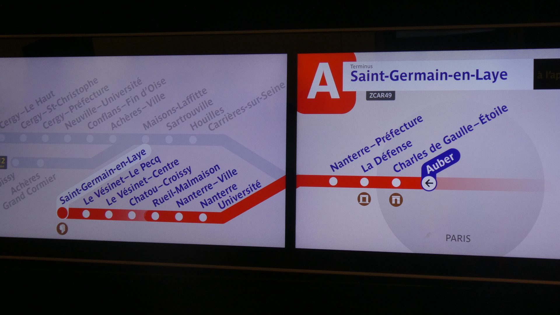 It was finally time to end the day and say farewell to Susan for another time. She led us to a likely Metro station, and had it figured how we coud get from there to CDG-Etoile, from which we could catch the RER-A back to Maisons Laffitte.
