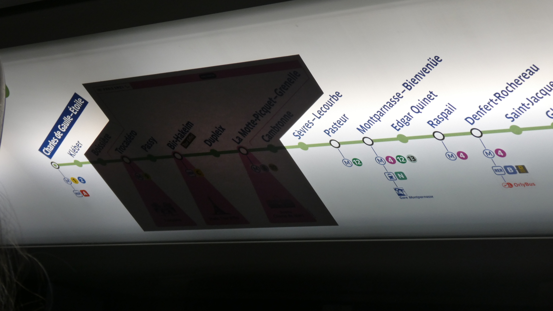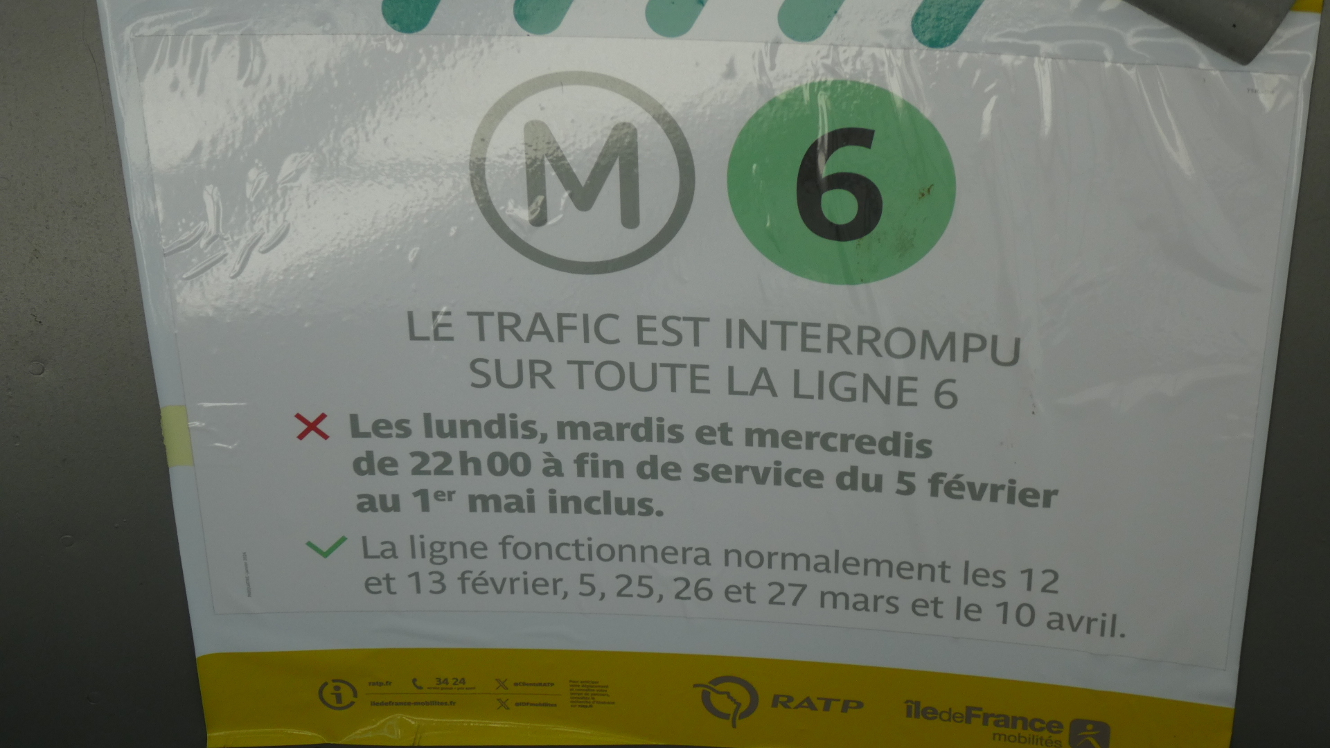 We had no trouble finding the Metro line 6, and only casually glanced at the sign below. Like the French Routes Barrees, lots of things on the Metro and RER may be claimed to be blocked, but the operating assumption is that it is not now or not where we are going on the system.