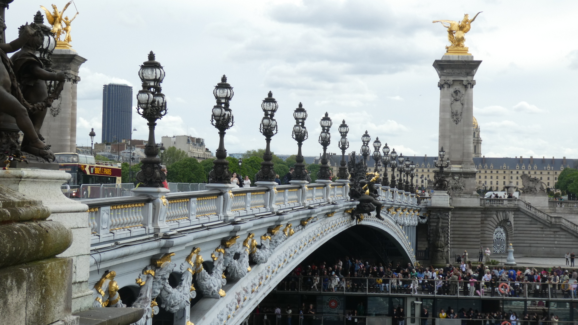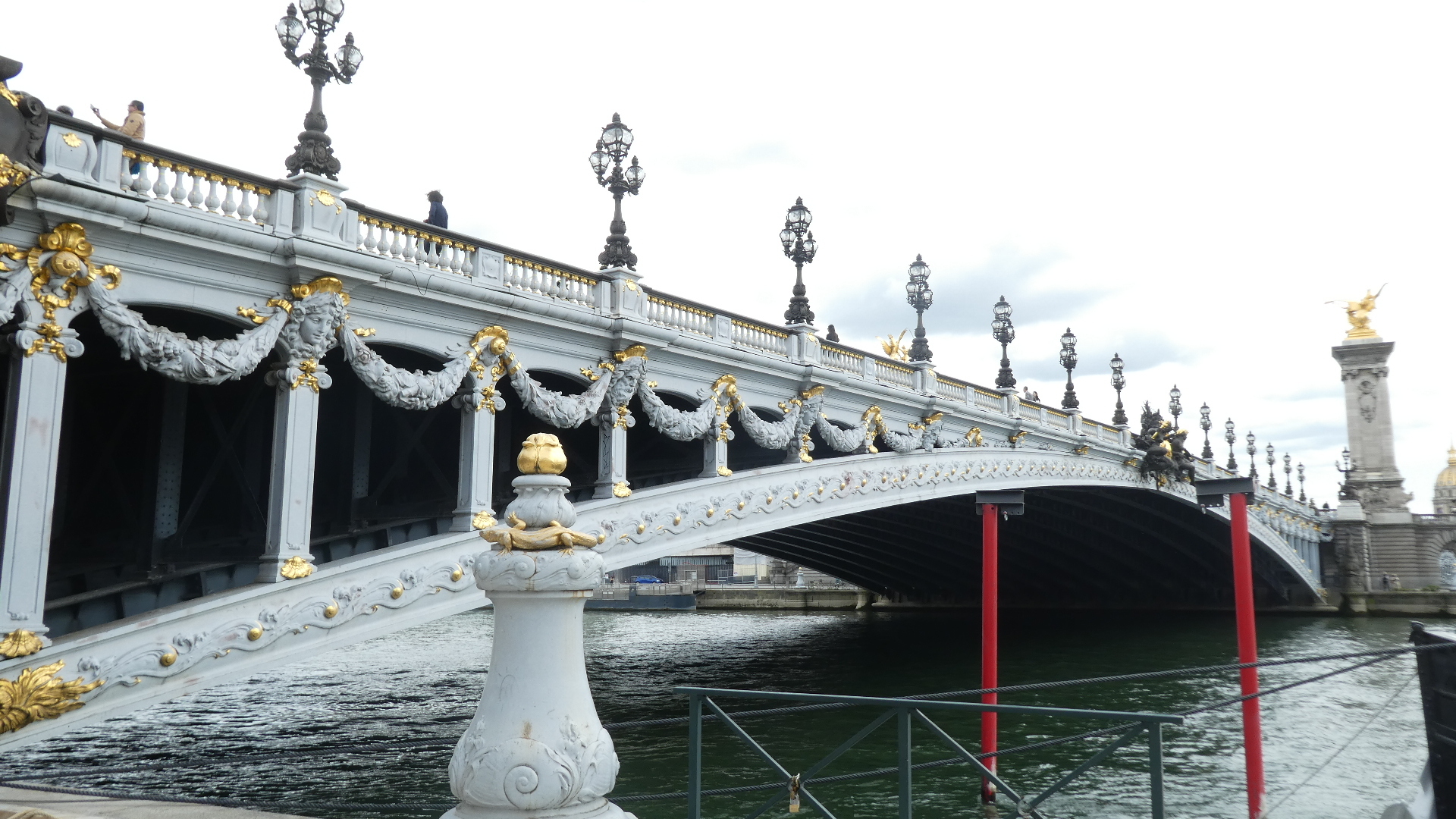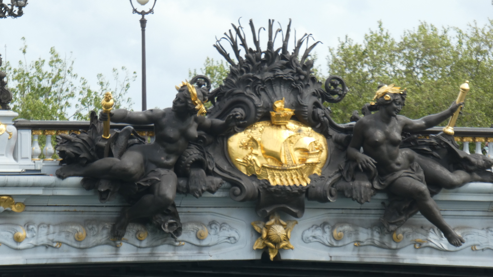 And finally the glorious Alexander III bridge, completed in 1900 along with the nearby Grand Palais. The style is Art Nouveau, and the bridge is considered the most elaborate on the Seine.