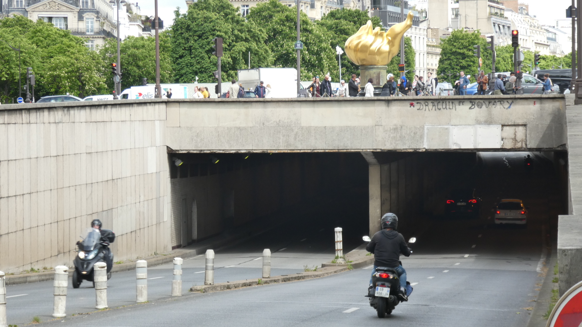 Now at the famous Pont d'Alma we see the fateful Princess Diana tunnel. In my photo are motorcyclists, but not paparazzi.