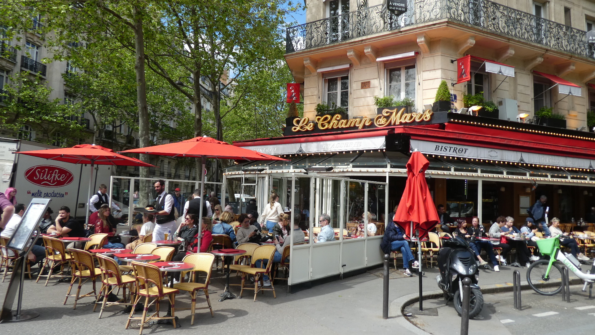 We retraced steps a little bit, passing by those great buildings that are all around , more red awning cafes, and back to the Champs de Mars.
