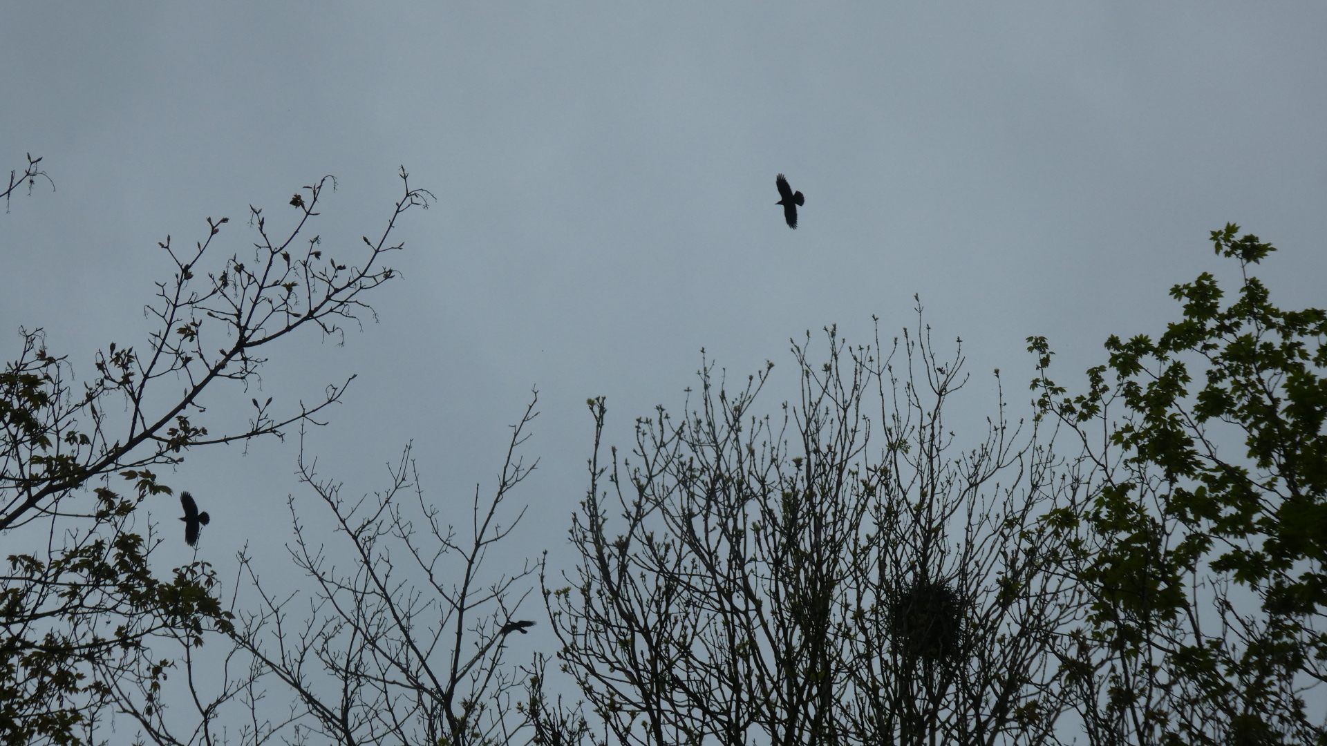 We stopped in a bus shelter to eat something, and were immediately aware of loud squawking from the trees opposite. They were full of birds, that turned out to be nesting Rooks. A Rookery, no less. It wasn't possible to photograph all the nests and birds, but the shot below does show one nest and three bird. I had thought of the word "rookery" in relation to seals, but in fact the origin is with these Rooks.