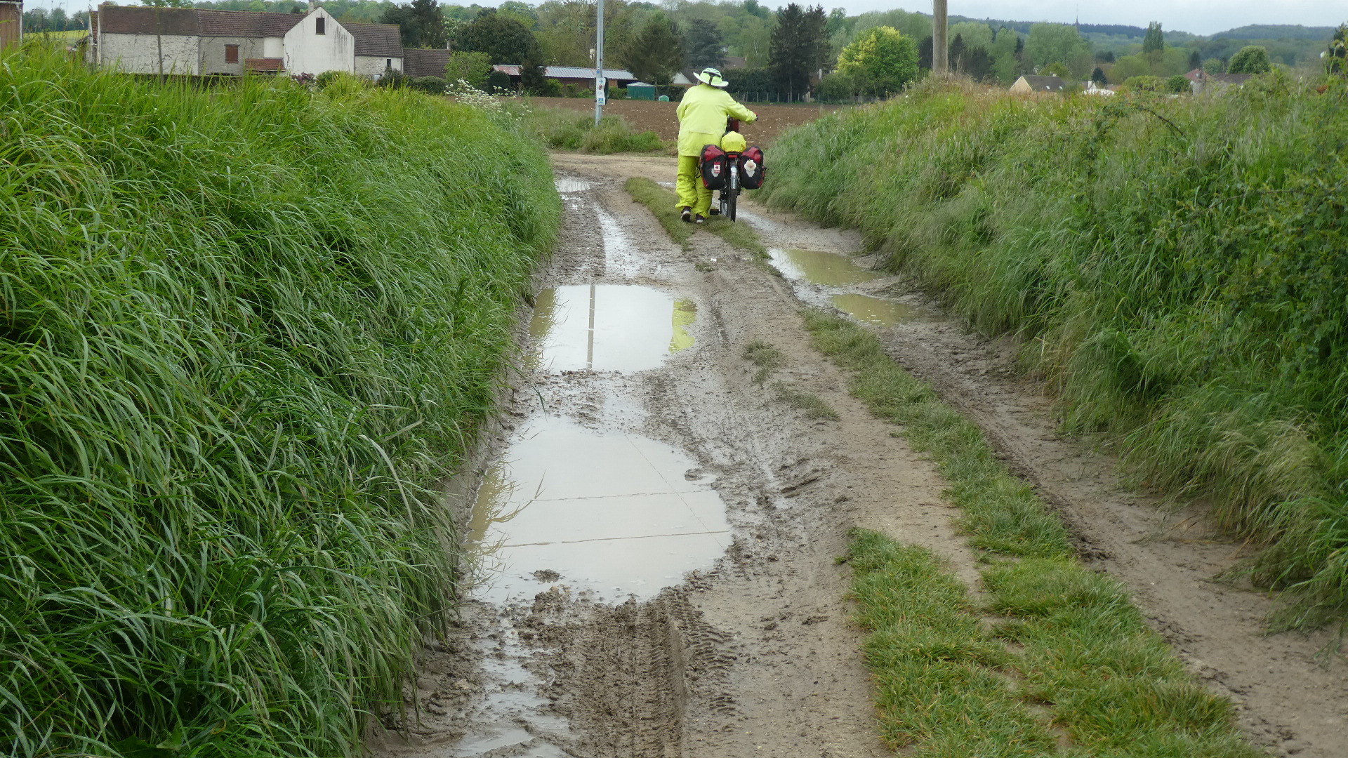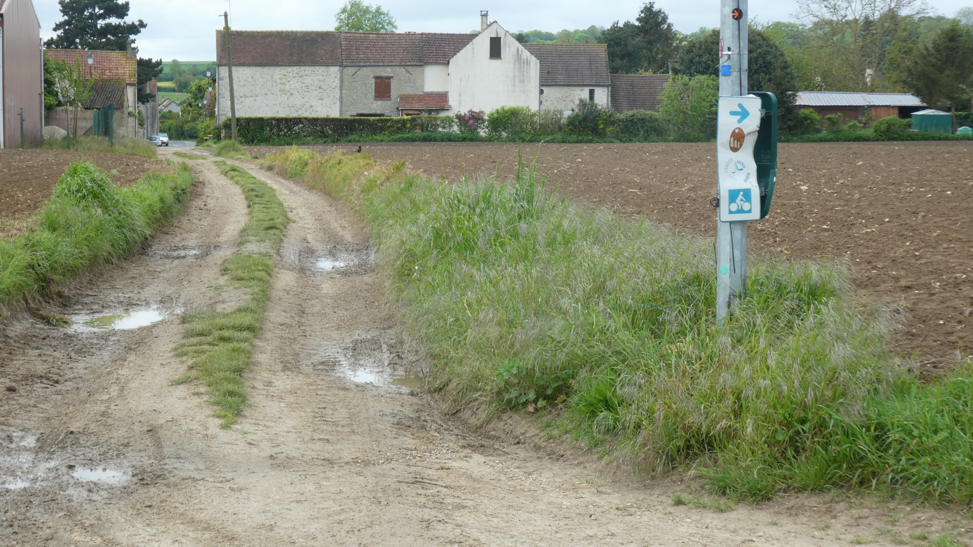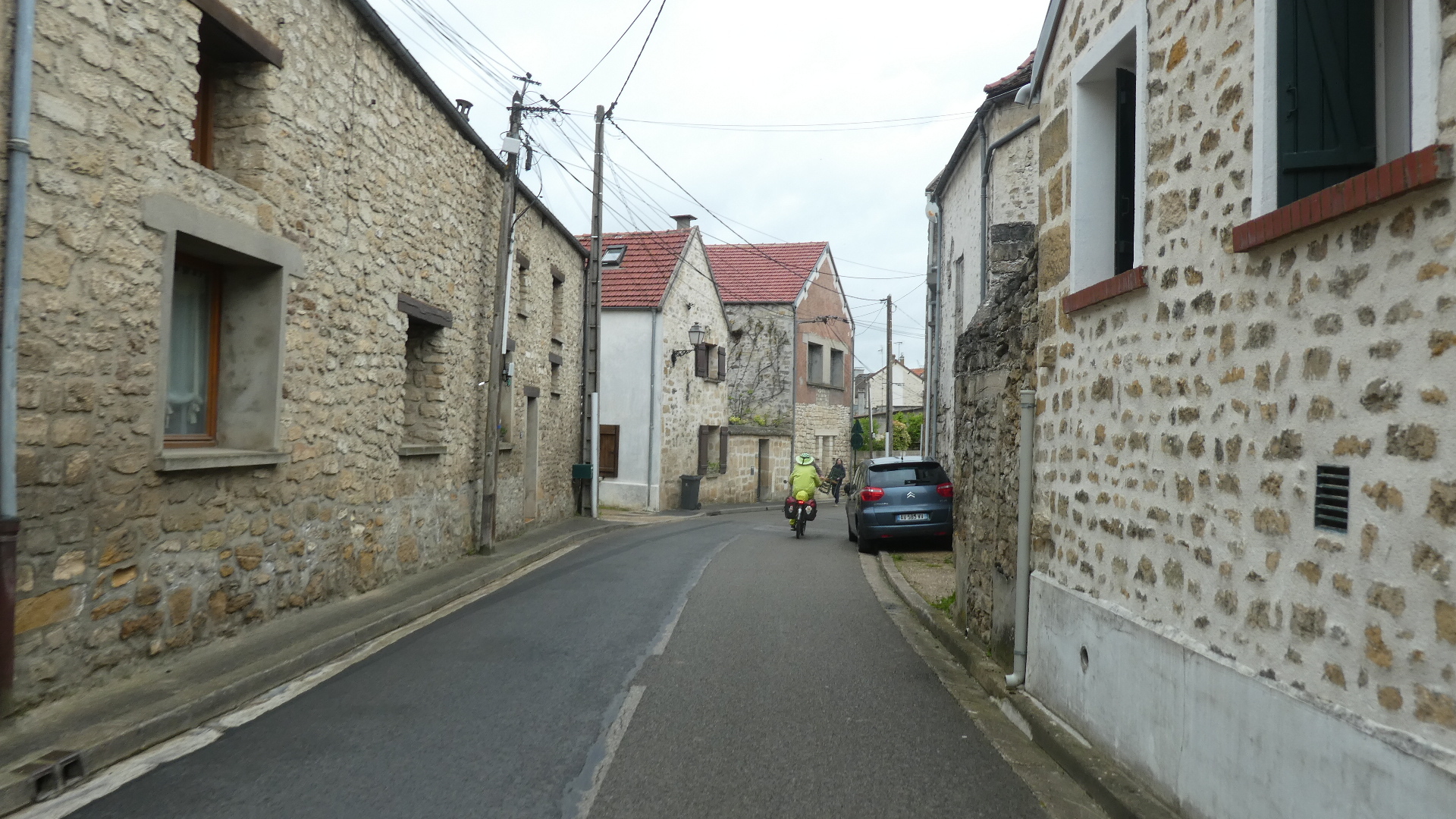 It had taken 20-25 km to leave the influence of Paris, and to return to the countryside. We had gotten so used to Paris, that it took a while to realize that we were now in a really different place. That place featured open fields of grain and rape, but also self-contained real villages, with no lurking car dealerships or box stores.