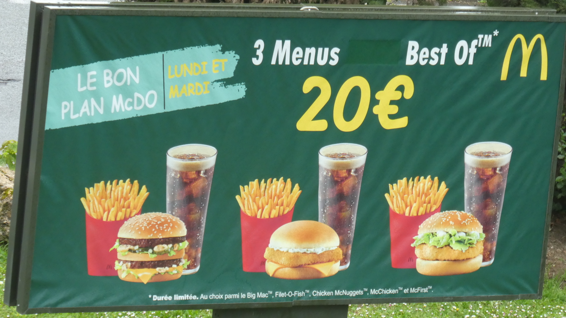 There is a McDonald's at Conflans, that we looked over at in passing. They had a sign our front advertising three bargains menus for Mondays and Tuesdays. What looks like a Big Mac, fries, and soft drink are on offer for 20 euros. That seems outrageous, about twice the U.S. price, but in some states (like Connecticut) some much higher numbers have been seen.