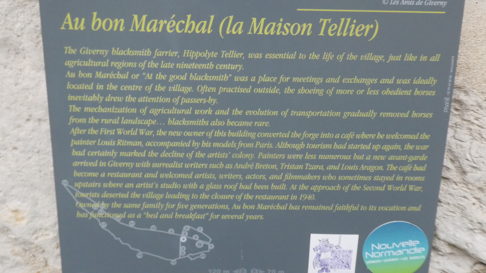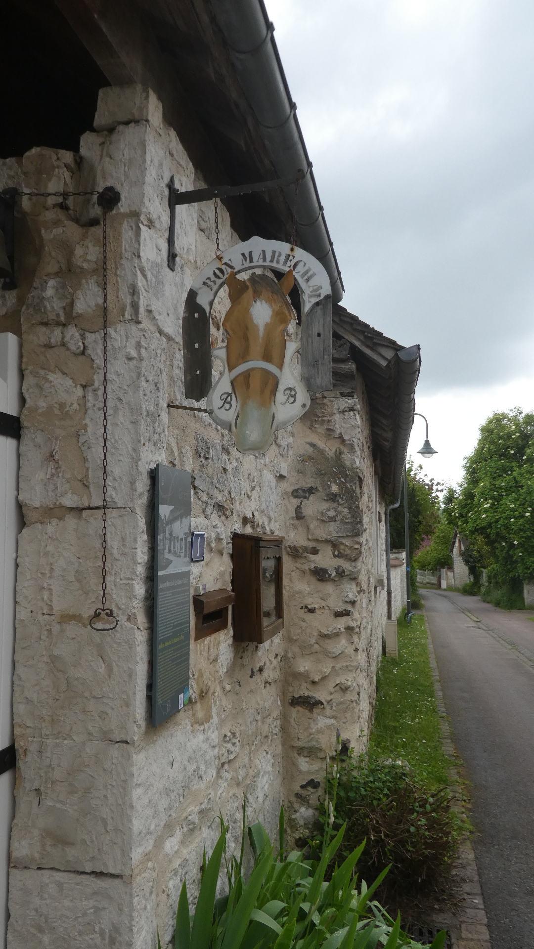 .But the village is gorgeous, and we soon found our chambre d'hotes, Au Bon Marechal. It's a historic house, as described in the sign. (The translation of marechal as blacksmith, though, is a new one on us. How about "forgeron"? Any comment from our French friends?)