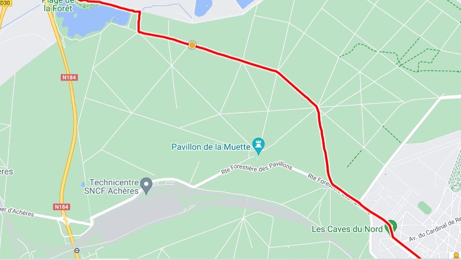I plotted a route from Maisons Laffitte to Giverny using cycle.travel. This route planner is unique in offering an option for paved surfaces only. This time forgot to ask for that. As a consequence we got a more interesting route, but one that we had to ultimately abandon.