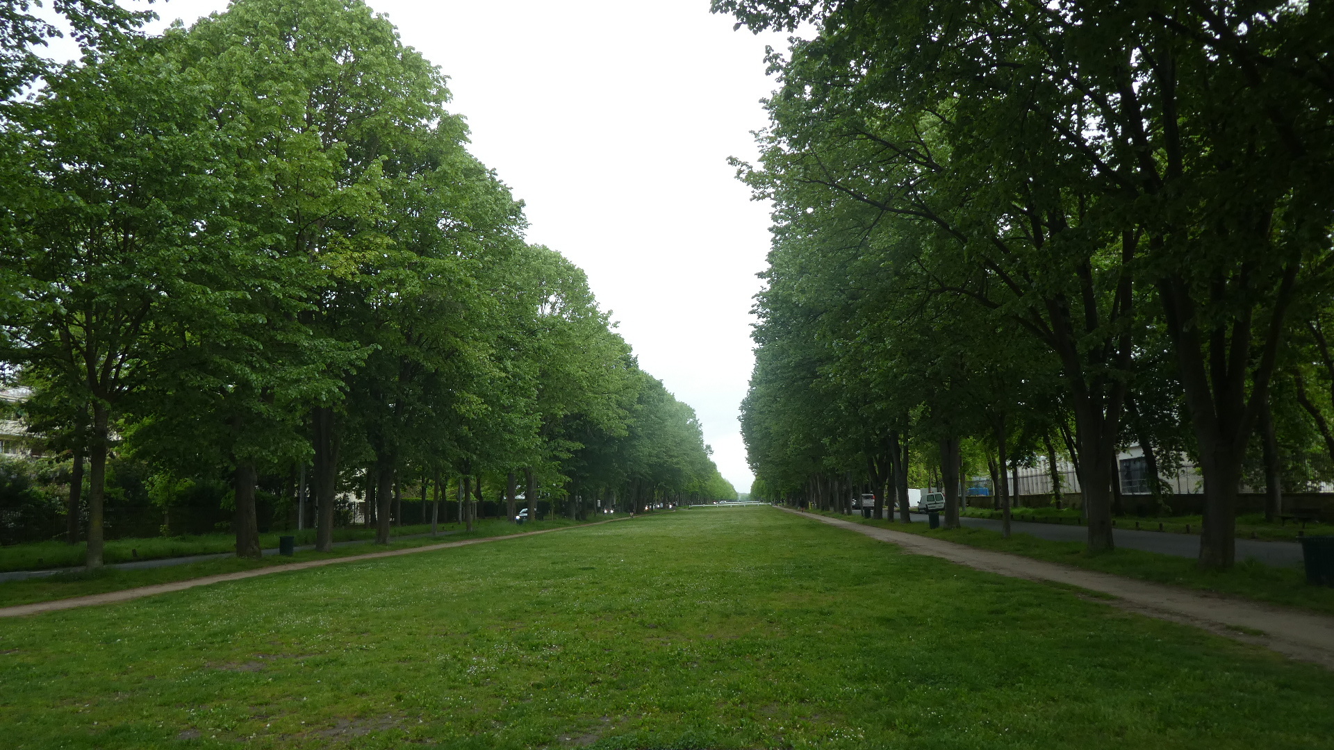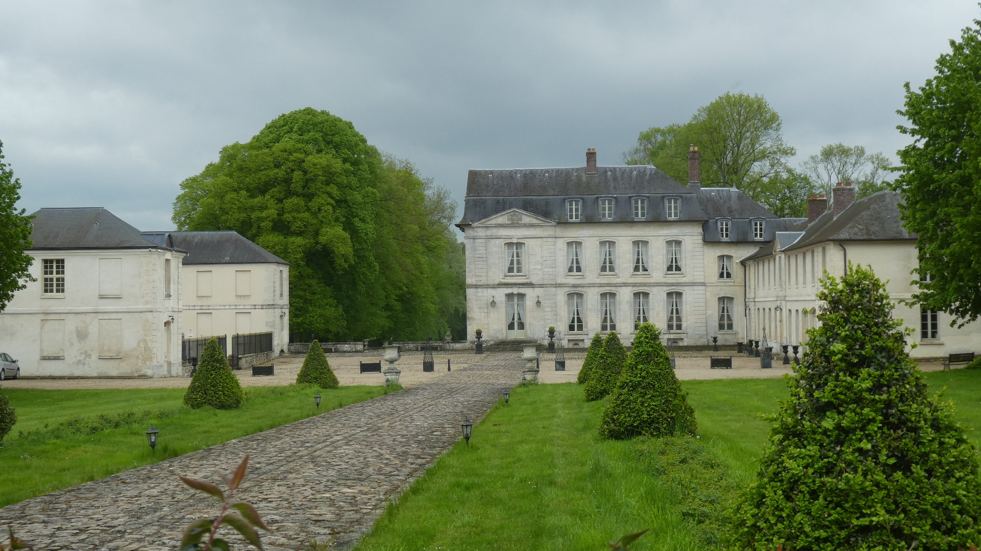 Facing the chateau is a long and rather impressive strip of grass and trees, that eventually leads to the forest. Clearly somebody is mowing the lawn, anyway.