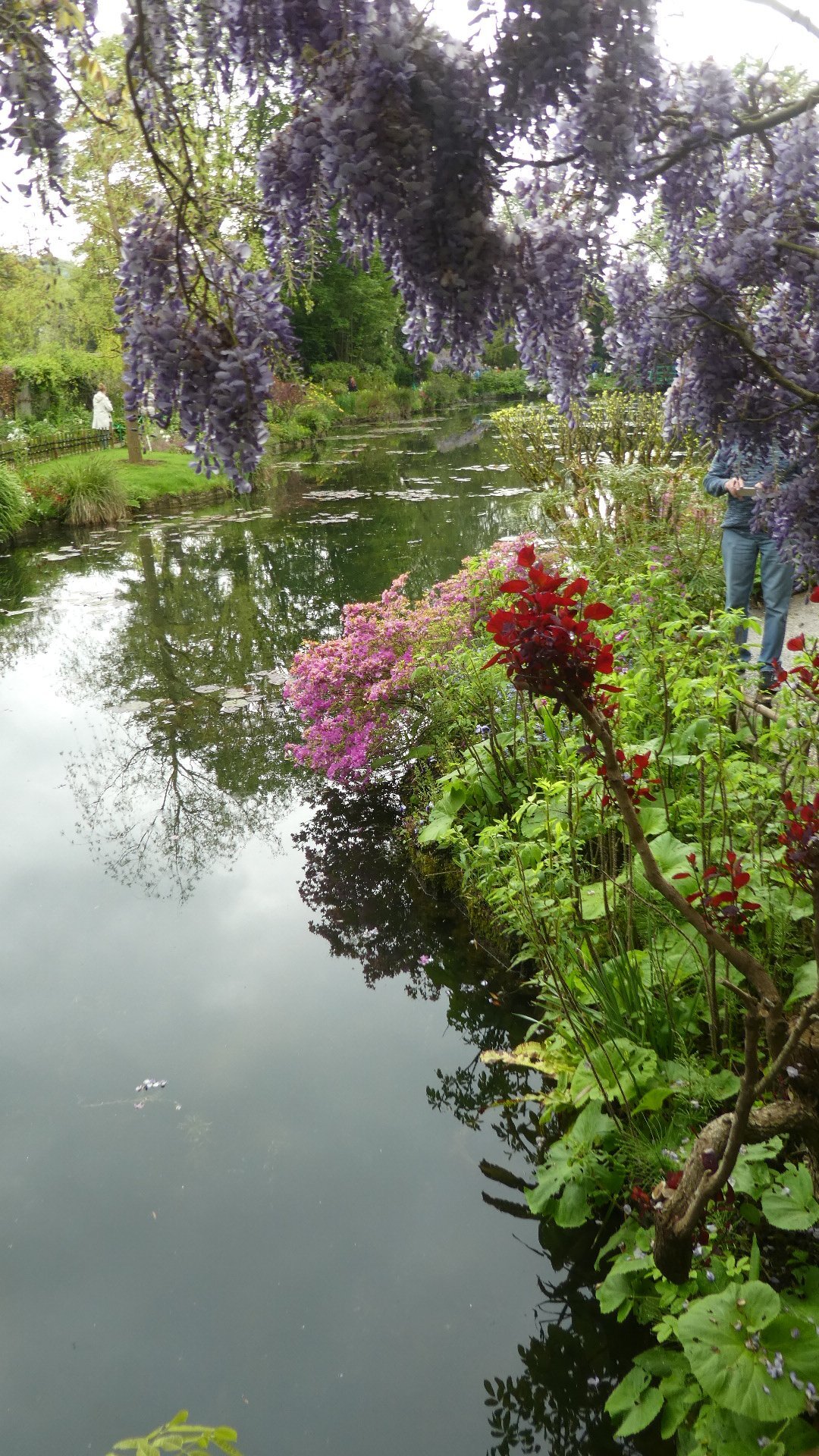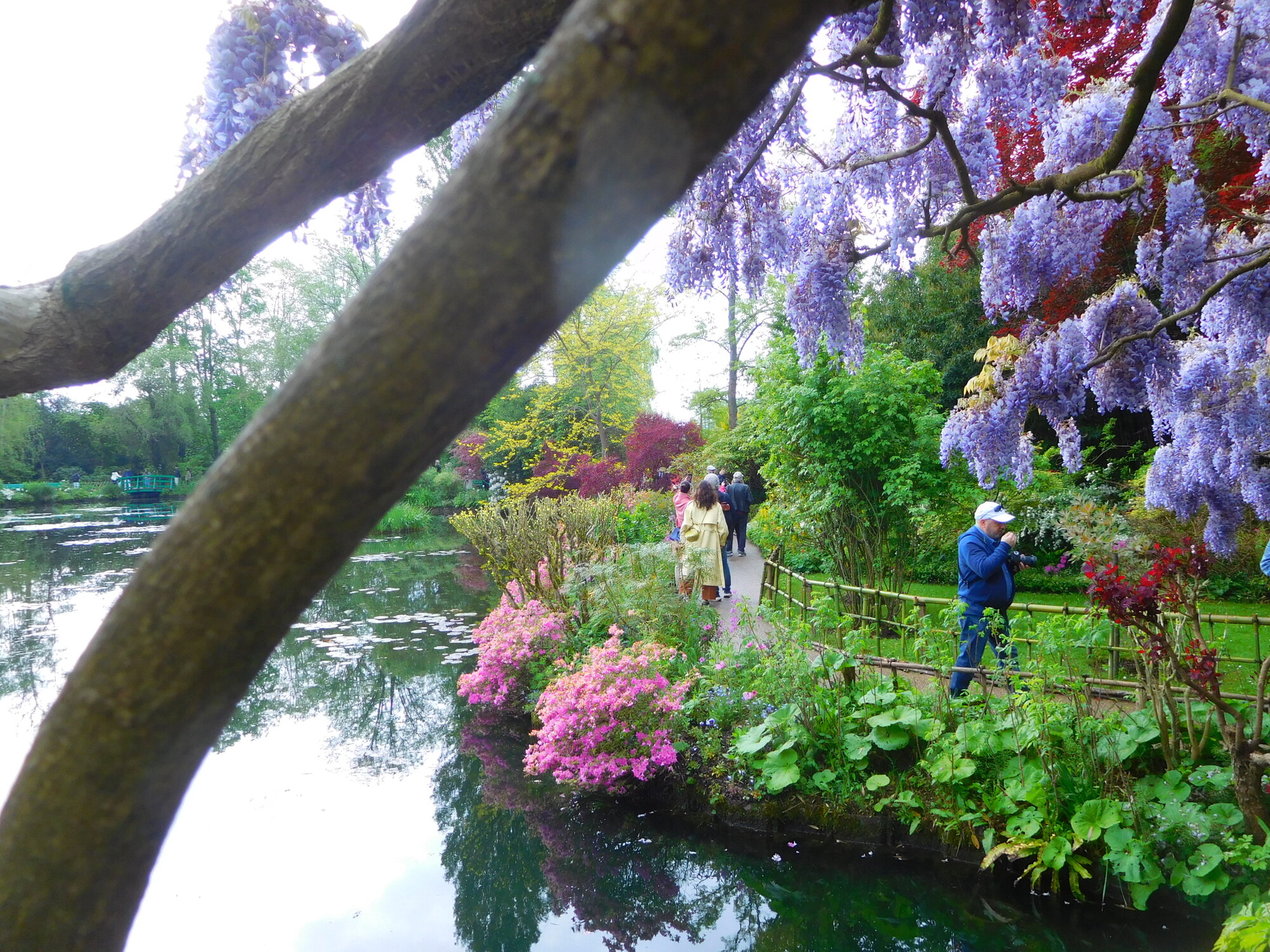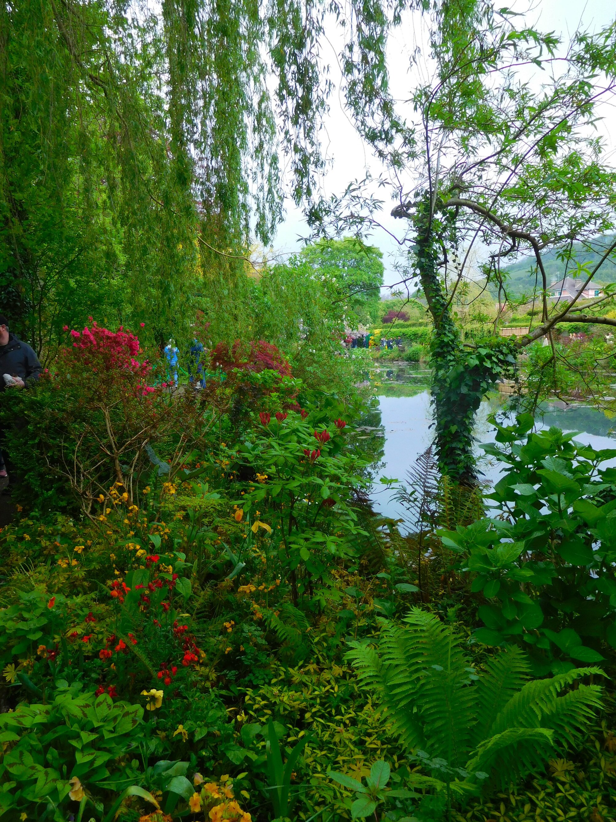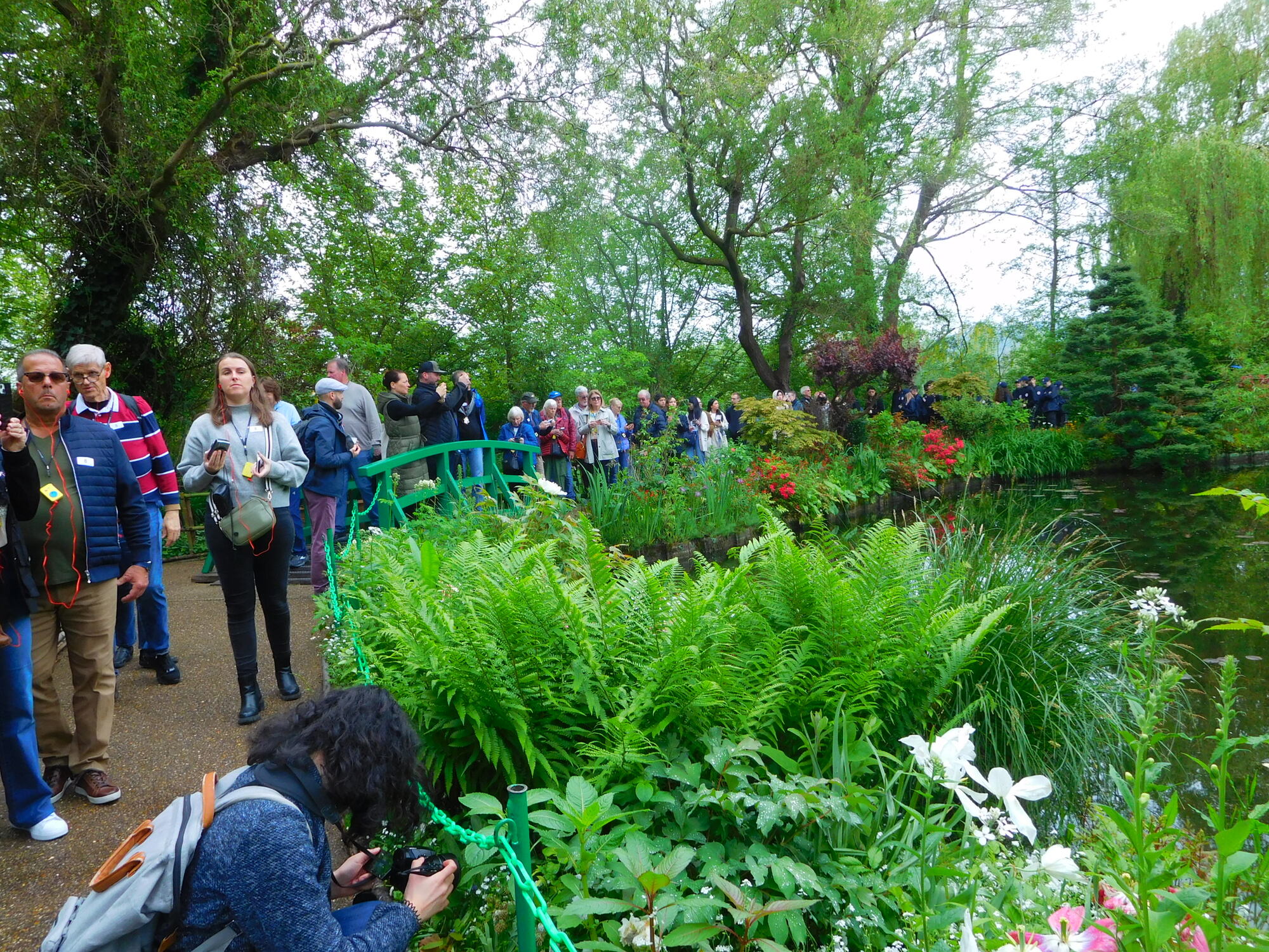 I came up with three or four lines of thinking. First off, Claude Monet created a very nice garden here. People like to see nice gardens in general, like our own Butchart Gardens back home. But Monet's little garden, nice as it may be, could not attract millions of people. However, Monet, an unbelievable genius, looked at his little garden and saw something extra in it. He then captured what he saw on canvas, and in a glorious and to most, understandable style. Monet's mind and skill transformed the little garden into a monumentally huge thing. Ok, but why are people (and why are we) here? The first reason is just to see the thing that Monet saw, that created the huge "thing". That would be like going to see the gas station that featured in the Canadian hit TV comedy "Corner Gas". The second reason is to see if, confronted by the same garden, we can manage to see it as Monet saw it. To do this, I found, you can try squinting. That can blur things into an "impressionistic" image. But the final thing is to try to use the camera, where Monet used paints, to capture the impressions. And this is huge. No one will come here without a camera. In our case, we pulled put our spare camera, to allow the more refined "impressionist" eye of Dodie to, like me, shoot about 50 shots per hour.