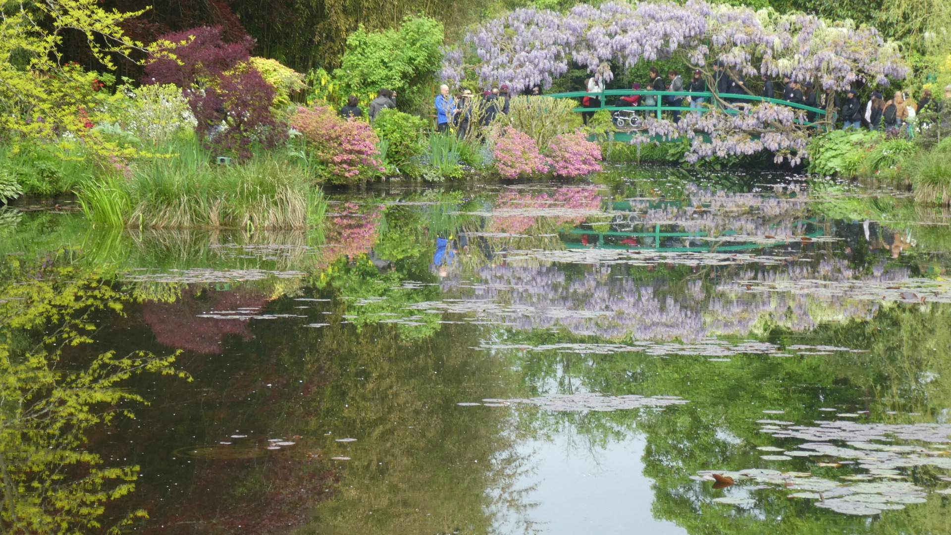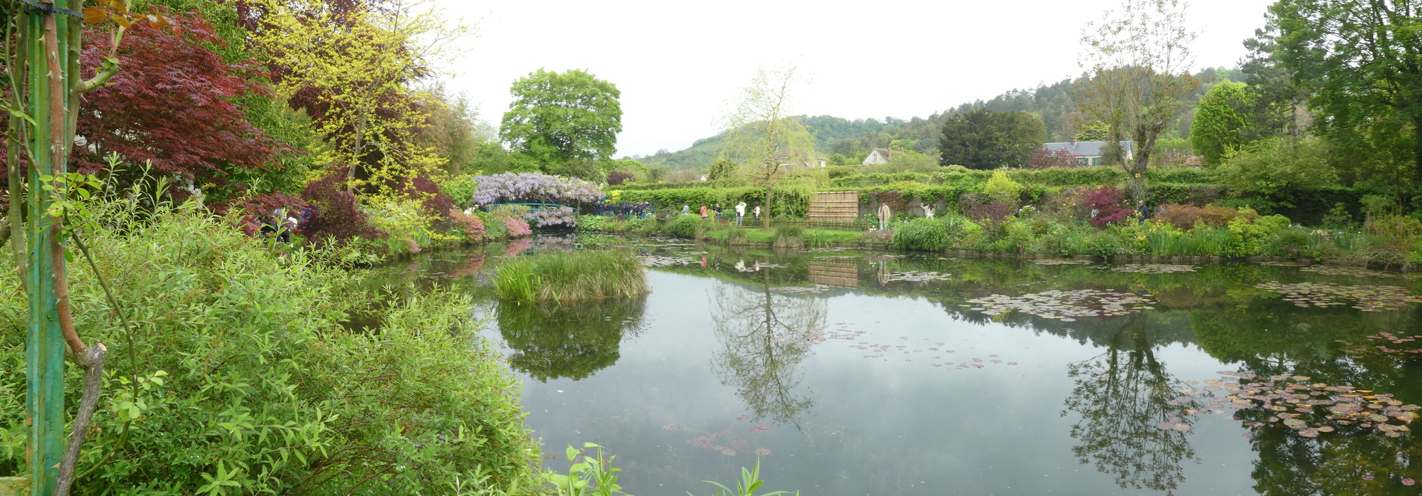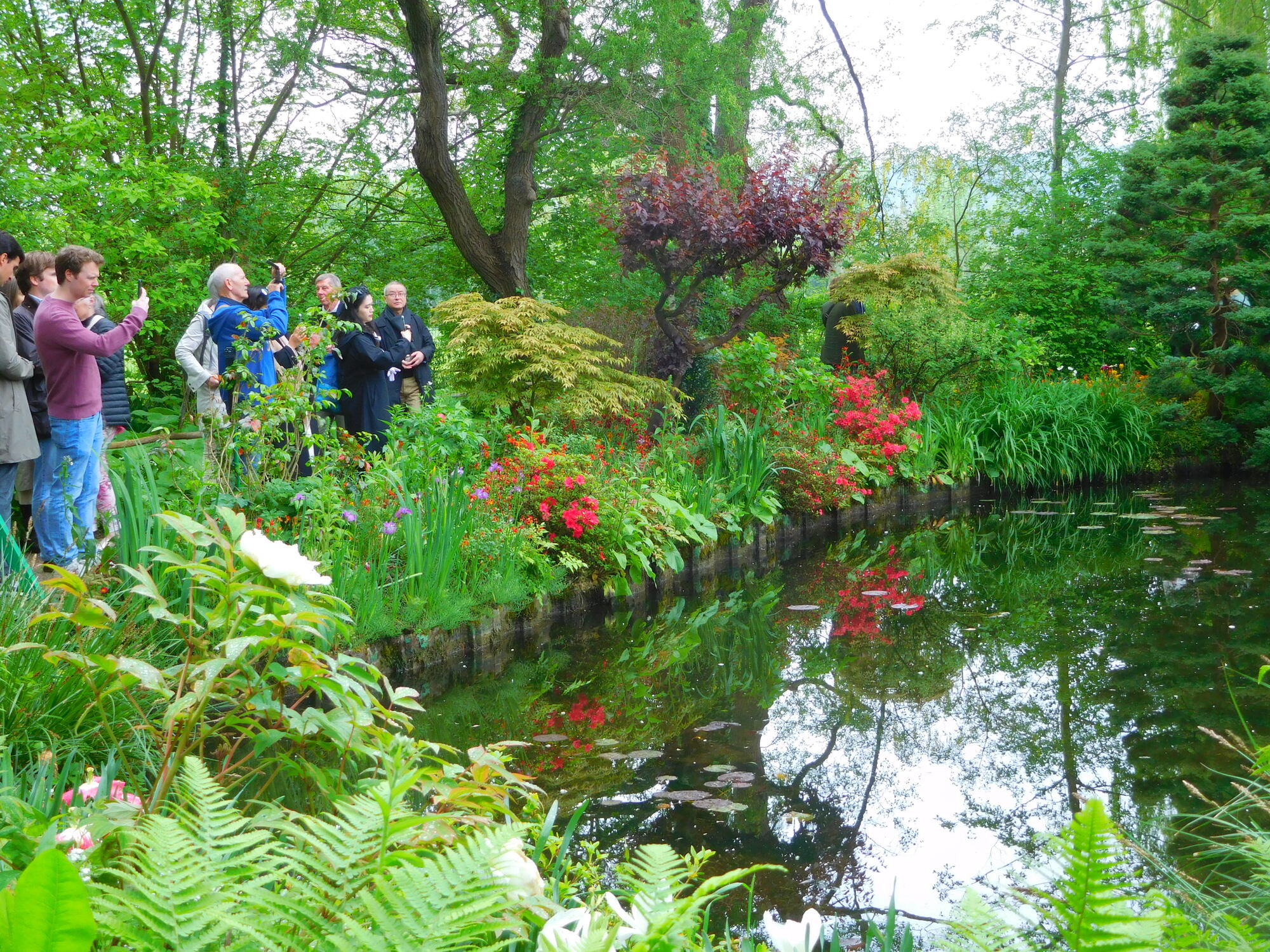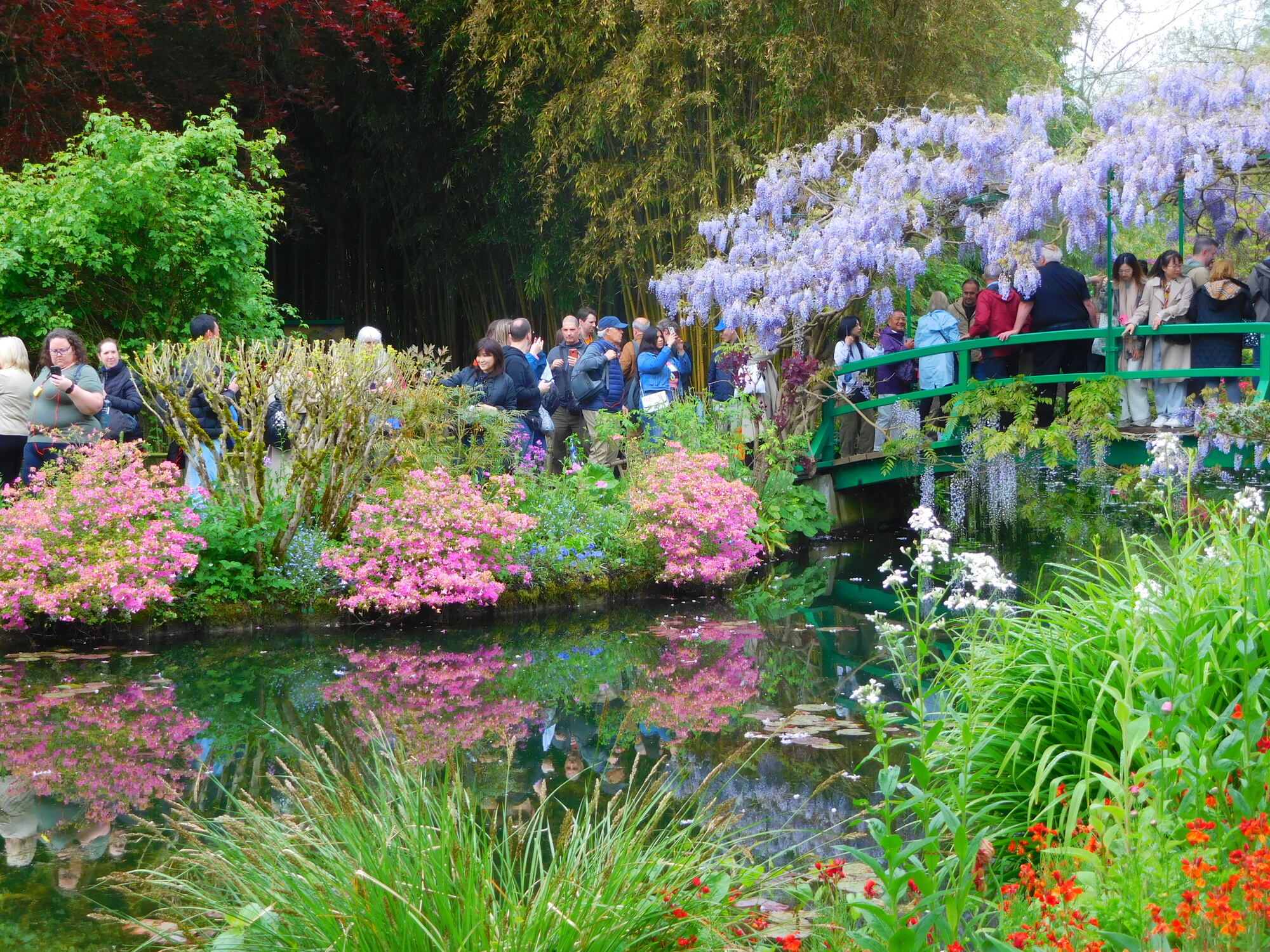 I came up with three or four lines of thinking. First off, Claude Monet created a very nice garden here. People like to see nice gardens in general, like our own Butchart Gardens back home. But Monet's little garden, nice as it may be, could not attract millions of people. However, Monet, an unbelievable genius, looked at his little garden and saw something extra in it. He then captured what he saw on canvas, and in a glorious and to most, understandable style. Monet's mind and skill transformed the little garden into a monumentally huge thing. Ok, but why are people (and why are we) here? The first reason is just to see the thing that Monet saw, that created the huge "thing". That would be like going to see the gas station that featured in the Canadian hit TV comedy "Corner Gas". The second reason is to see if, confronted by the same garden, we can manage to see it as Monet saw it. To do this, I found, you can try squinting. That can blur things into an "impressionistic" image. But the final thing is to try to use the camera, where Monet used paints, to capture the impressions. And this is huge. No one will come here without a camera. In our case, we pulled put our spare camera, to allow the more refined "impressionist" eye of Dodie to, like me, shoot about 50 shots per hour.