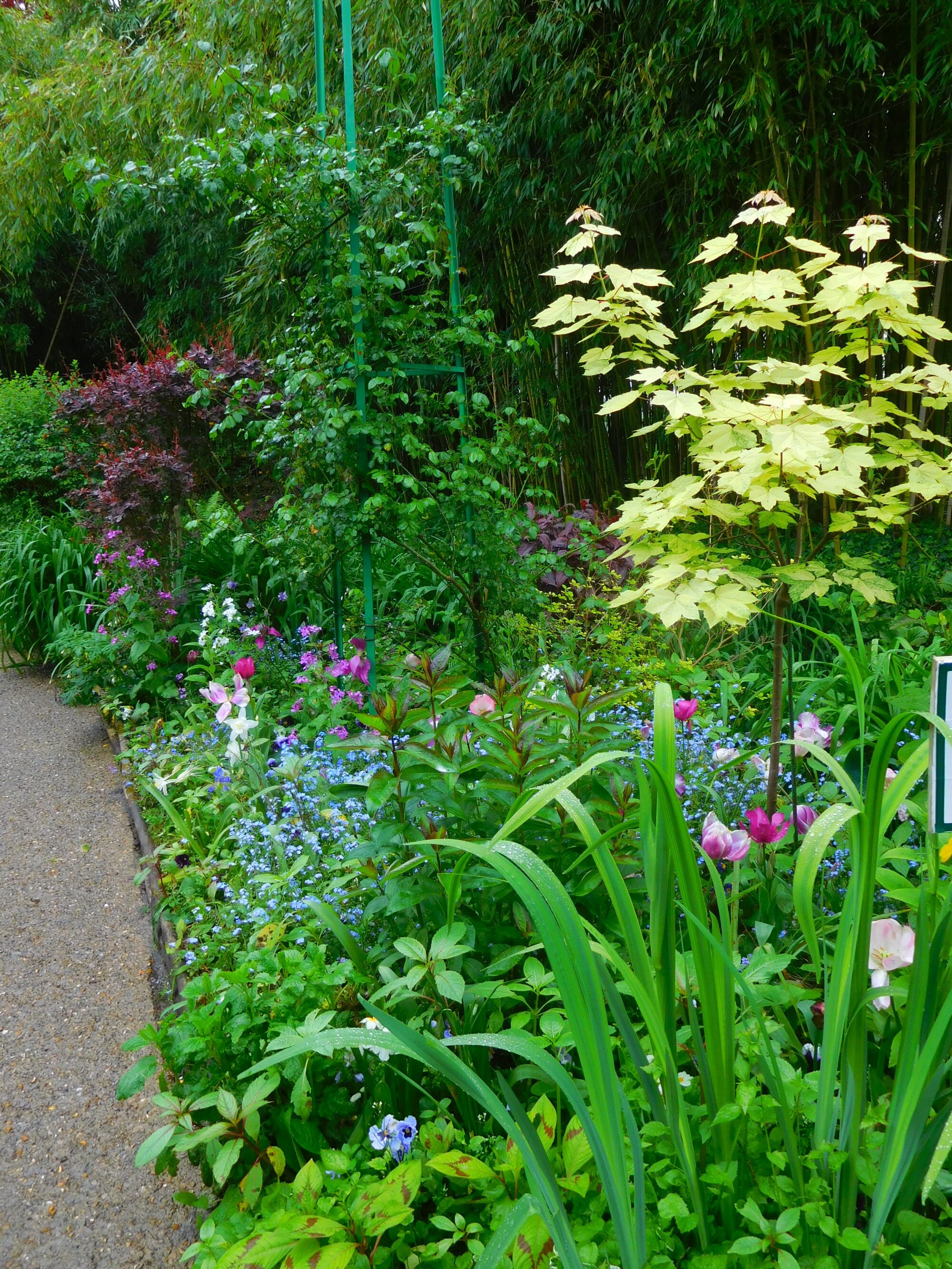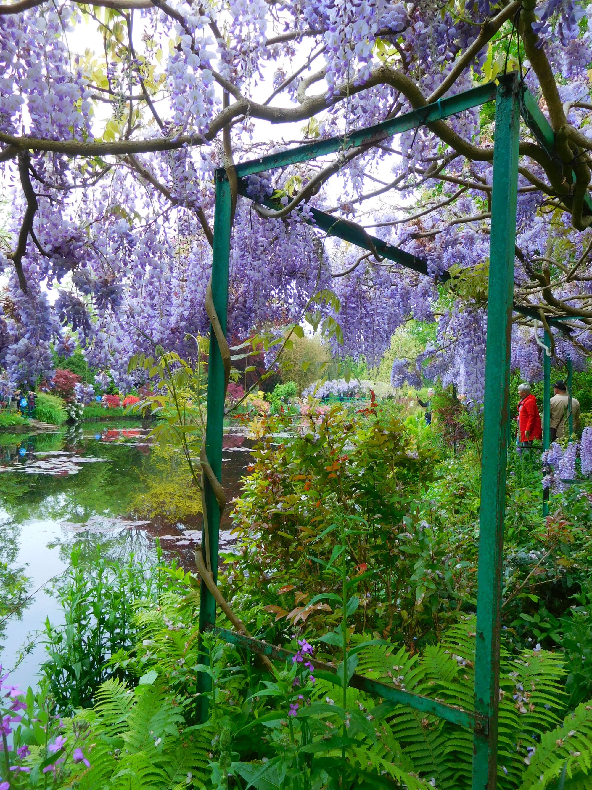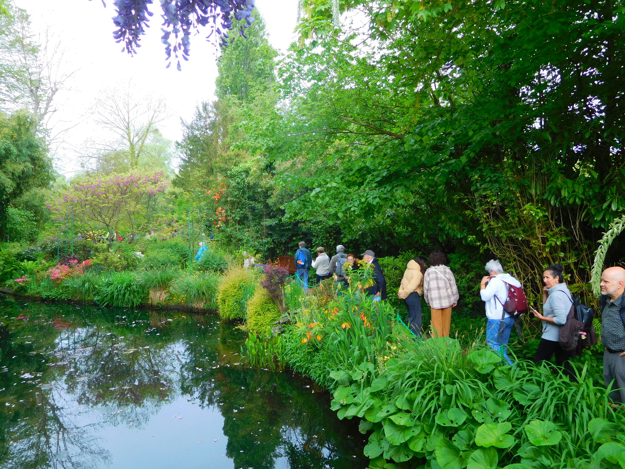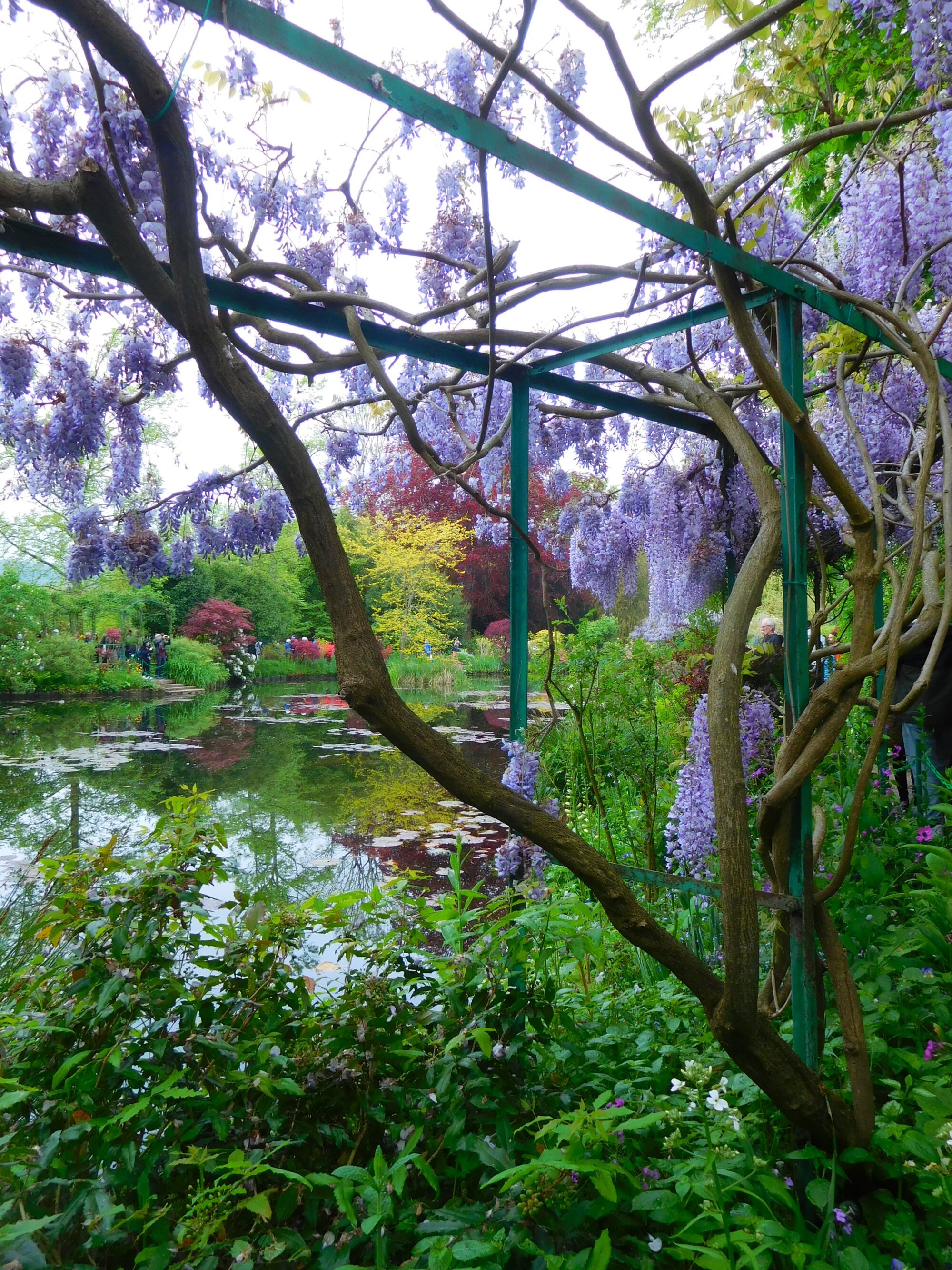 I came up with three or four lines of thinking. First off, Claude Monet created a very nice garden here. People like to see nice gardens in general, like our own Butchart Gardens back home. But Monet's little garden, nice as it may be, could not attract millions of people. However, Monet, an unbelievable genius, looked at his little garden and saw something extra in it. He then captured what he saw on canvas, and in a glorious and to most, understandable style. Monet's mind and skill transformed the little garden into a monumentally huge thing. Ok, but why are people (and why are we) here? The first reason is just to see the thing that Monet saw, that created the huge "thing". That would be like going to see the gas station that featured in the Canadian hit TV comedy "Corner Gas". The second reason is to see if, confronted by the same garden, we can manage to see it as Monet saw it. To do this, I found, you can try squinting. That can blur things into an "impressionistic" image. But the final thing is to try to use the camera, where Monet used paints, to capture the impressions. And this is huge. No one will come here without a camera. In our case, we pulled put our spare camera, to allow the more refined "impressionist" eye of Dodie to, like me, shoot about 50 shots per hour.