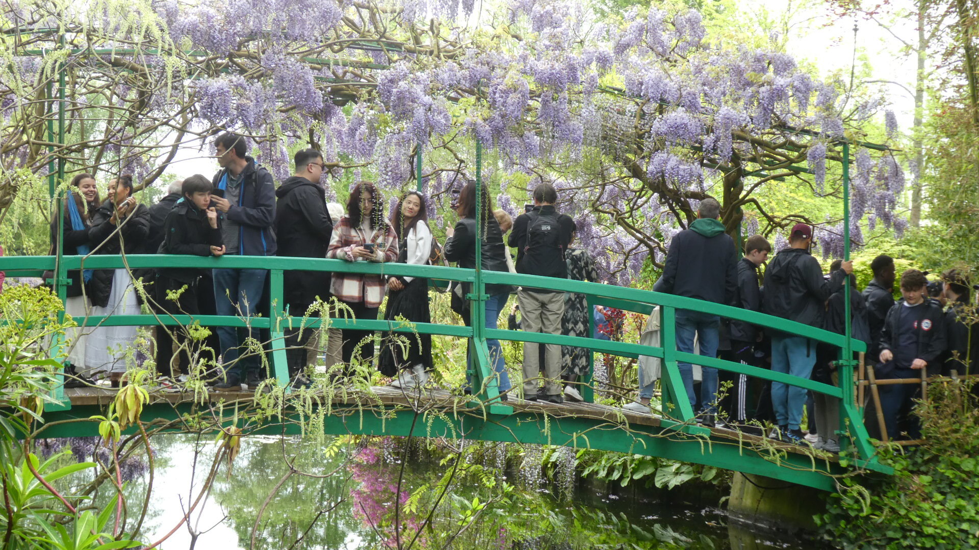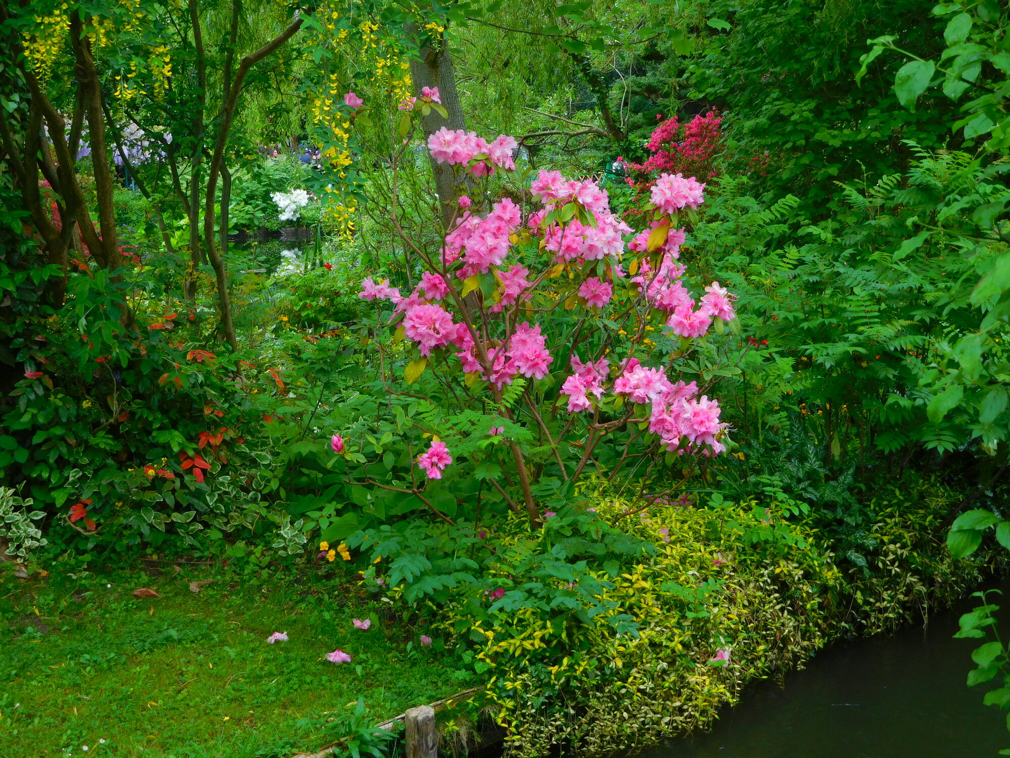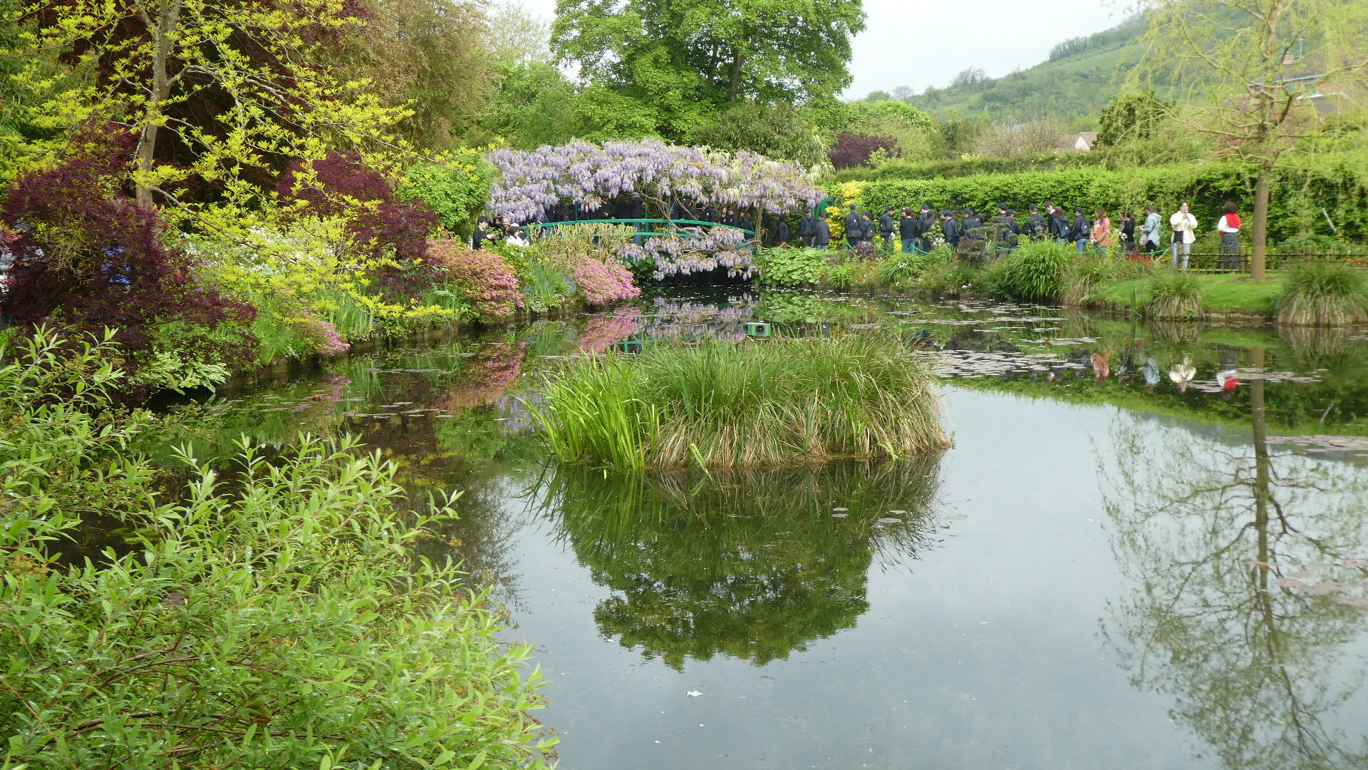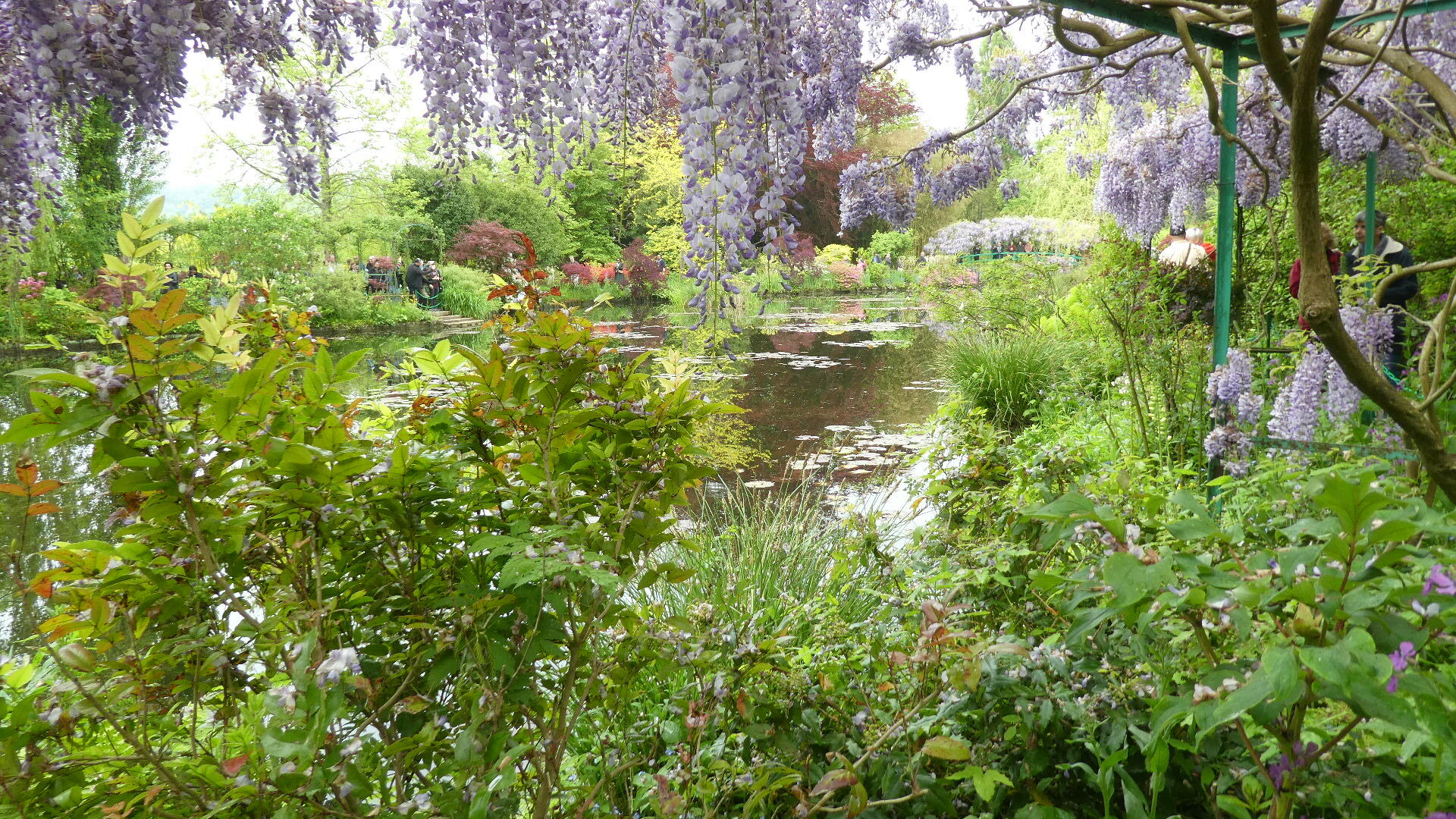 I came up with three or four lines of thinking. First off, Claude Monet created a very nice garden here. People like to see nice gardens in general, like our own Butchart Gardens back home. But Monet's little garden, nice as it may be, could not attract millions of people. However, Monet, an unbelievable genius, looked at his little garden and saw something extra in it. He then captured what he saw on canvas, and in a glorious and to most, understandable style. Monet's mind and skill transformed the little garden into a monumentally huge thing. Ok, but why are people (and why are we) here? The first reason is just to see the thing that Monet saw, that created the huge "thing". That would be like going to see the gas station that featured in the Canadian hit TV comedy "Corner Gas". The second reason is to see if, confronted by the same garden, we can manage to see it as Monet saw it. To do this, I found, you can try squinting. That can blur things into an "impressionistic" image. But the final thing is to try to use the camera, where Monet used paints, to capture the impressions. And this is huge. No one will come here without a camera. In our case, we pulled put our spare camera, to allow the more refined "impressionist" eye of Dodie to, like me, shoot about 50 shots per hour.