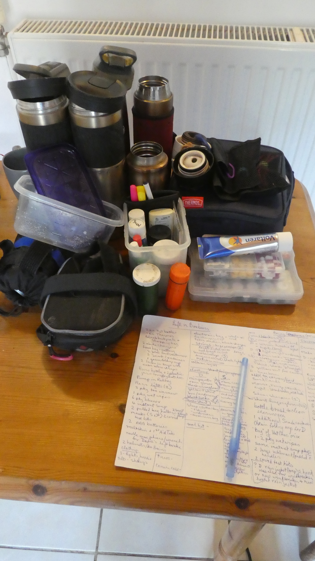 Those who know that Dodie and I do everything together, may wonder where she was during all this bicycle tomfoolery. Dodie does not like mechanical details, so she was glad to be inside. And I do not like what she was doing - meticulously sorting and listing little bits of gear. Do we need one tube of sunscreen or two, and which should we leave here with the bikes? Who cares!