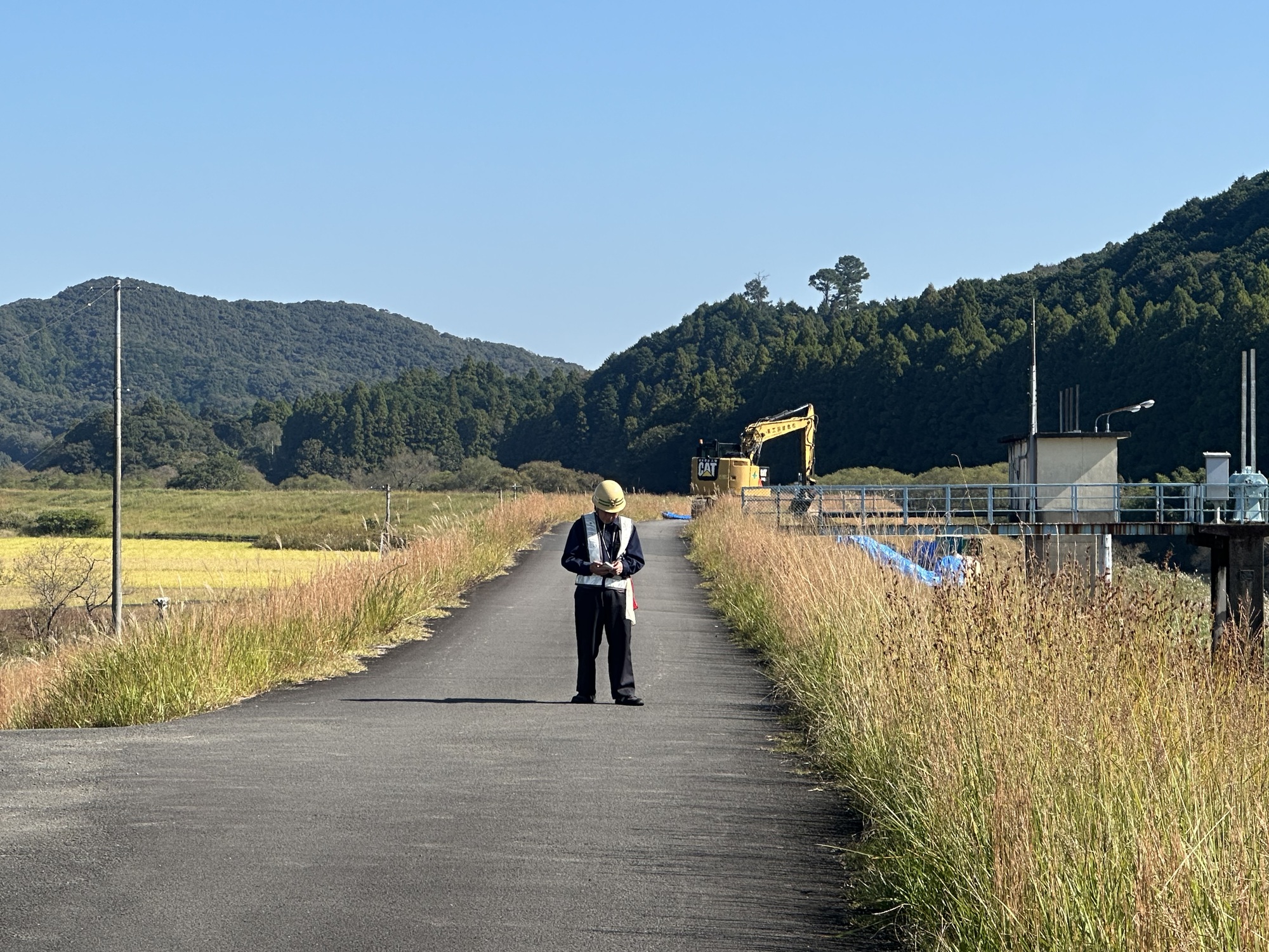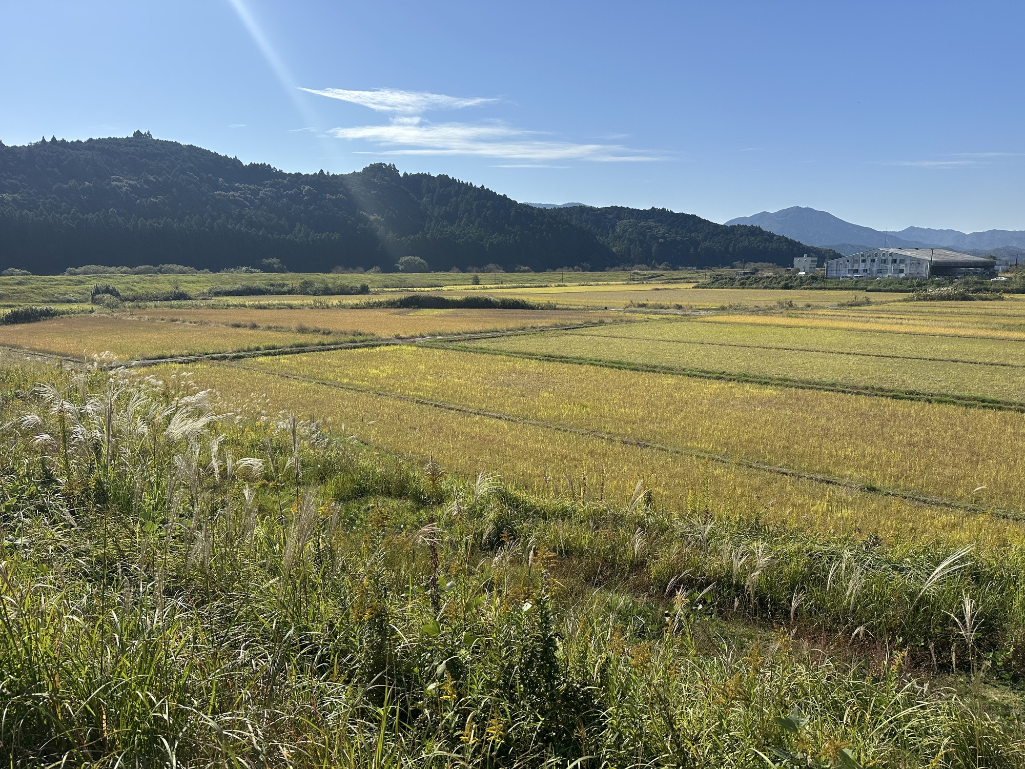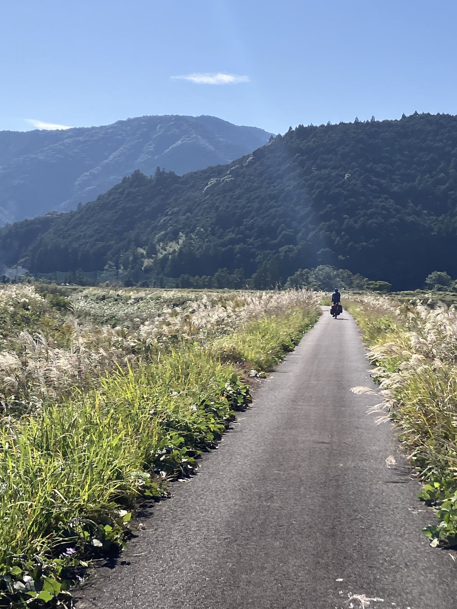 We spent much of the morning zig-zagging through farmland on dike-top paths. Since the rice paddies are laced with canals, every so often our path would take a sharp turn, following the edge of a canal until we crossed a bridge and followed the canal up the opposite side. It was quiet and sunshiny and flat, but not a terribly efficient way of getting anywhere.