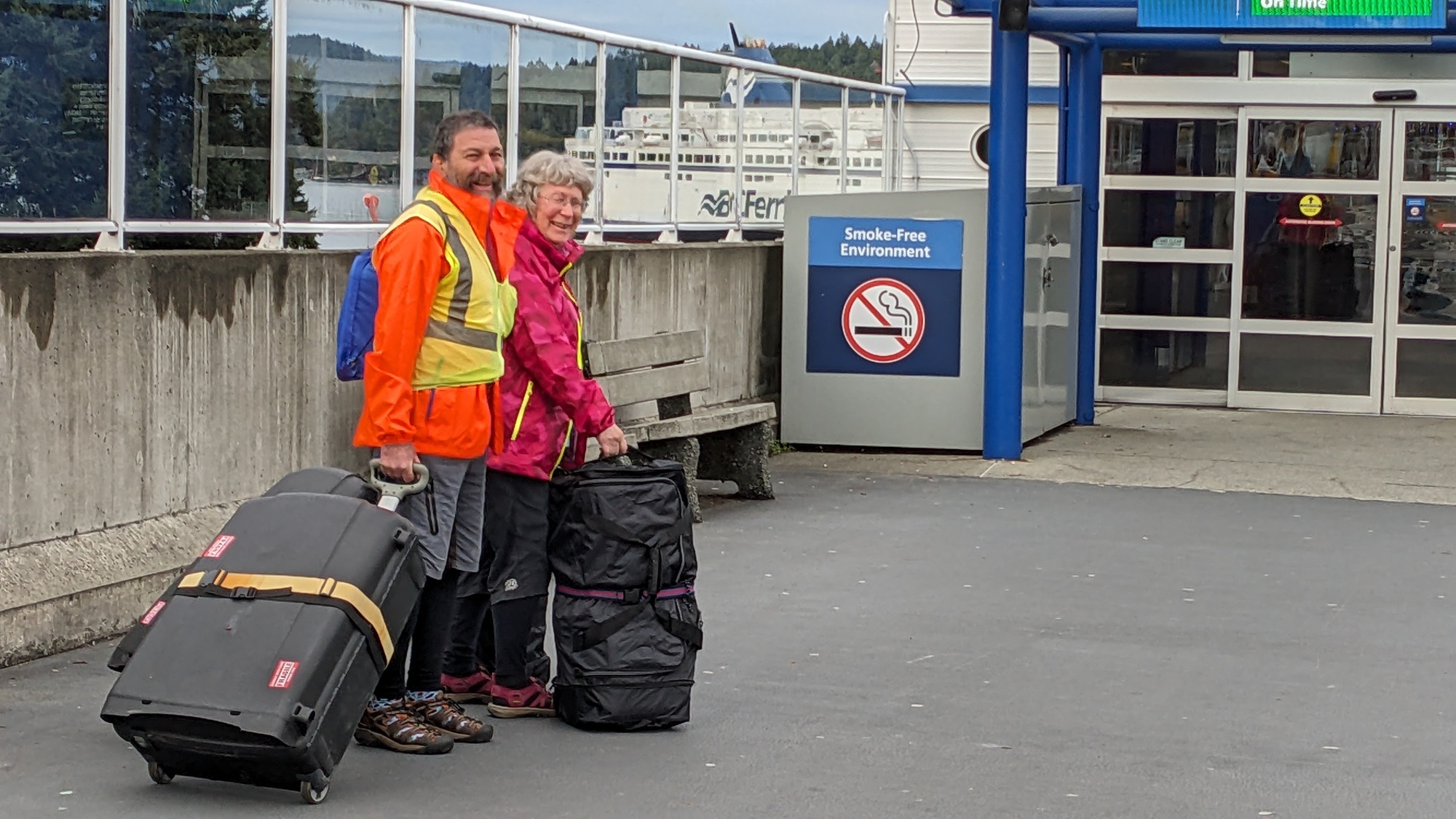 A while back we joined our friends Sue and Jim Price in Chemainus, which lies midway between where we live and their place in Nanaimo. At our favourite Willow Street Cafe, we were lamenting the difficulty of getting from home to any local airport or ferry terminal. They are all far away, and they do not really have long term parking, at least not at anything like a reasonable cost. The Price's, bless them, responded by offering to drop us at the ferry, this time anyway, and then to collect us again after the trip. What's more, they wrote us a couple of days ago, to make sure we still remembered the arrangement. Did we remember the arrangement? Getting to and from the starting line is almost the most memorable part of these trips!