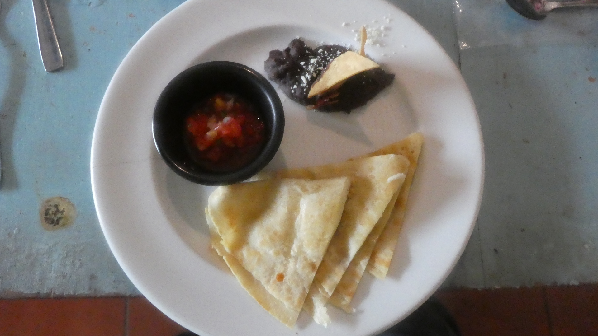 After the freezing night, a good breakfast would have been nice. But what we had was the included breakfast of our humble (but not cheap) hotel. It featured the smallest dollop of refried beans we have ever seen. But actually, for a non cycling day, it was fine.