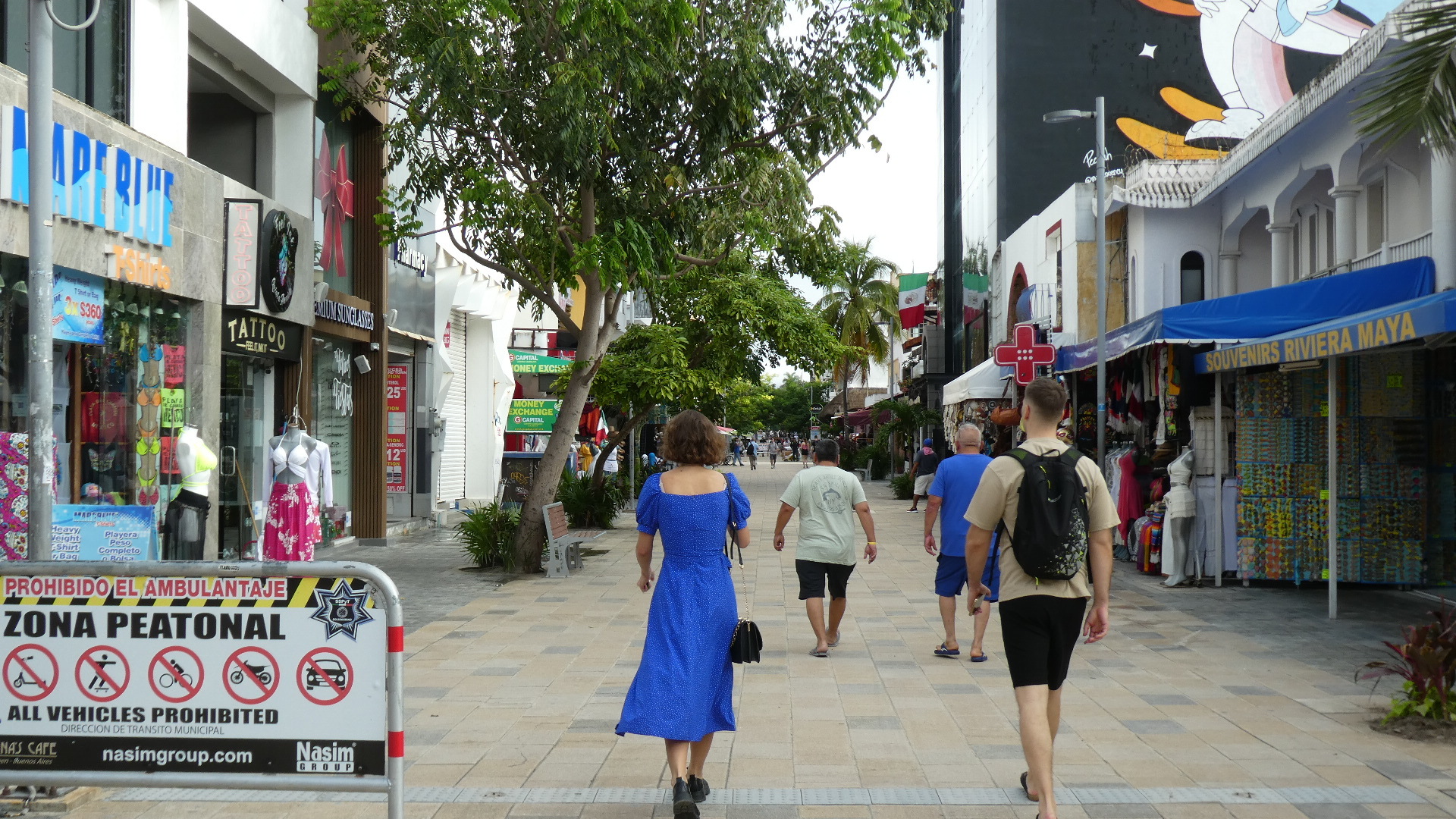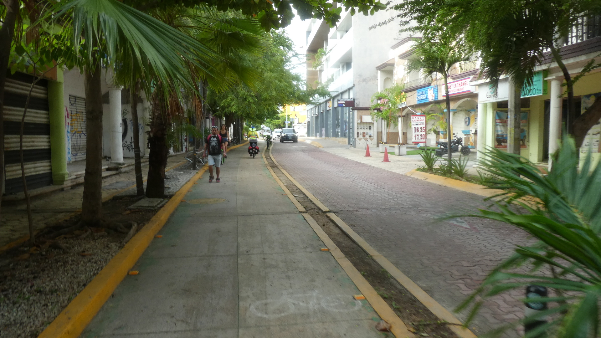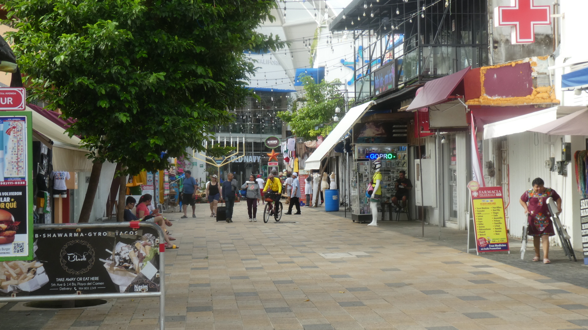Today was our day to check out the bikes and to pedal around Playa. We set off on one of the avenues leading to the Cozumel ferry terminal, in an area which is the de facto centre of town. At this point we were in the upscale touristy part of town, but it still has the charm that comes from the tropical foliage, and many locally owned small businesses. Just a short distance from here we would enter the even more charming larger area of the town, featuring even more and smaller businesses, pavement a little more broken, and ok! birds on the wires. But for now, it looks like this: