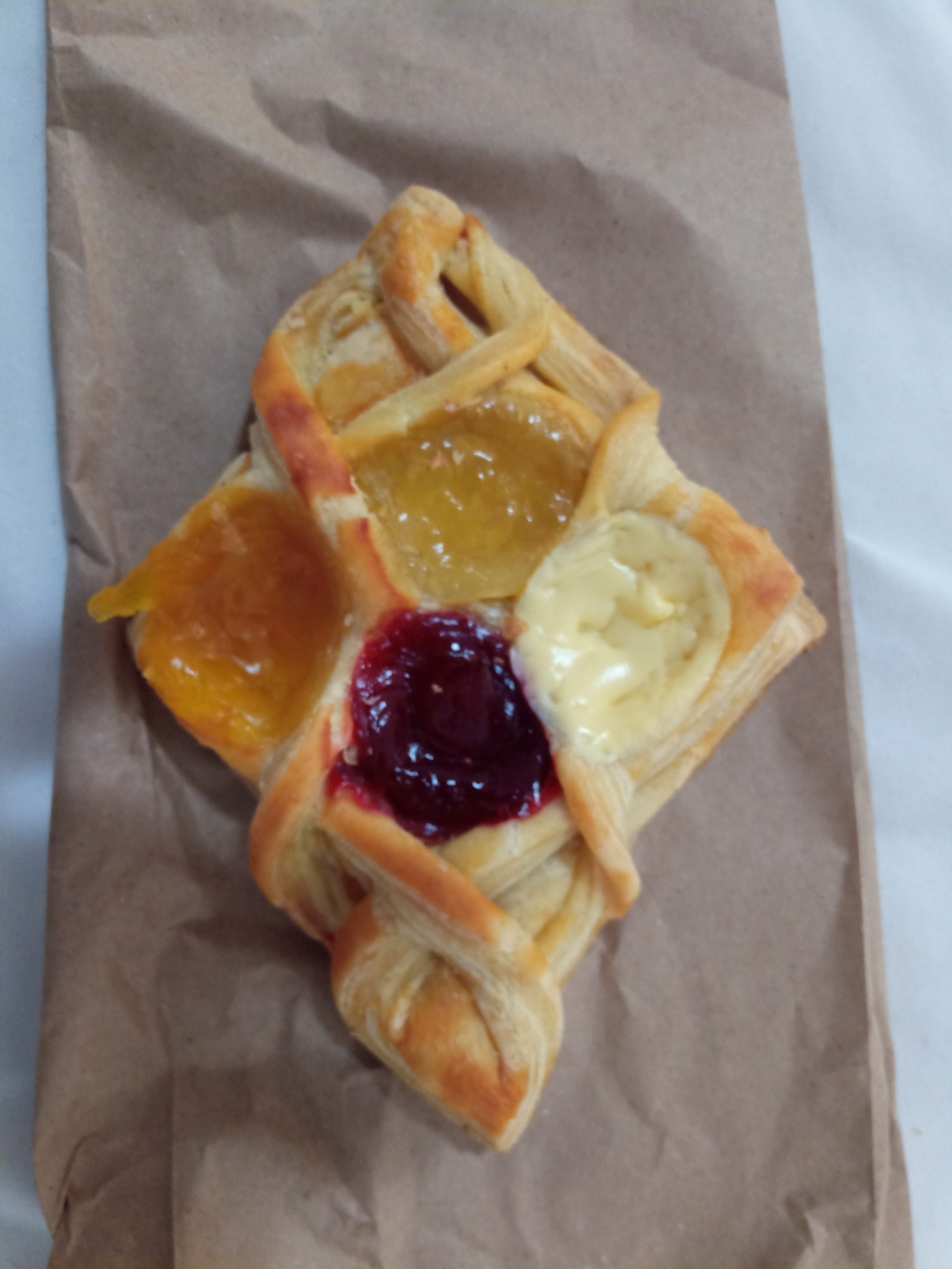 Of course, neither of the items was remotely French, but guess what - both were excellent on their own terms. The "croissants" were filled with really a lot of Nutella, and were good, though of course no butter had been invested in their creation. And the tartelettes, I am still trying to get a grip on - sort of cheescake on top and jam below, with a very nice crust. We would call it all a success.