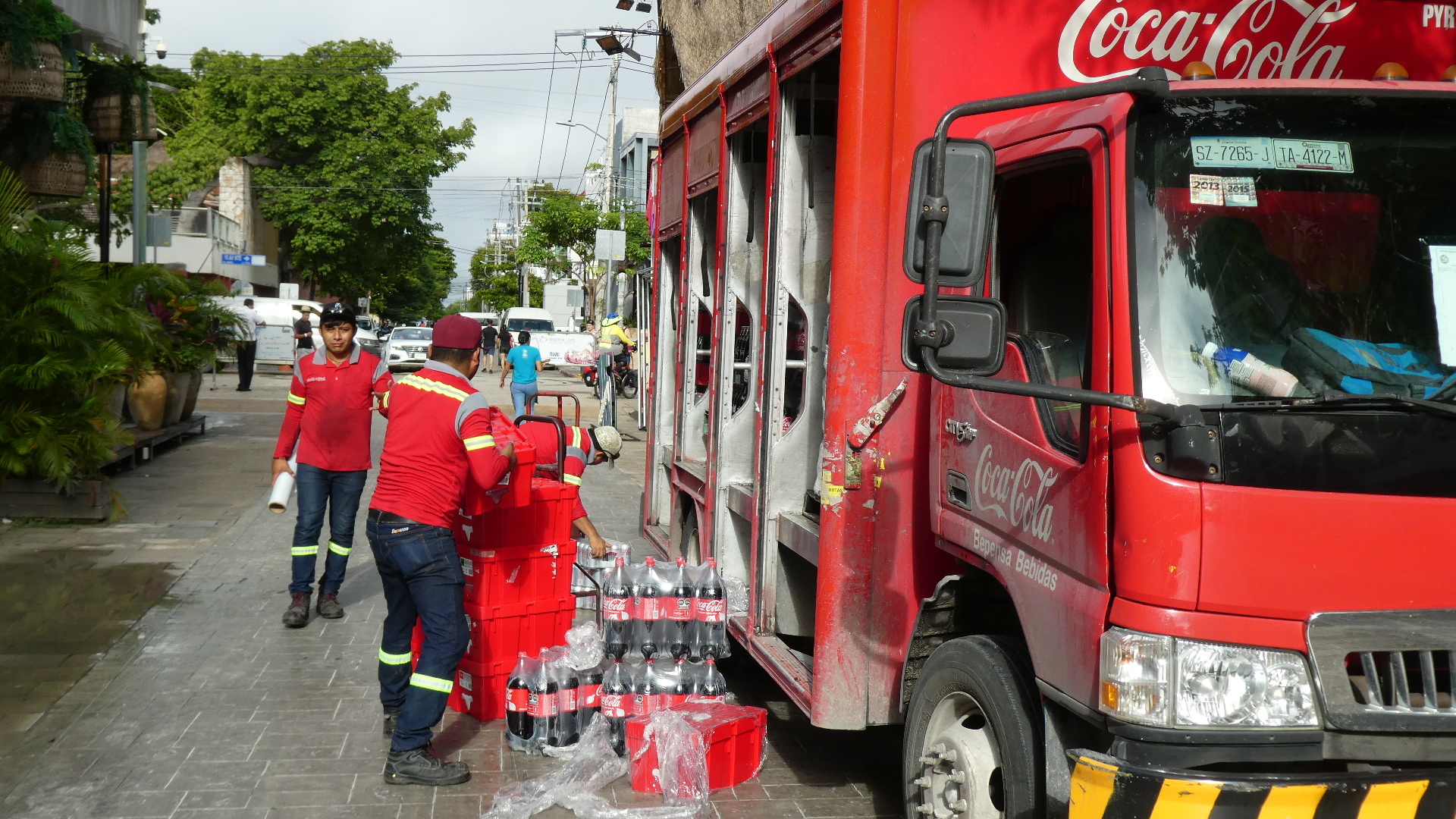 I think in less developed countries individuals struggle to find a place and a living, somewhat above the level of the impoverished masses. When they do that, a uniform helps to establish their status. So here below we have a Coca Cola delivery team, in red.