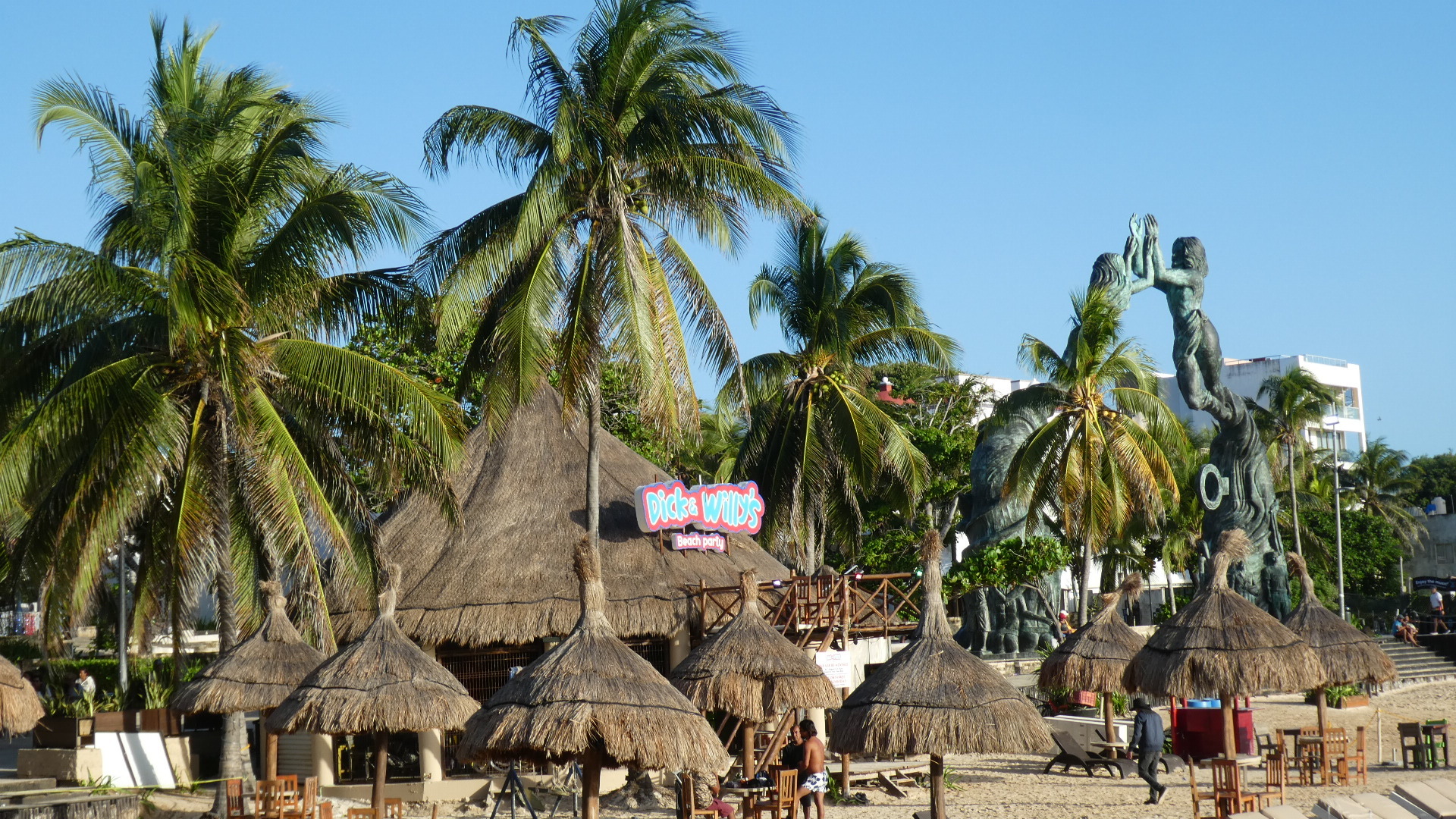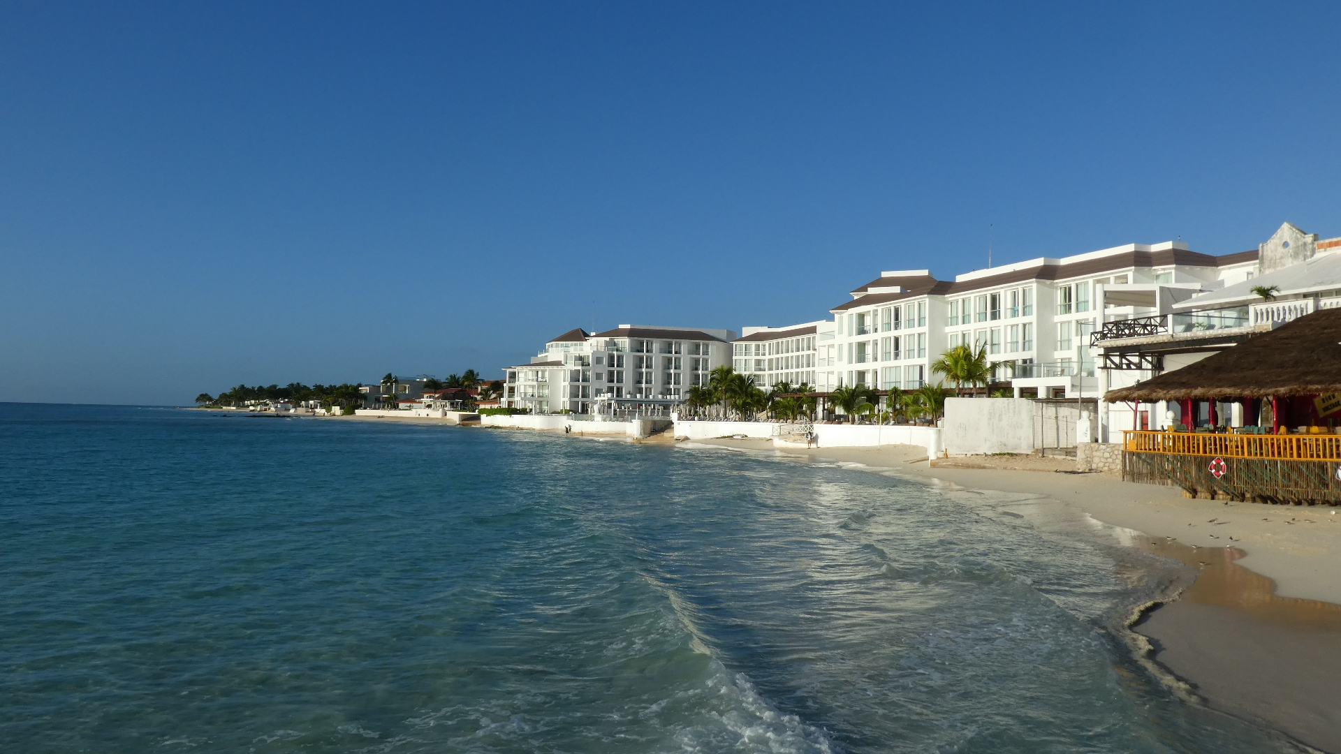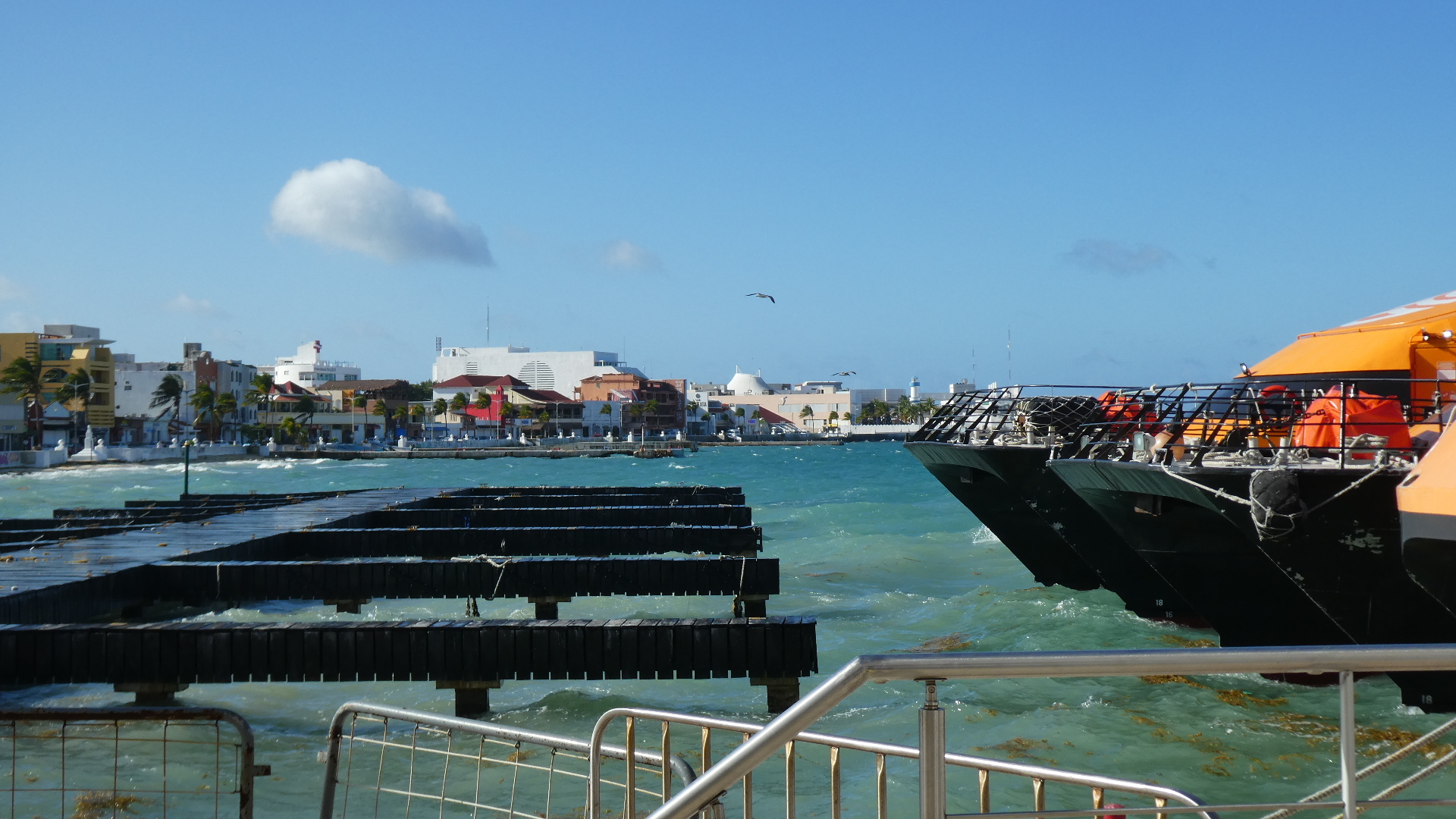 `We were glad of the meagre breakfast offered as always by the hotel, because we knew the ferry ride to Cozumel is always rather rough. We cruised over to the ferry dock and admired the various views of beach and water side development in that key area.