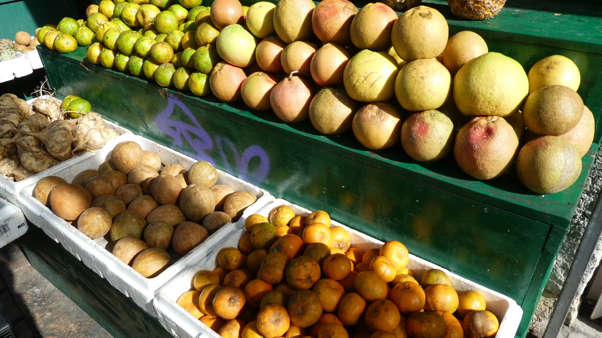 We didn't take time for a real cruise around the market, but rather just ran it buy some fruit and take a few pictures. Fruit here is just as it comes from the trees - not polished or sorted or graded. But it looked pretty good here, certainly better than at a supermarket we visited later.