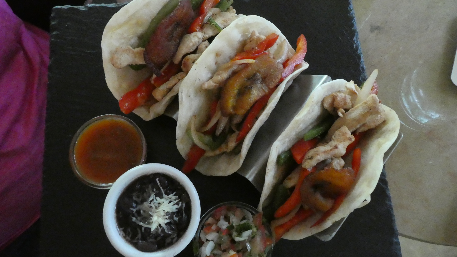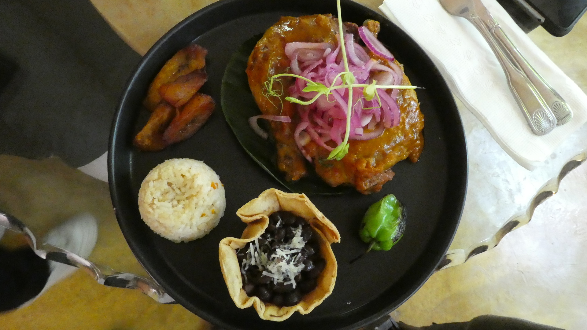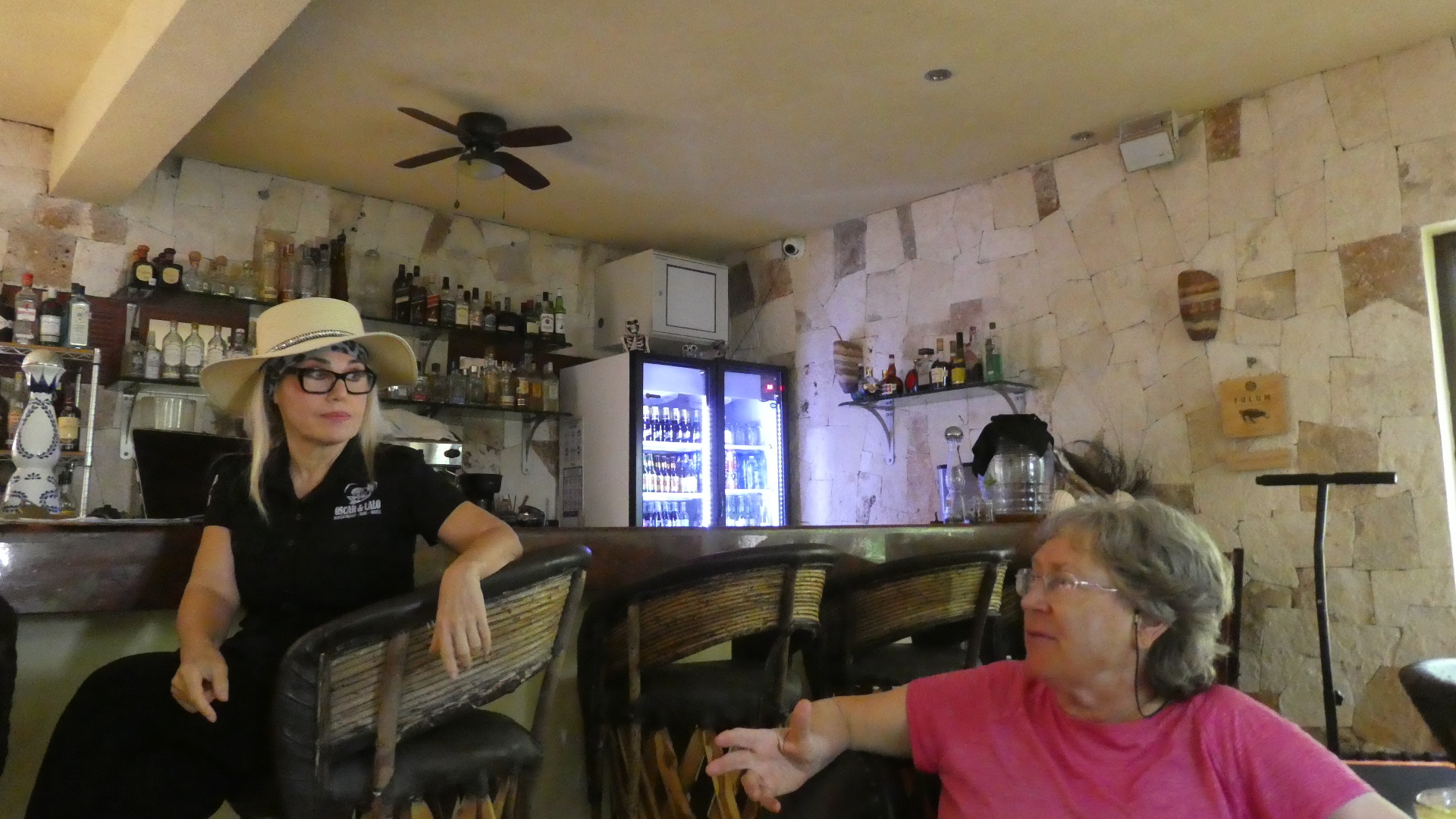 Looking only briefly at the menu, I asked if she had Poc Chuc. I was surprised to find that she had basically never heard of it. This makes a little sense, because Poc Chuc is a Yucatan and Mayan dish and though we are on the Yucatan Peninsula, we are in the state of Quintana Roo, and not Yucatan itself. However, Virginia went and dragged out the (Mayan) cook, who affirmed that he knew Poc Chuc well, but lacked the pork right now to make it for us. So I went instead with something that was on the menu, Yucatan Chicken, while Dodie chose chicken tacos. Within their categories, these turned out to be the best we had ever had. For my part, I would say it was the best chicken dish ever - so flavourful, moist, and tender!