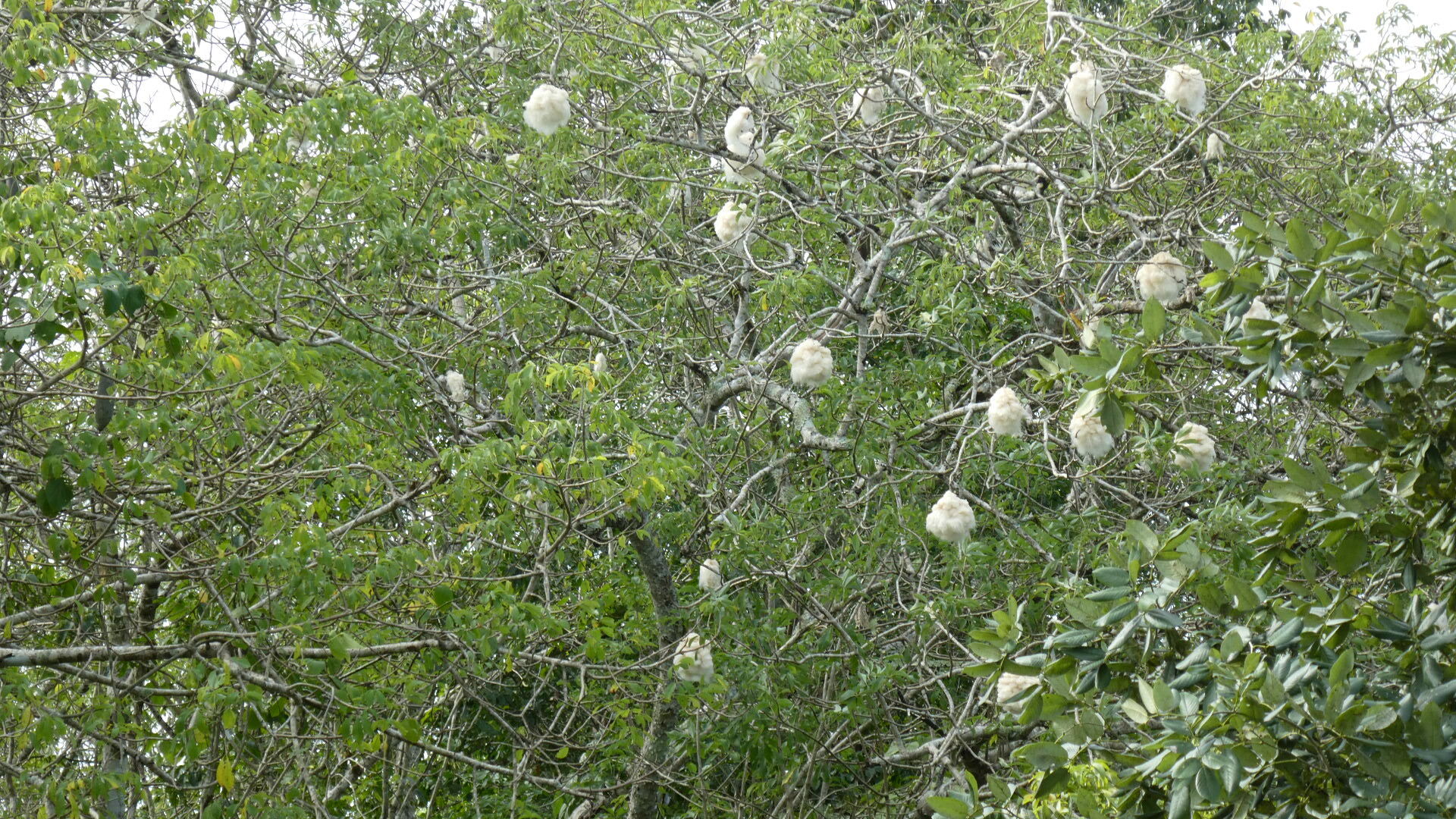 Here is another neat tree, below. It's not a Ceiba (Kapok), based ont he trunk, but it still has a fluff ball pod.
