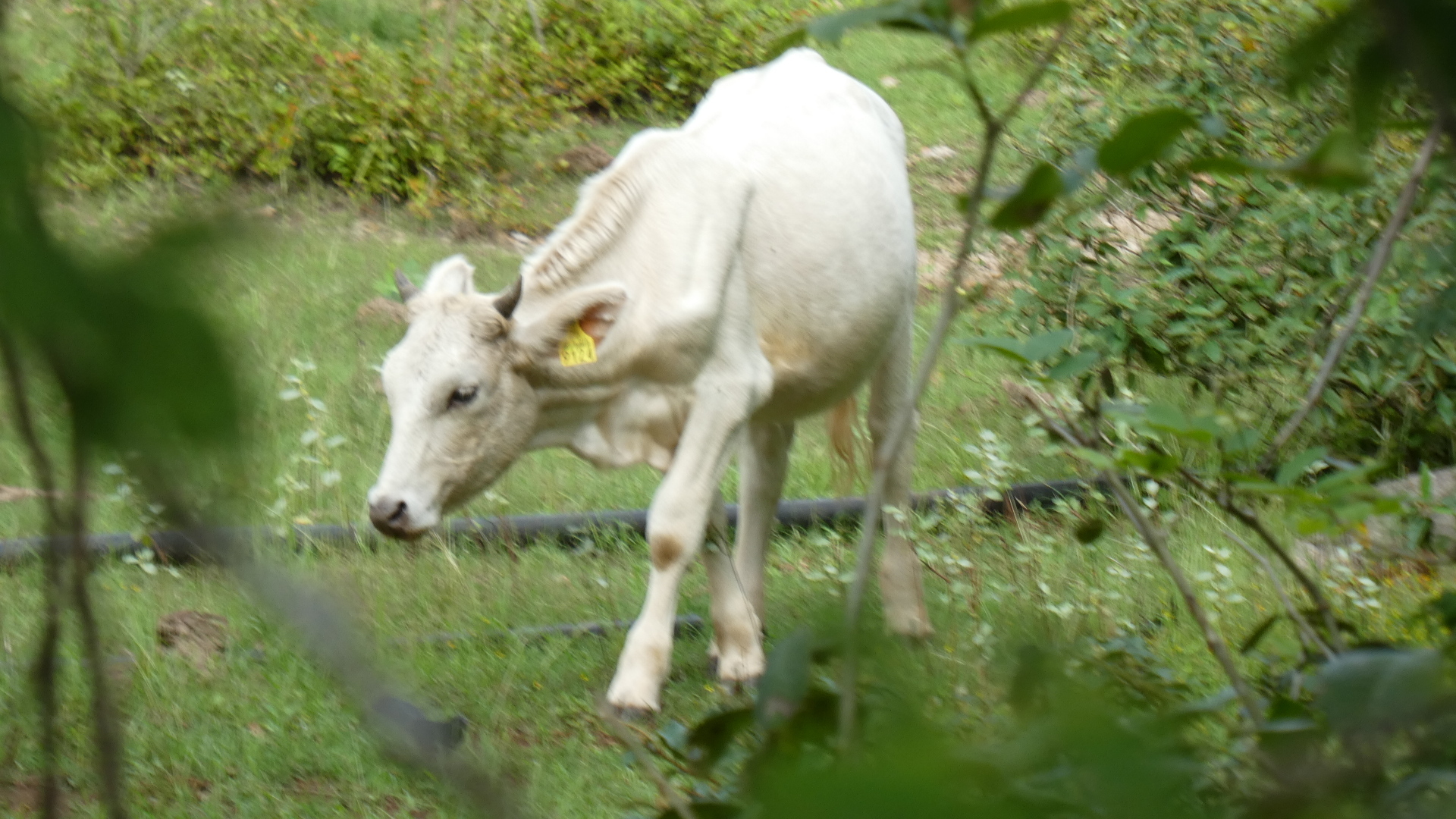 We know that there is cattle country somewhere north of here, but so far we had only run into a few, white cows. The one below seems darn skinny, as well. We also encountered a literal cow boy - a young fellow on a horse. He stopped to pose for us and gave a nice greeting.