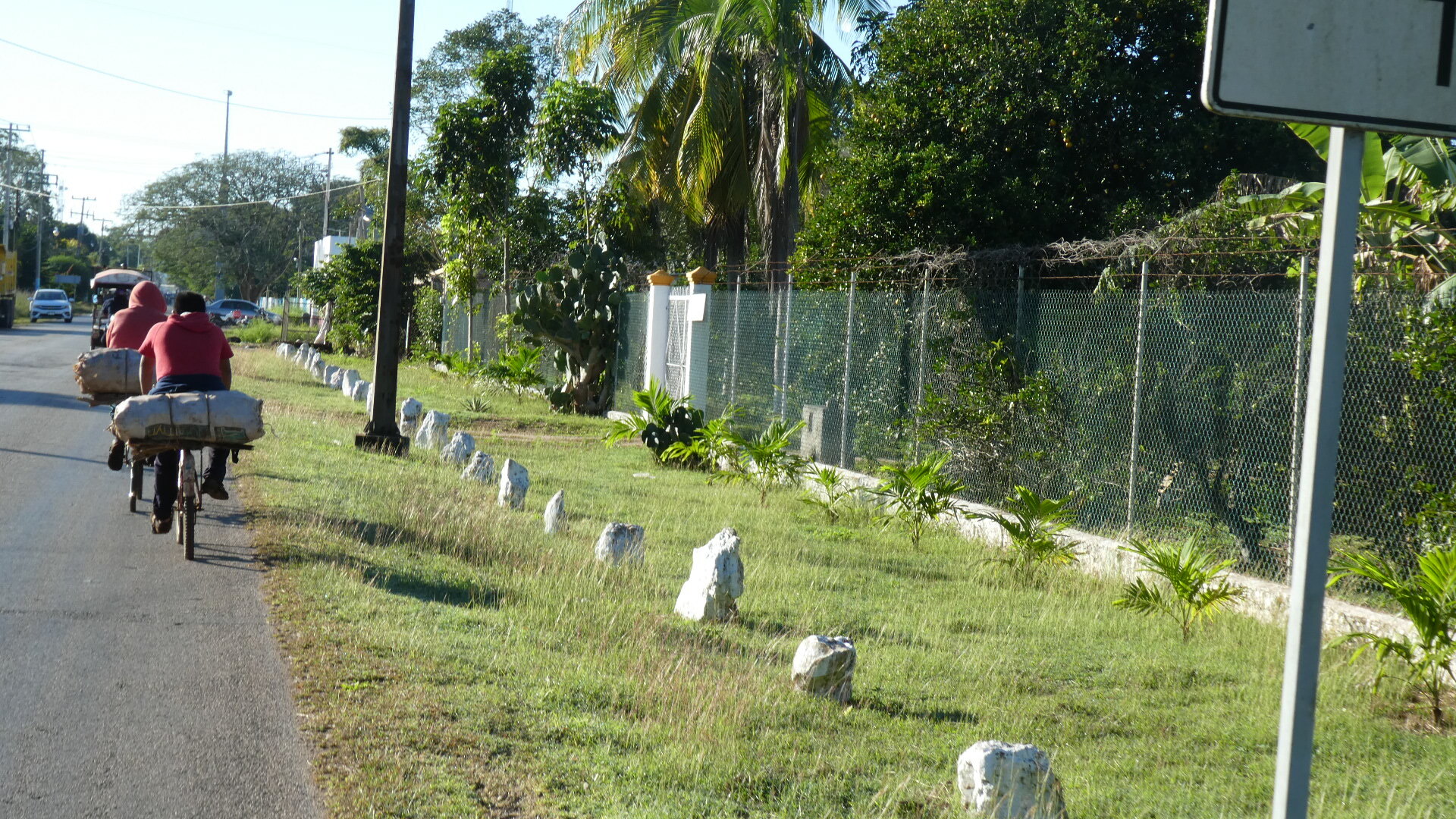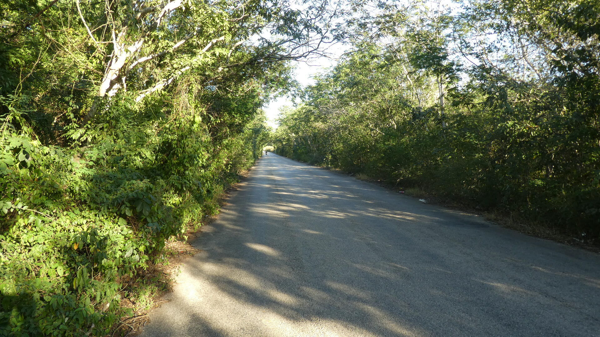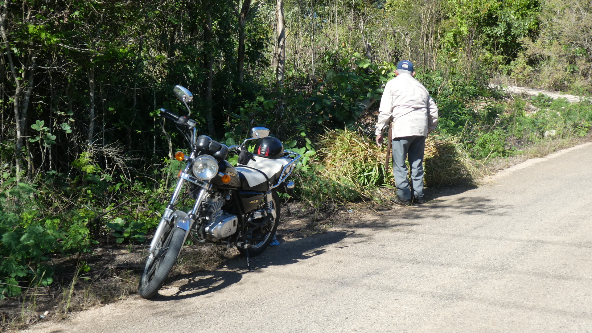 We set off back toward Sacalum. As we often see, here is someone - in this case a quite old guy - with a machete, cutting green by the roadsides. He is going to load it on his moto, meaning that he is a good rider even if he seems quite old. We have no idea what the purpose of these greens is.