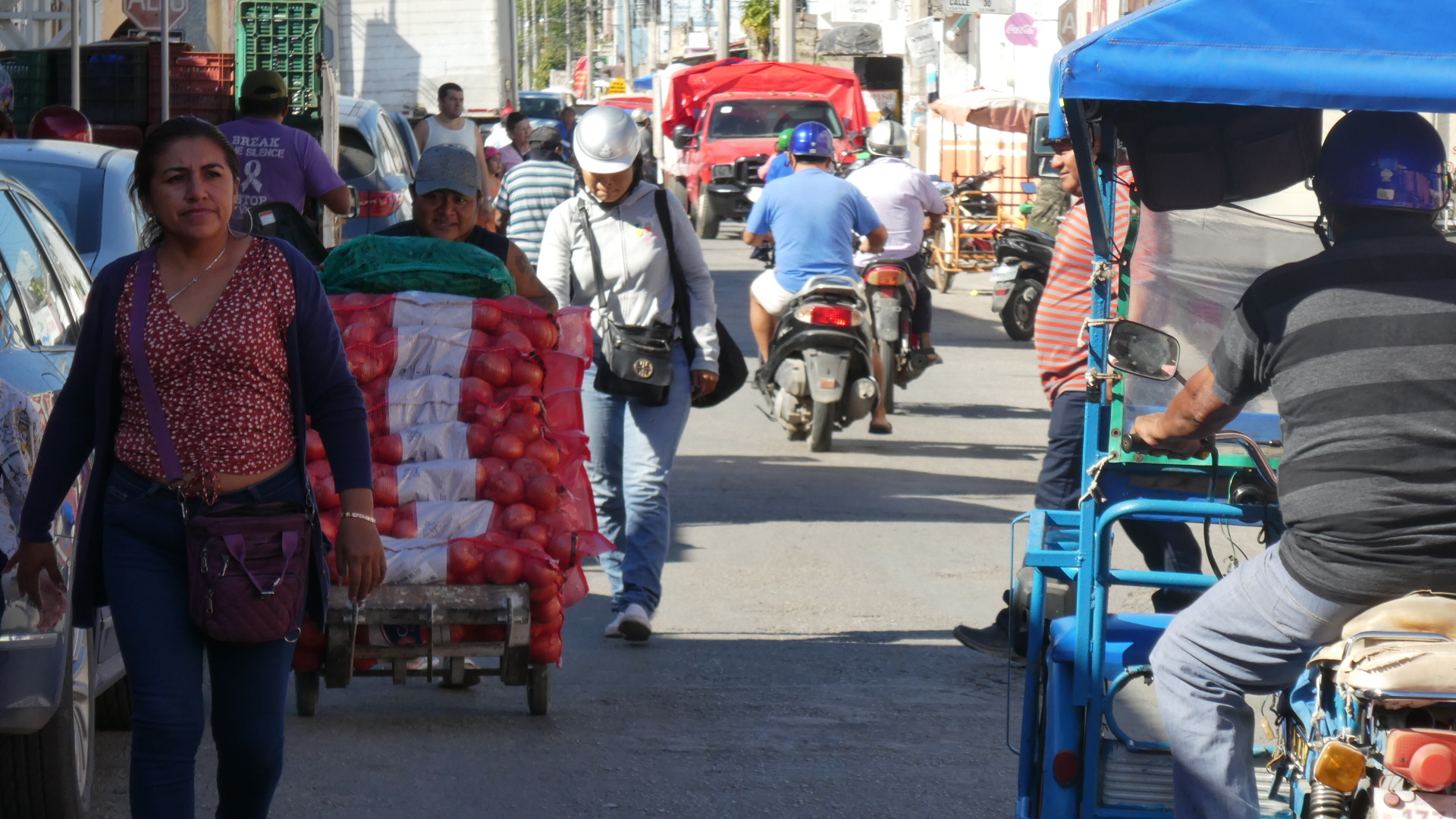 Back in the street, it was necessary to dodge the oncoming onions.