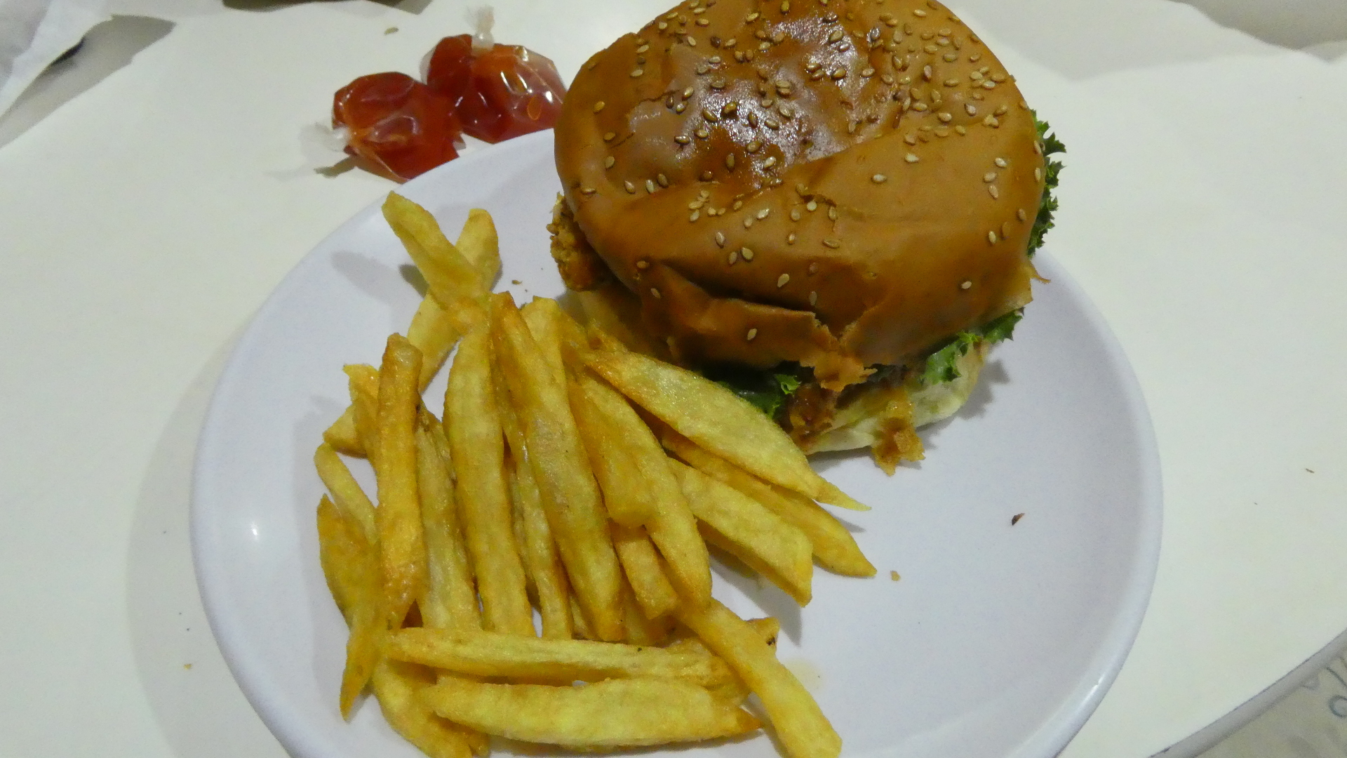 At the restaurant I was again proud of myself for understanding a pathetic short list of concepts: The burgers come with fries, no need to order them separately, the order will be ready in 30 minutes, and its ok to pay now or pay later.