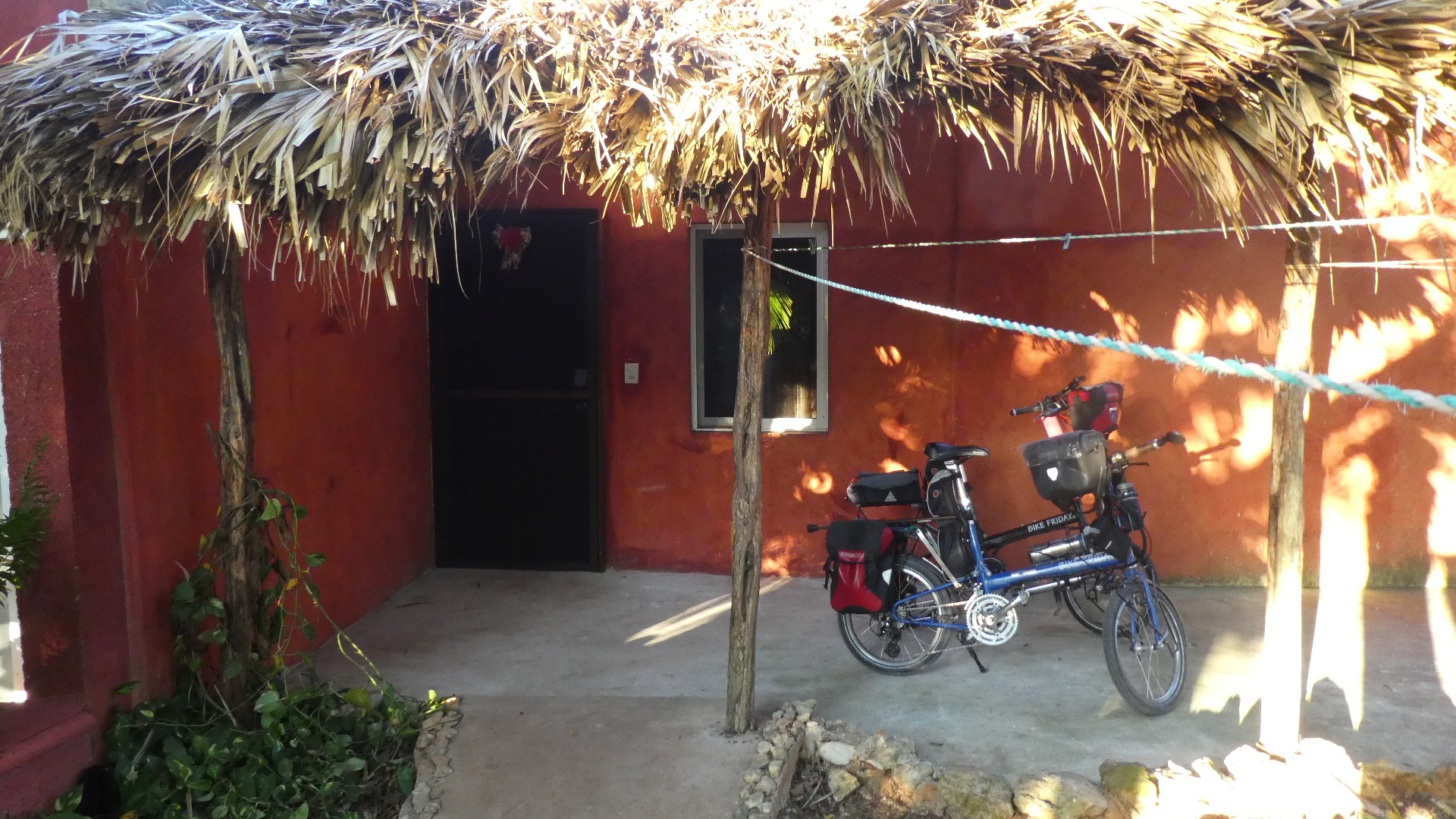 We do very much like the place, including the shady concrete spot by the door. This is great for working on the bikes.