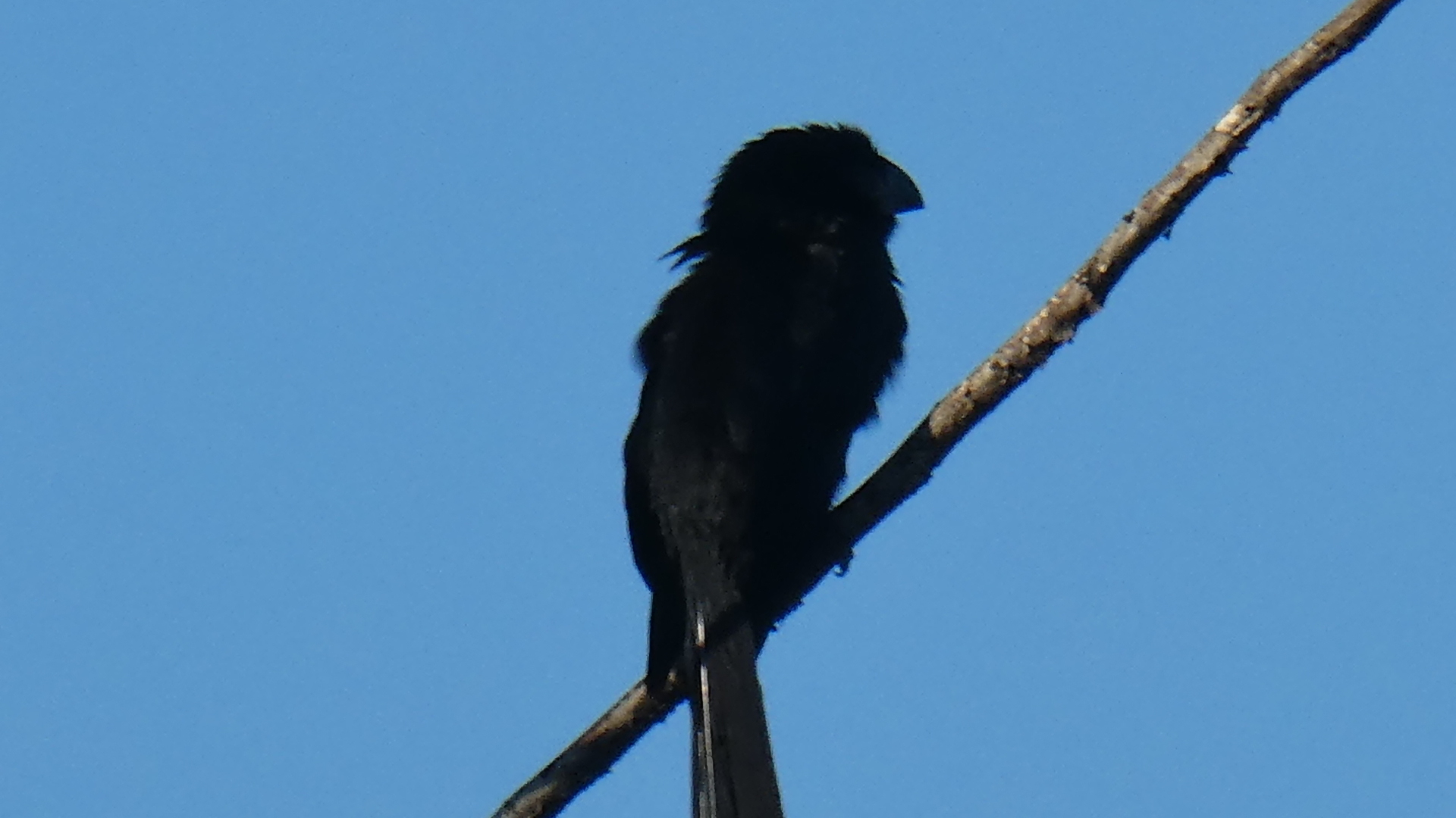 The sun was directly facing us and it was backlighting any birds that we saw, such as this Groove Billed Ani.