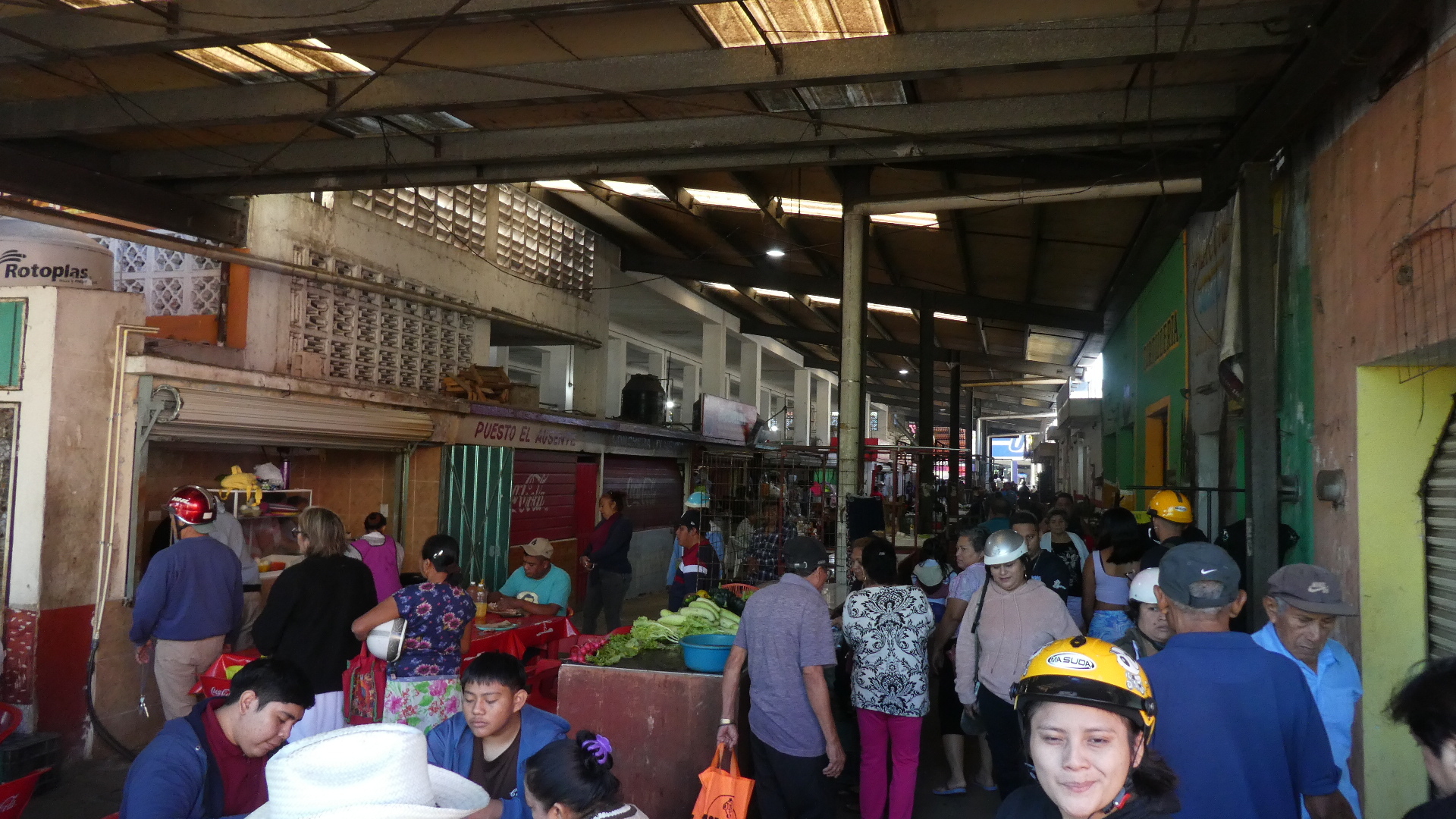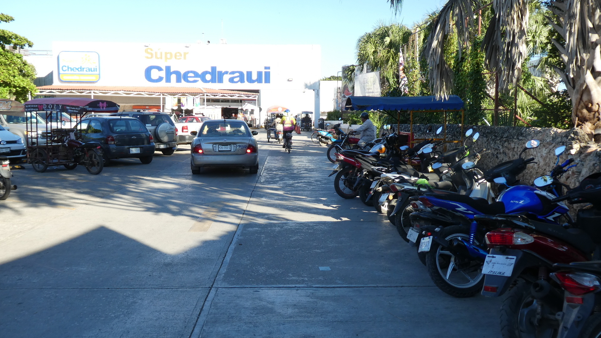 Just opposite the market building there is a Chedraui supermarket. We made this our first stop, and I got parked with the many motos, while Dodie went to see what was on offer.
