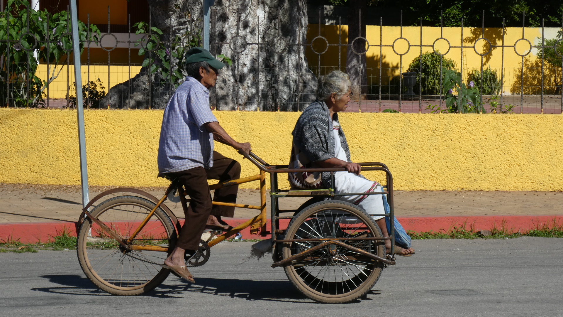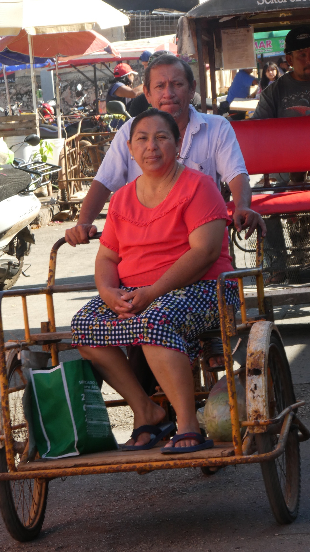 In the street I noticed a lot of cases of older ladies coming along seated in the trike taxis. You don't see them on their own bikes, but you sure see them out and about like this.