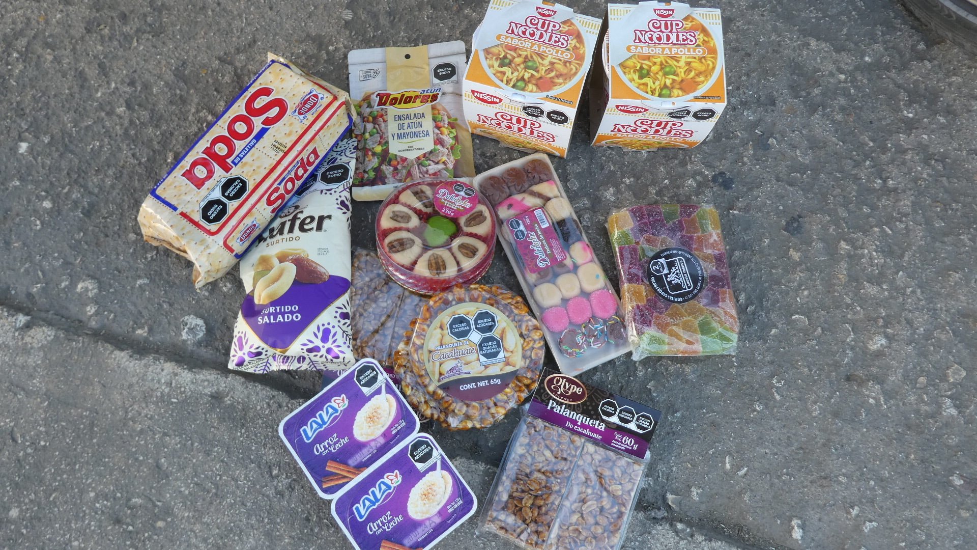 Dodie came back with a much higher grade of junk food than I had been able to find at Super Willys, in Sacalum. Here is her haul: