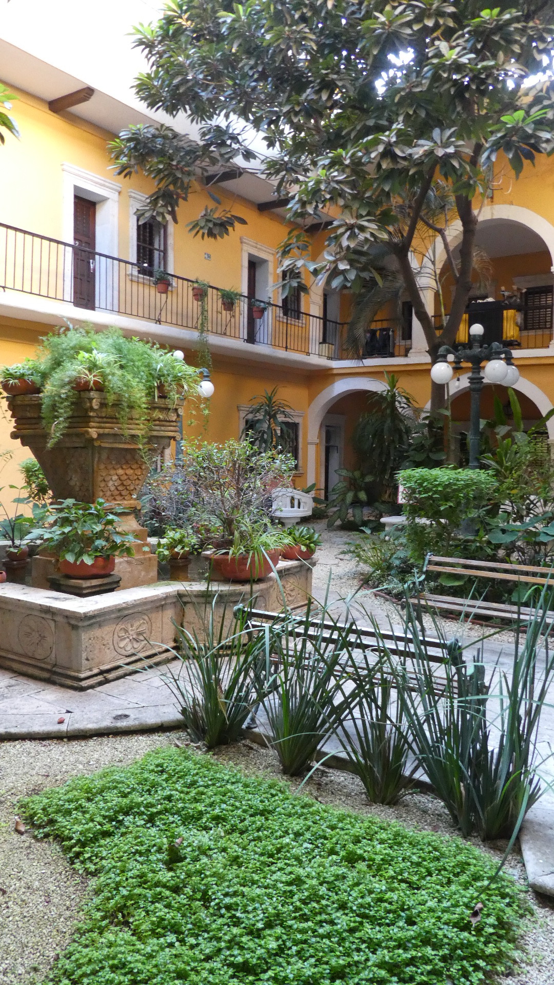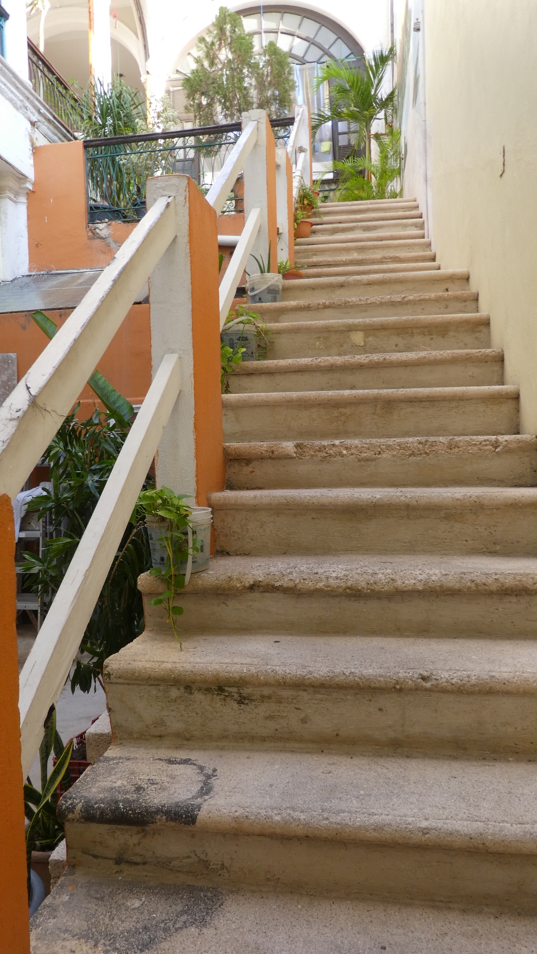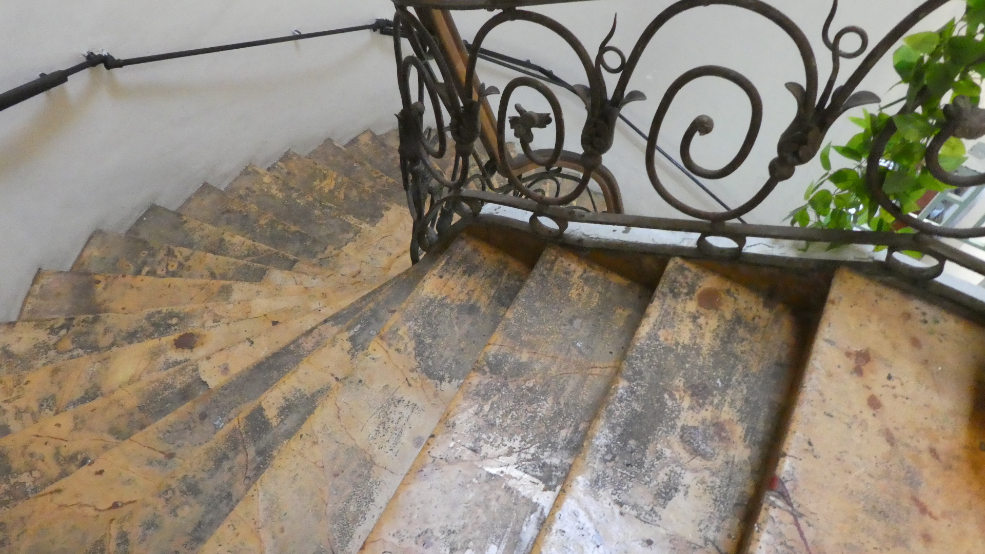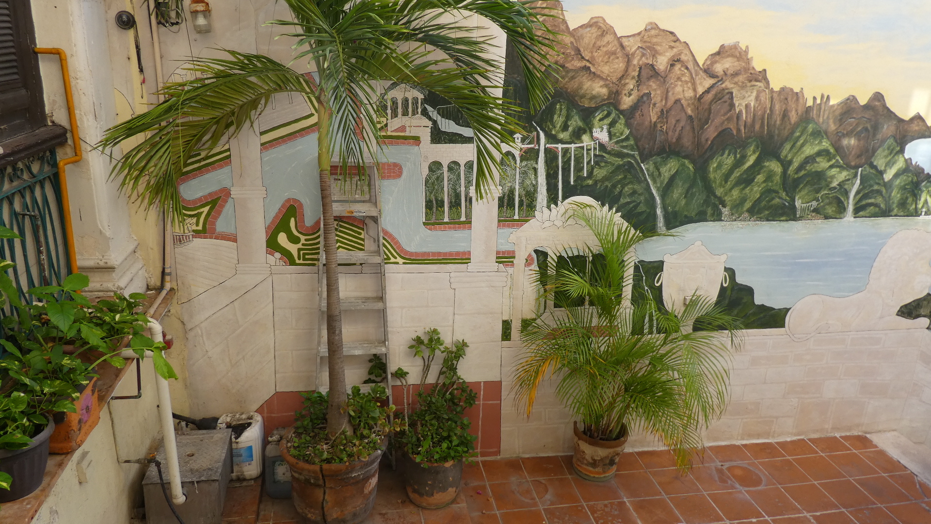 Our building has long fallen on hard times, and has been chopped up to create the tiny hotel rooms. But you can still see the high ceilings, stone steps, and the earthenware floor tiles that go so well with plants.